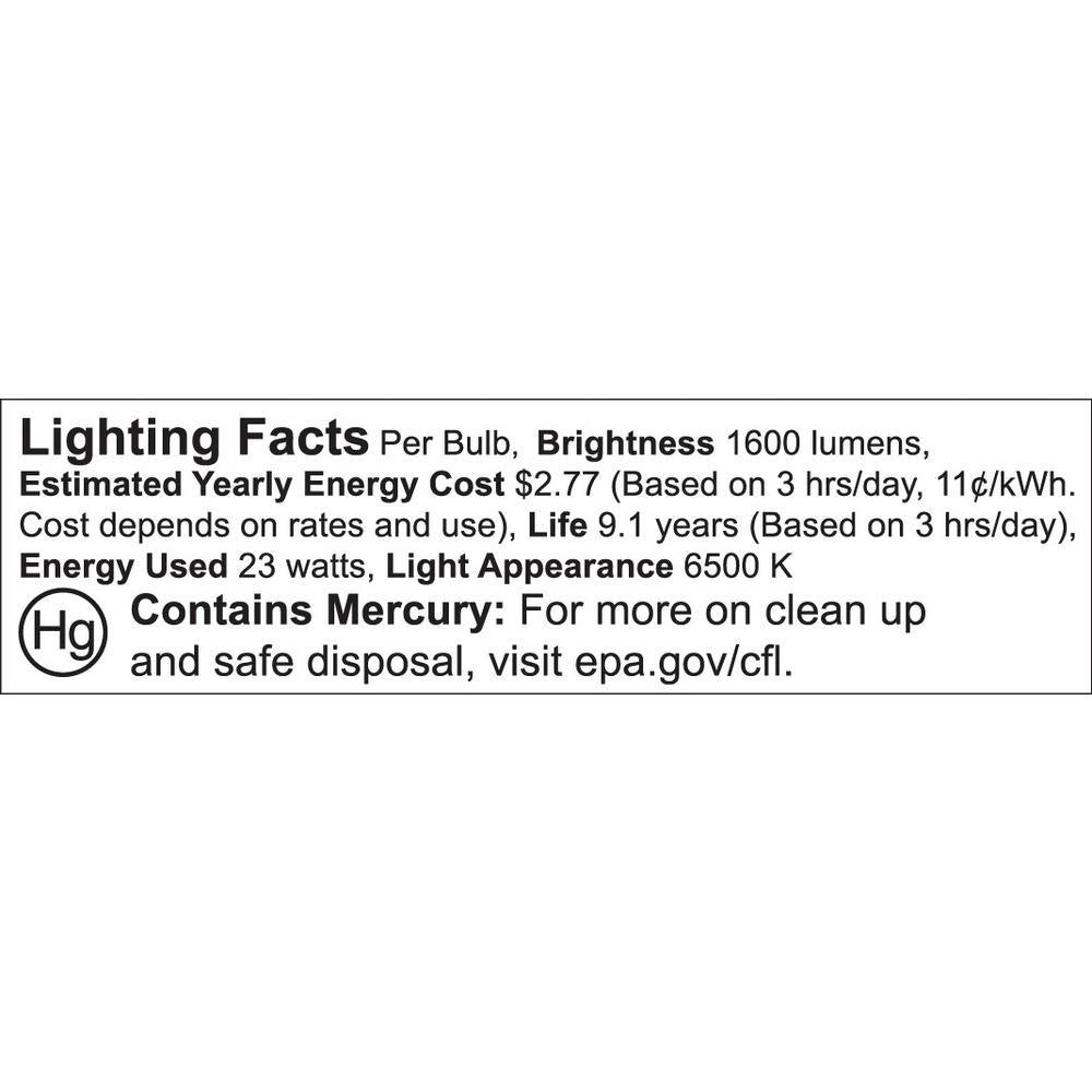 Energy used: 23-Watt (equivalent to a 100-Watt standard incandescent light bulb)