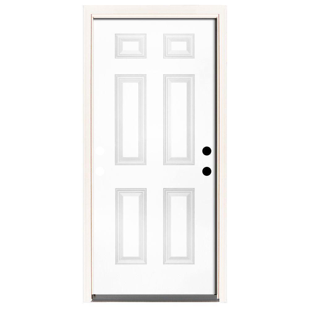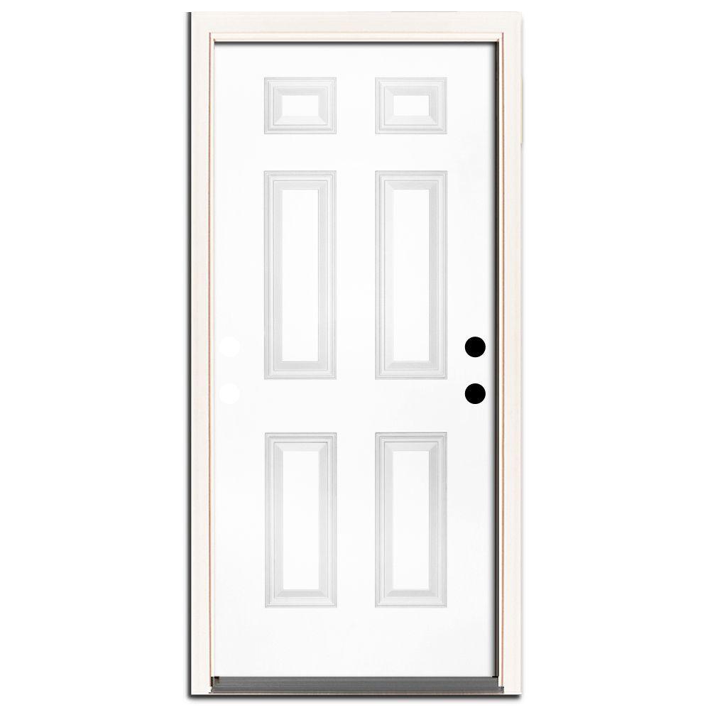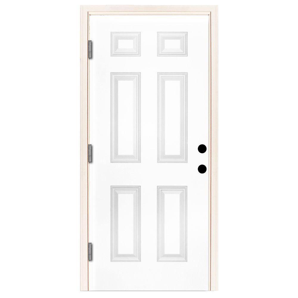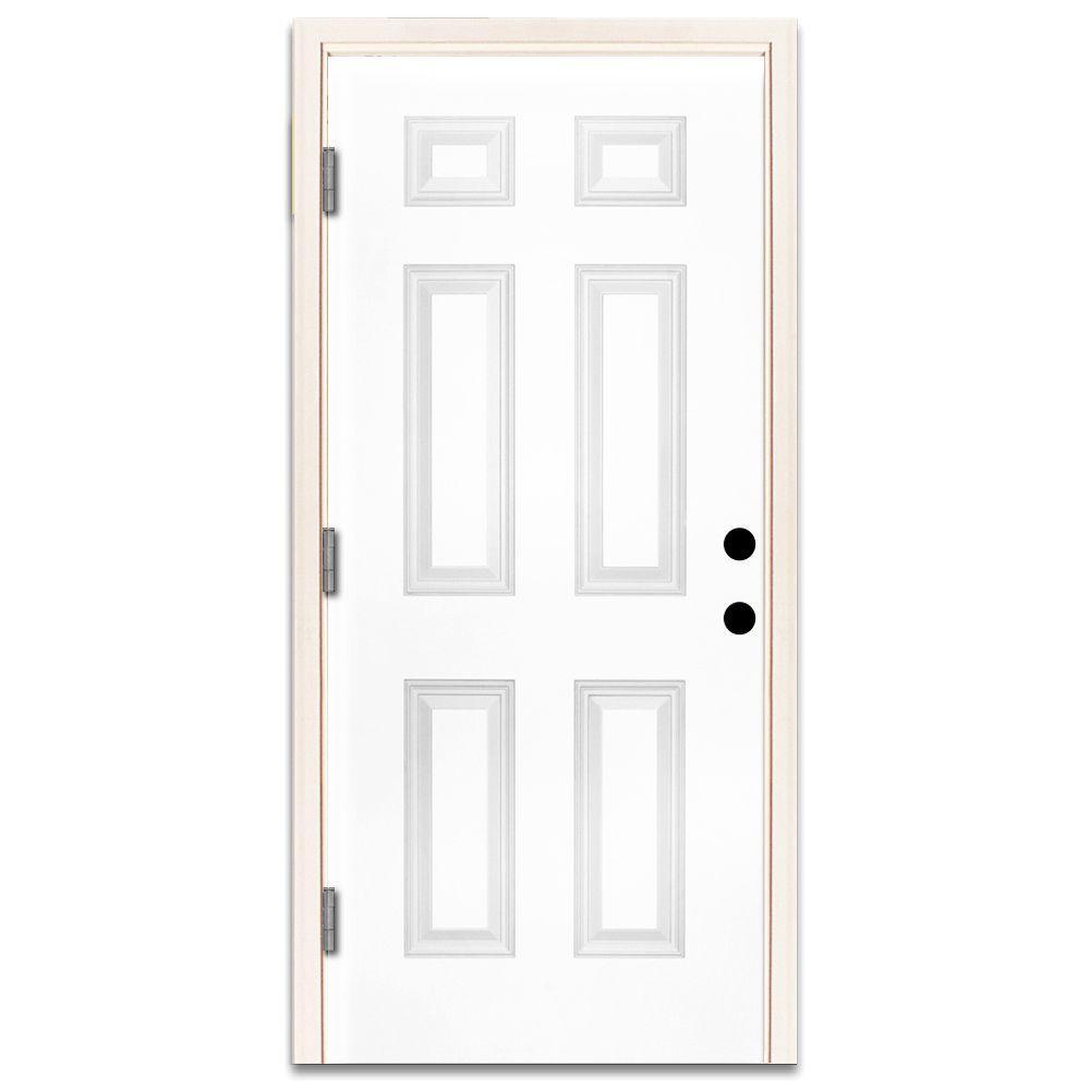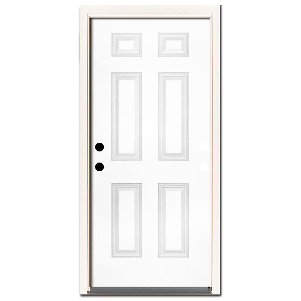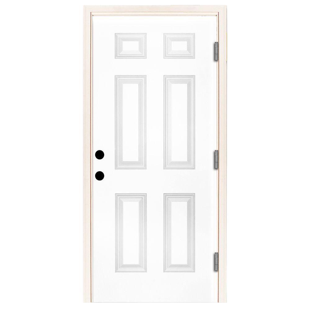 30 in. x 80 in. Premium 6-Panel Primed White Steel Prehung Front Door Left-Hand Outswing and 4 in. Wall