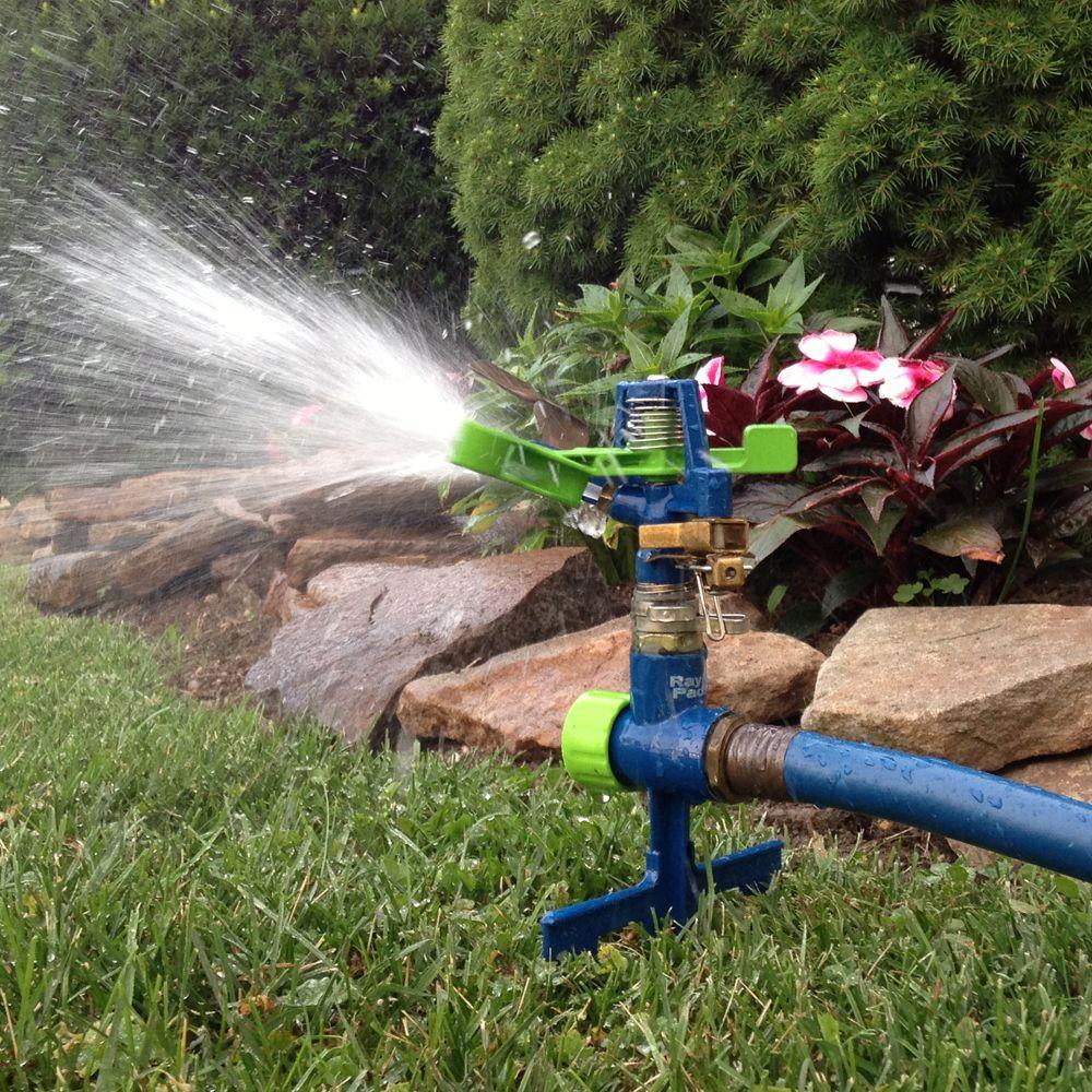 This Ray Padula Metal Pulsating Sprinkler on an in-series spike 2 pack is the go-to choice for gardeners everywhere for watering medium to large size areas. The heavy-duty metal construction provides an adjustable watering stream from 20 ft. to over 45 ft. With the adjustable pattern rings, it’s easy to match the area of coverage to your specific yard keeping water only on what’s meant to grow. Other features include an oversize heavy-duty all metal head, a distance adjustment dial, as well as a precision engineered nozzle outlet designed to place water evenly across your entire yard. Best of all the in-series deluxe metal step spike allows multiple sprinklers to be connected together and used at once. Simply remove the green end cap and attach another garden hose to lead to the other included sprinkler. With one turn of the faucet, the entire yard is watered at once, without moving the hose. The deluxe metal step spike also allows for easy positioning anywhere around the yard.