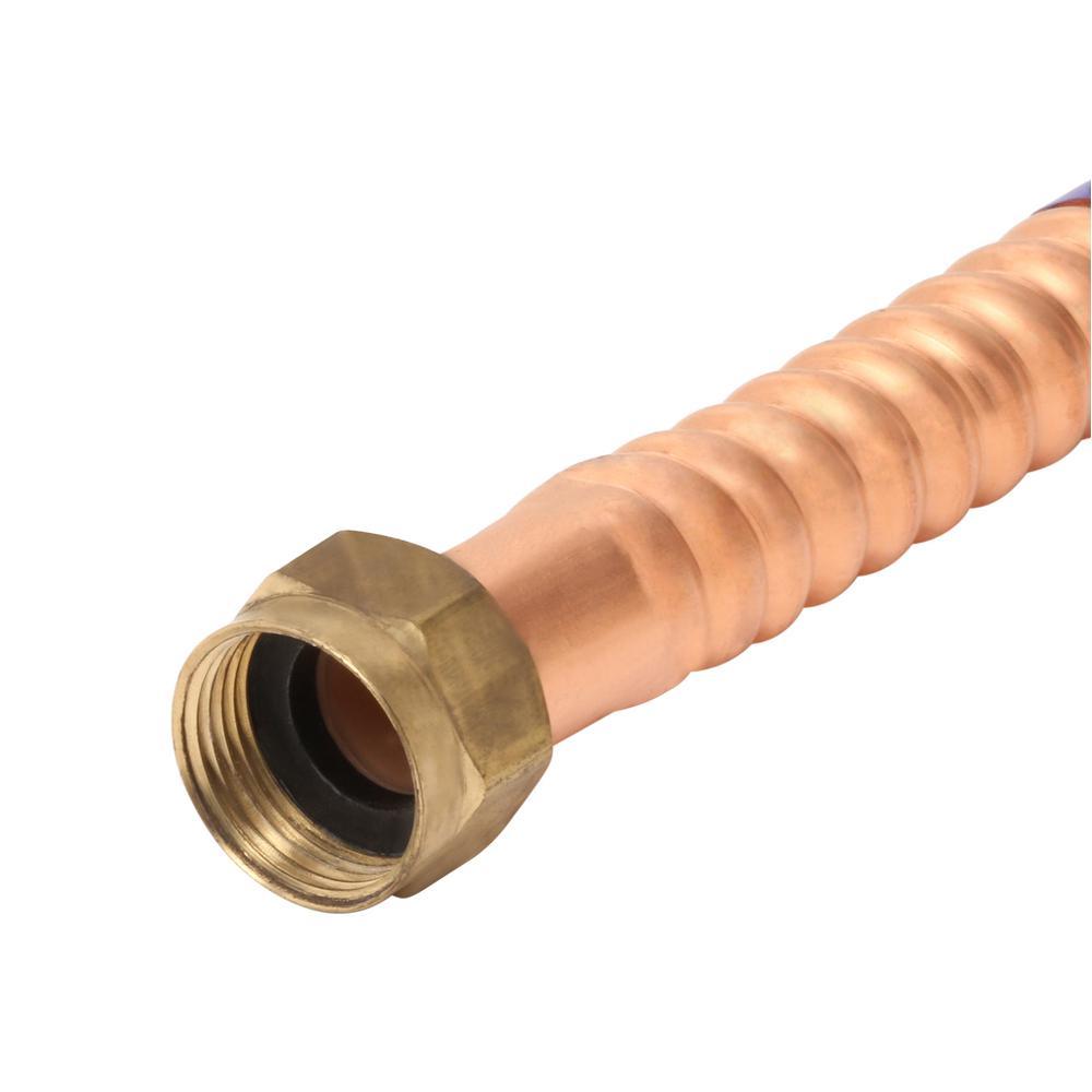 Corrosion is no match for BrassCraft’s COPPER-FLEX water heater connectors. Constructed of seamless copper tubing, COPPER-FLEX water heater connectors are the professional’s choice for water heater installations. Featuring an integrated dielectric sleeve, the sleeve isolates dissimilar metals within the waterway, where galvanic and electrolytic corrosion have their greatest potential. This separation provides complete protection against galvanic corrosion that can deteriorate the connector and cause leaks. In addition, the integrated dielectric sleeve eliminates the need to install an additional dielectric union, reducing time and installation costs.