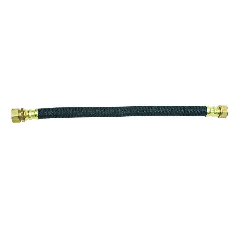 BrassCraft 3/4 in. FIP x 7/8 in. O.D. Compression x 18 in. Polymer Braided Water Heater Connector (0.57 in. I.D.), also known as Speedi Plumb PLUS connectors, combine advanced corrosion technologies with state-of-the-art manufacturing to provide the most flexible, corrosion resistant water heater connector available on the market today. Speedi Plumb PLUS patented polymer-braided jacket is specially engineered to be less abrasive and more flexible than the leading connectors. The polymer fibers bend freely without kinking, crimping or flattening, making installation easier, especially in cramped quarters. The braided jacket is also designed to resist corrosion from harsh household chemicals that can corrode and deteriorate stainless steel braiding. Polymer fibers are resistant to high temperature making them ideal for water heater connections. With a non-conductive polymer braid and EPDM rubber core, the absence of dissimilar metals within the waterway eliminates the potential for galvanic corrosion and the need for a dielectric union with the installation.