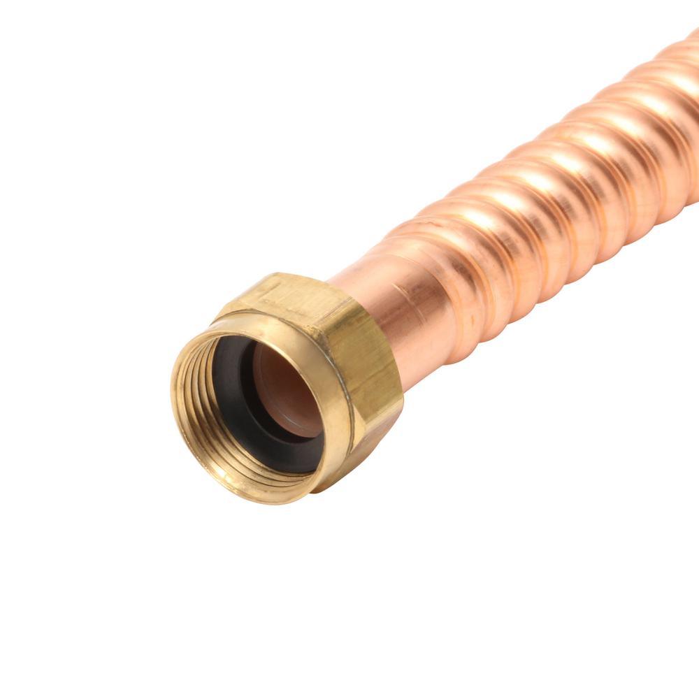Corrosion is no match for BrassCraft’s COPPER-FLEX water heater connectors. Constructed of seamless copper tubing, COPPER-FLEX water heater connectors are the professional’s choice for water heater installations. Featuring an integrated dielectric sleeve, the sleeve isolates dissimilar metals within the waterway, where galvanic and electrolytic corrosion have their greatest potential. This separation provides complete protection against galvanic corrosion that can deteriorate the connector and cause leaks. In addition, the integrated dielectric sleeve eliminates the need to install an additional dielectric union, reducing time and installation costs.