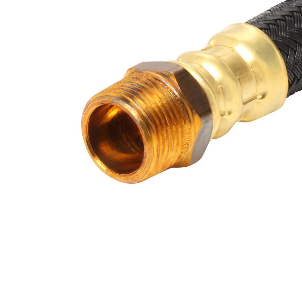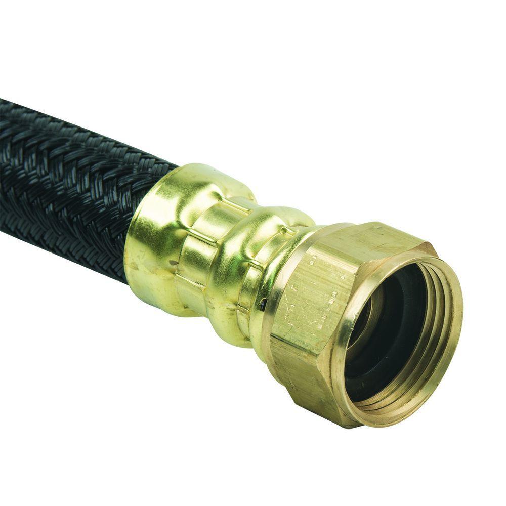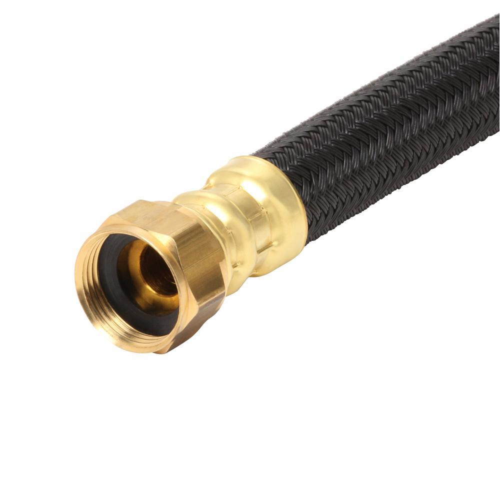 BrassCraft 3/4 in. MIP x 3/4 in. FIP x 15 in. Polymer Braided Water Heater Connector (0.57 in. I.D.), also known as Speedi Plumb PLUS connectors, combine advanced corrosion technologies with state-of-the-art manufacturing to provide the most flexible, corrosion resistant water heater connector available on the market today. Speedi Plumb PLUS patented polymer-braided jacket is specially engineered to be less abrasive and more flexible than the leading connectors. The polymer fibers bend freely without kinking, crimping or flattening, making installation easier, especially in cramped quarters. The braided jacket is also designed to resist corrosion from harsh household chemicals that can corrode and deteriorate stainless steel braiding. Polymer fibers are resistant to high temperature making them ideal for water heater connections. With a non-conductive polymer braid and EPDM rubber core, the absence of dissimilar metals within the waterway eliminates the potential for galvanic corrosion and the need for a dielectric union with the installation.