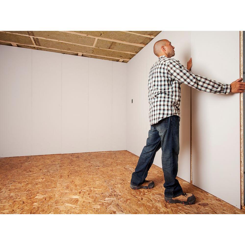 Panels are tongue and groove and simply attach at the top to your floor joists and at the bottom to your subfloor using 2 in. x 2 in. lumber as your tracks