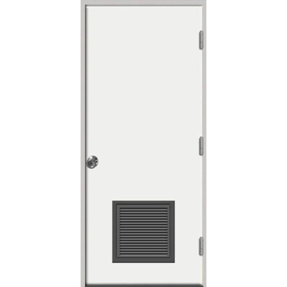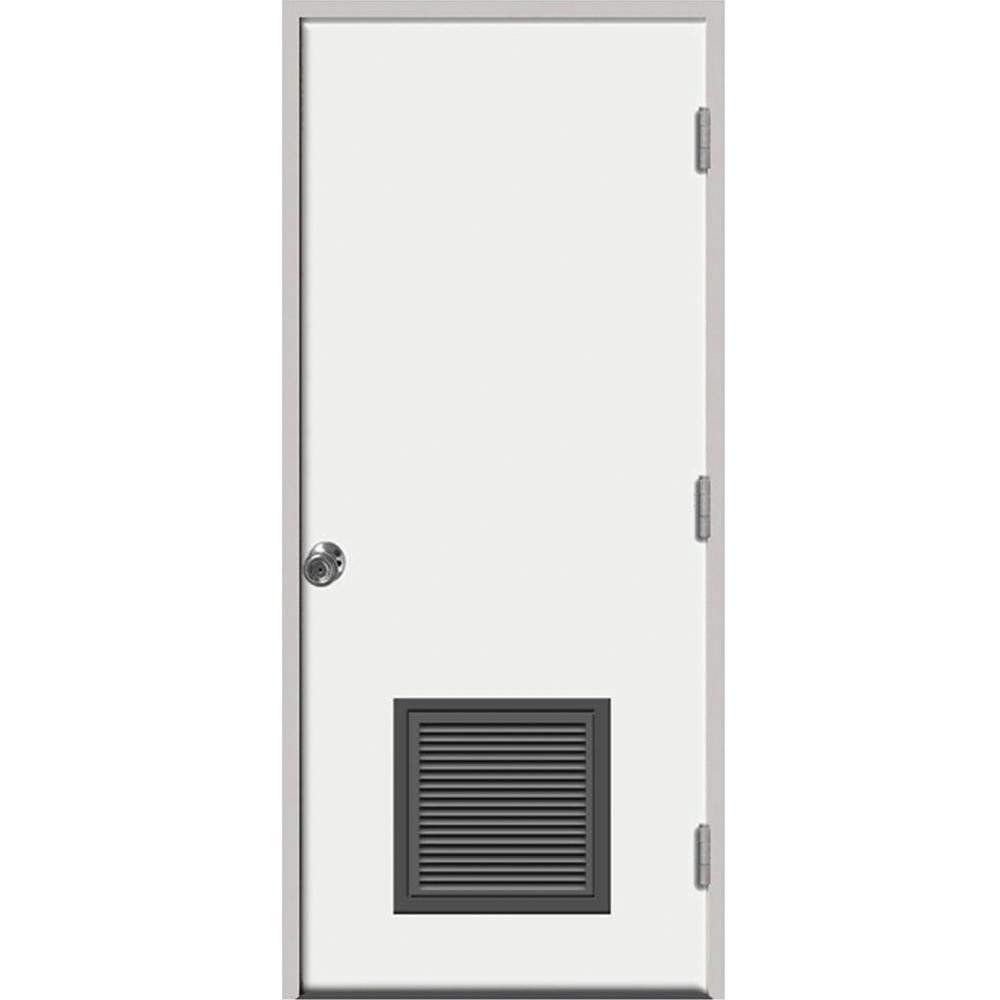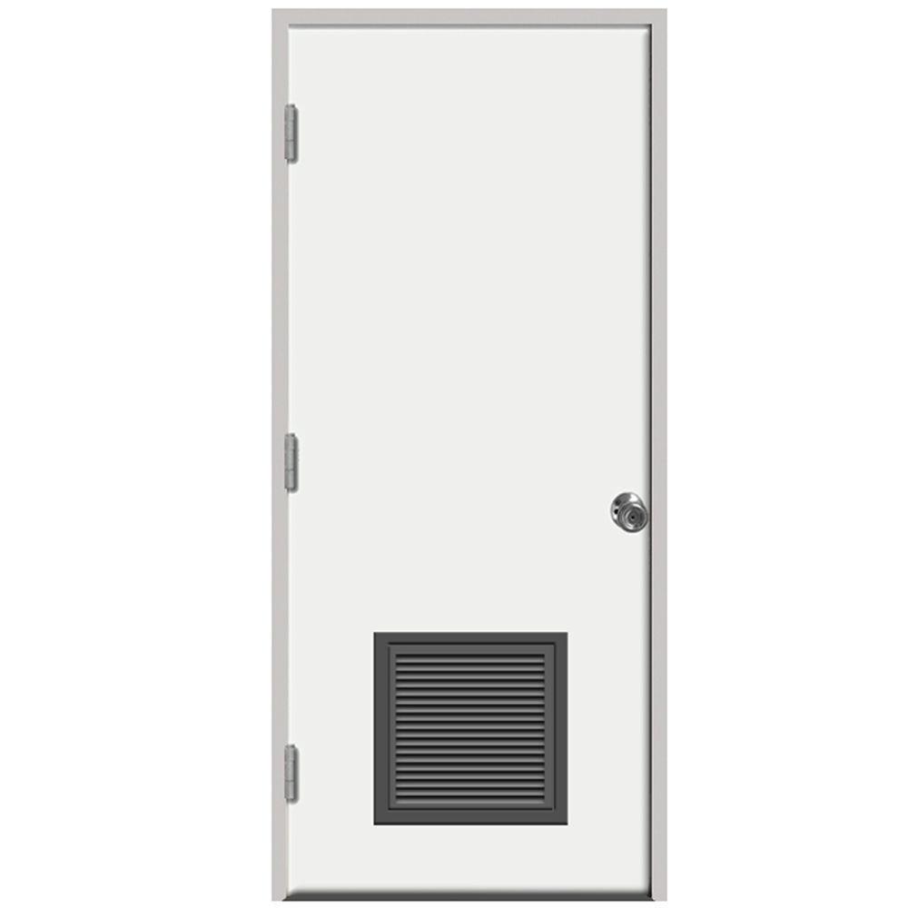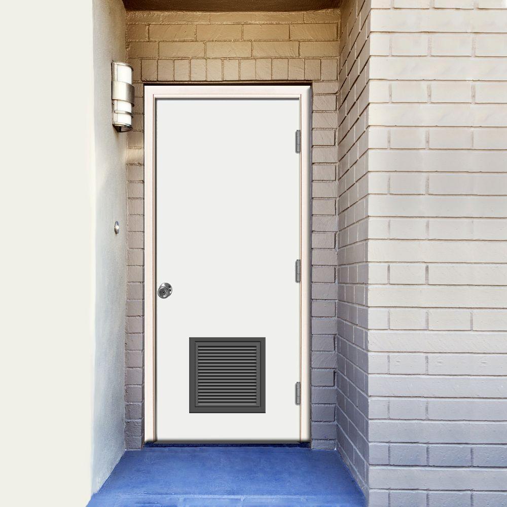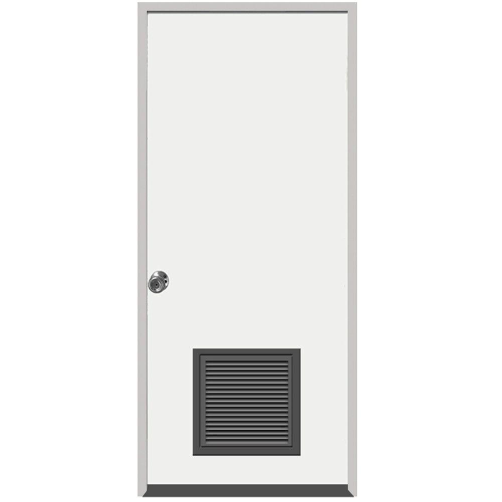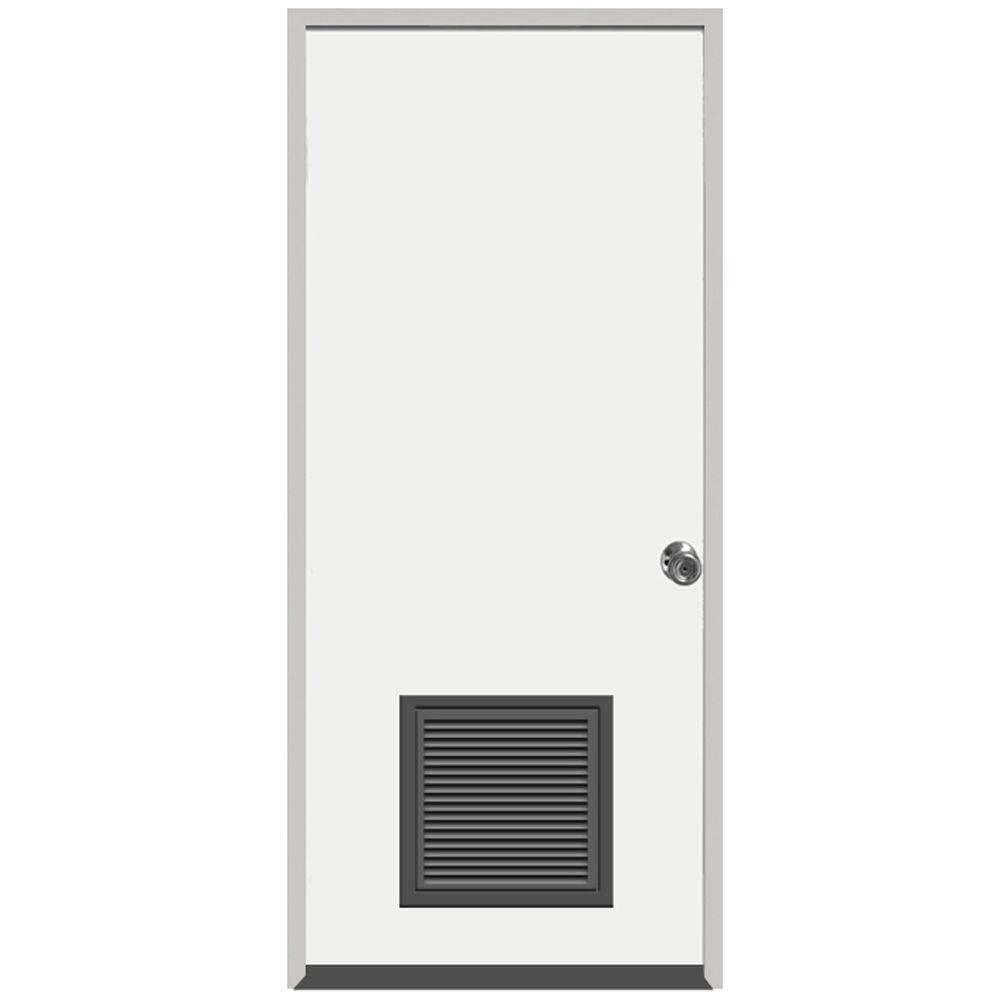 Vent your utility closet with this Steves & Sons Premium vented flush door. Door unit is pre-assembled in a fully weather-stripped jamb for easy installation. The Door and Jamb are primed and ready to finish in a color of your choice.