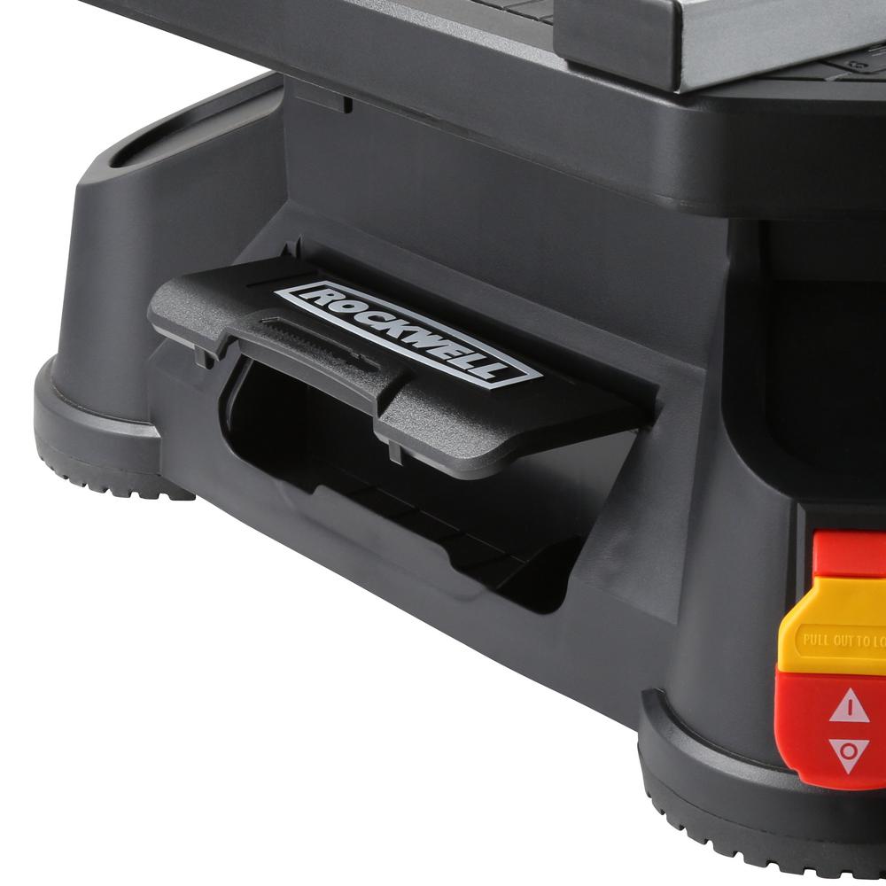 [SETS UP IN SECONDS] Take this table saw to the job site or move it around the workshop. There’s even a built-in carry handle