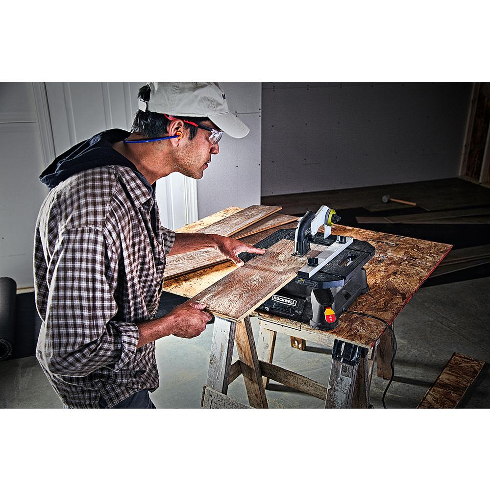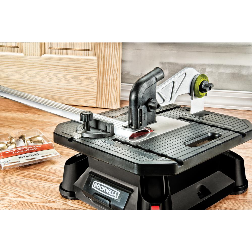 The Rockwell BladeRunner X2 Portable Tabletop Saw is the solution to the problem of having to take materials back to the workshop to cut them, and then bring them back to the job site later on. If you’re a contractor, you know that that process can add an entire day to a project. The BladeRunner is only 15 lbs, so while stable and sturdy, it’s easy to toss in the back of the truck. And with a footprint of only 15.75” x 17”, it doesn’t take up an entire workbench like traditional table saws. The hold-down guard and splitter allow for work with wider materials, and a larger rip fence than other portable table saws provides better control and accurate cuts. A no-load speed of 3000/min, a stroke length of ¾”, with 5.5 amps of power gives it the capacity for light to moderate cutting of wood (up to 1-1/2”), ceramic tile (3/8”), PVC pipe (1-1/4”), aluminum (3/8”), and steel (1/8”). (Anything over 1-1/2” and you’re probably going to need a traditional, permanently fixed tabletop saw—but you can’t take that to the job site.) The blades change out almost instantly, in under 3 seconds once you get the hang of the tool-less blade change system. And the saw is protected by a Rockwell 3-year limited warranty, so you know they stand behind their tools.