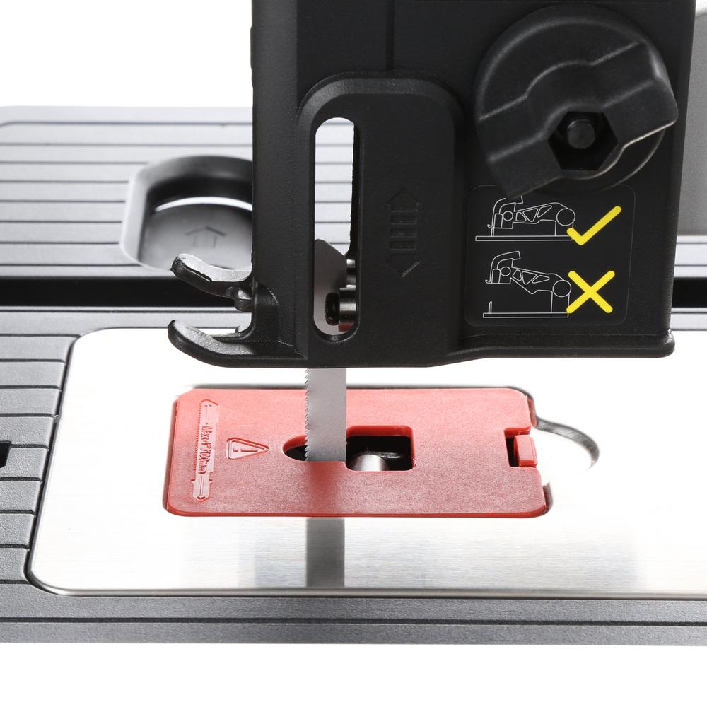[CUTS LIKE A FULL-SIZE] With the standard guard and riving knife system you can perform rip, cross, scroll, and miter cuts