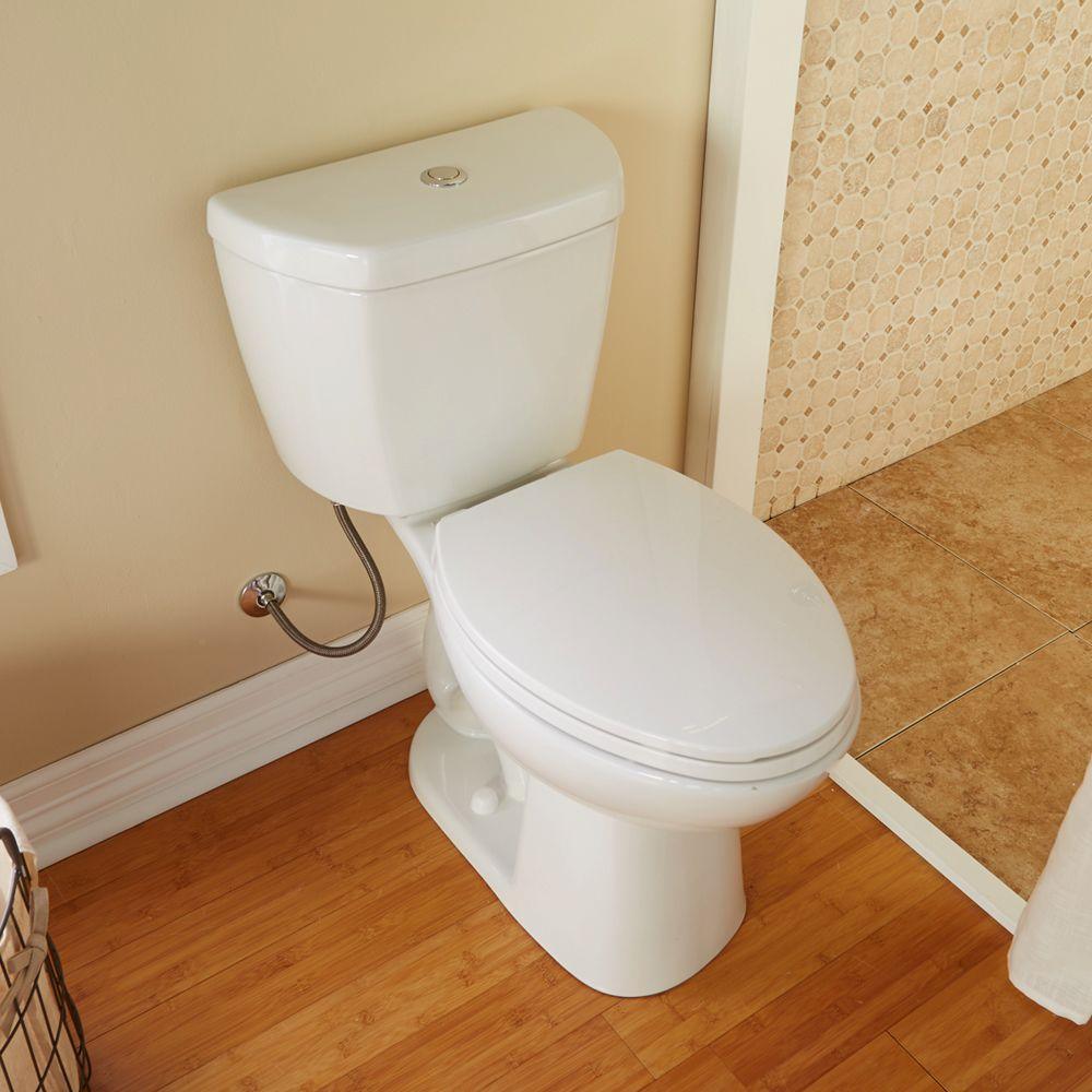 All-in-one packaging includes everything you need: plastic elongated toilet seat, wax ring, floor bolts and caps