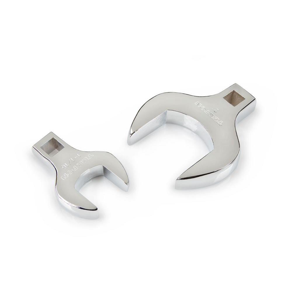 Extend your reach with the TEKTON 1/2 in. Drive Jumbo Crowfoot Wrench Set (14-Piece). These handy problem solvers give you more options when you are trying to get at fasteners in tight, awkward spaces. With every common size from 1-1/16 to 2 in., they are ready for use with your 1/2 in. drive ratchet, extension, or torque wrench. A snap-in storage case keeps them all together and neatly organized. Made from high quality forged and hardened alloy steel, wrenches feature a tough chrome-plated finish that resists rust and corrosion.