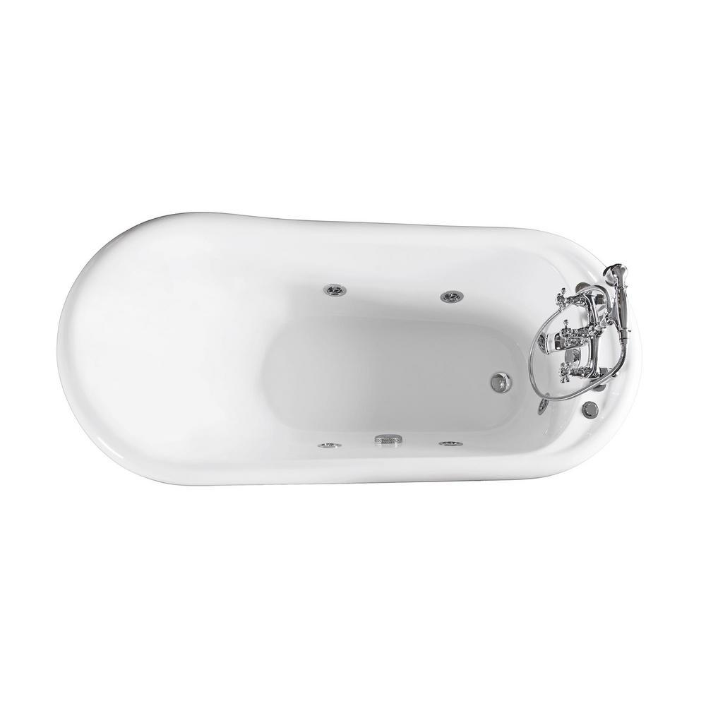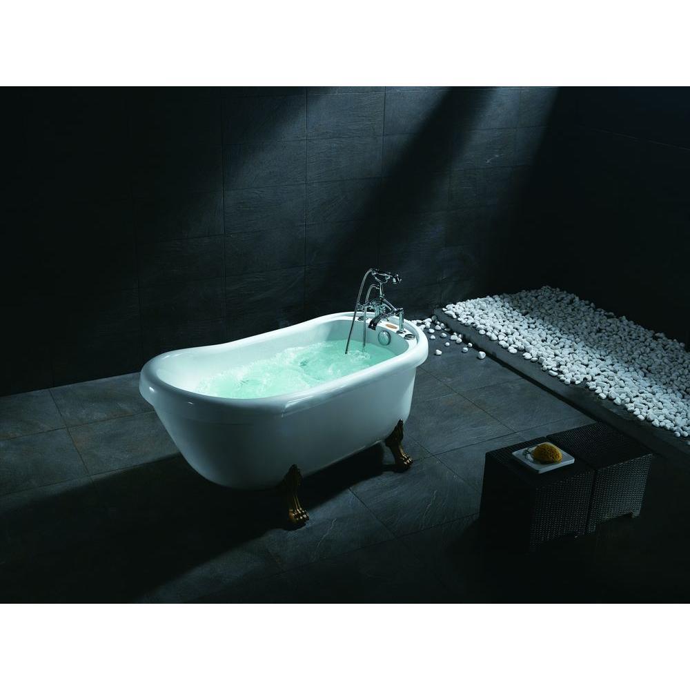 Transform your bathroom into a beautiful and elegant get-away with the Ariel BT-062 Whirlpool Bathtub. This freestanding bathtub is a combination of both vintage and modern sensibilities. The deck mounted chrome faucet and the bear claw legs are the details that make this Whirlpool bathtub stand out in a bathroom design. The handheld shower head and 1.2 HP Whirlpool motor are included. Enjoy a bath in elegance and style. This bathtub could be the focal point of your bathroom remodel.