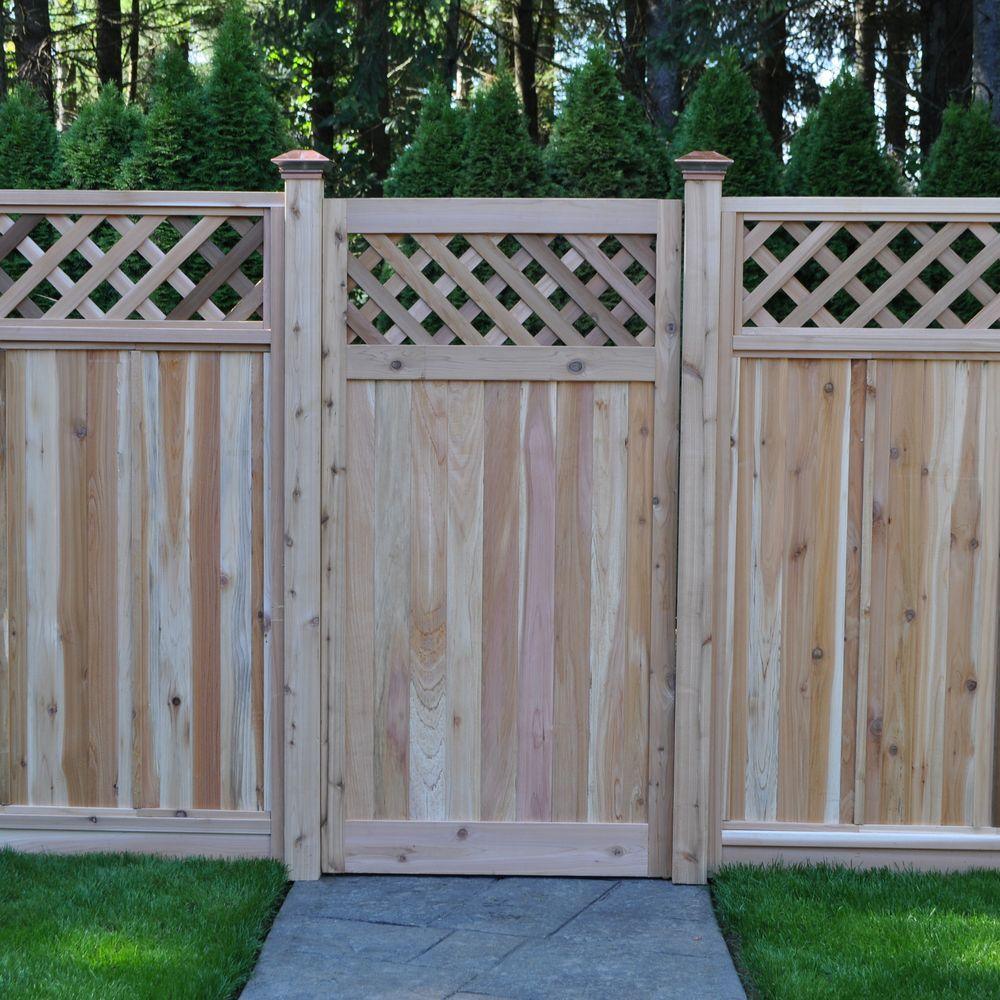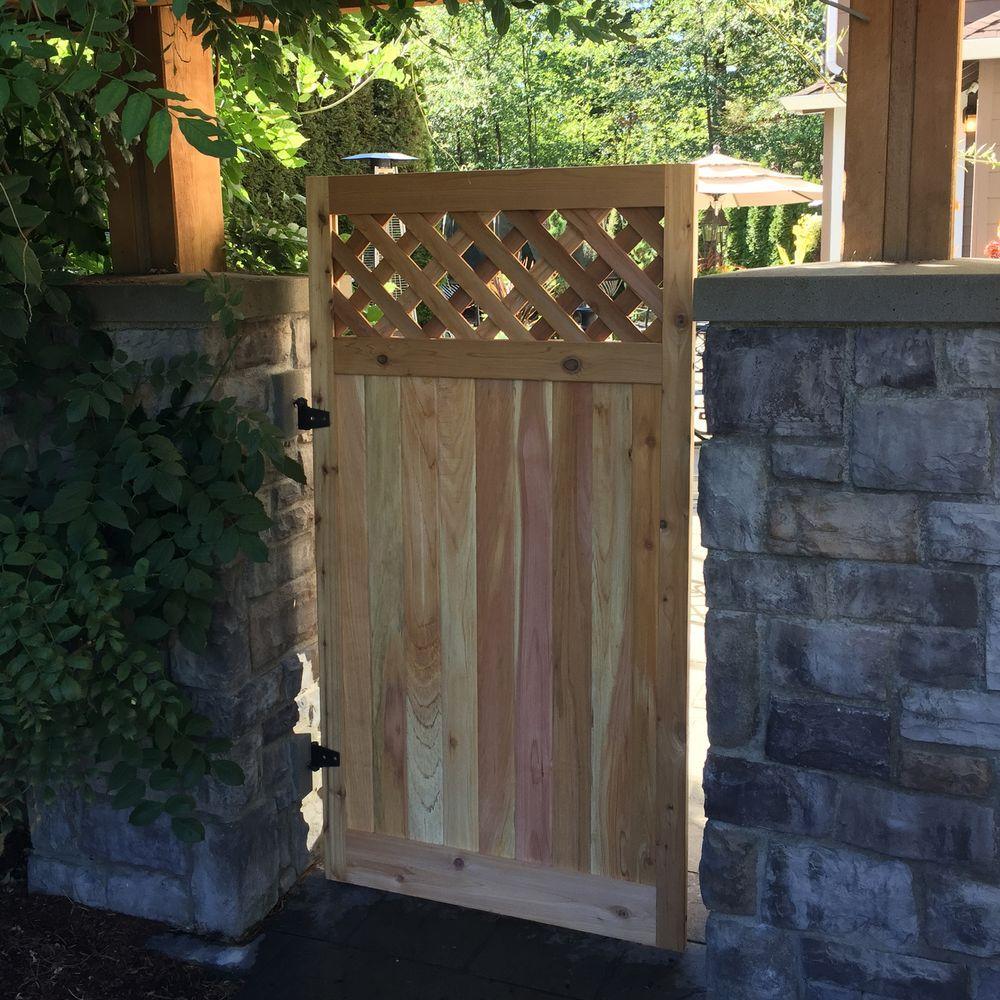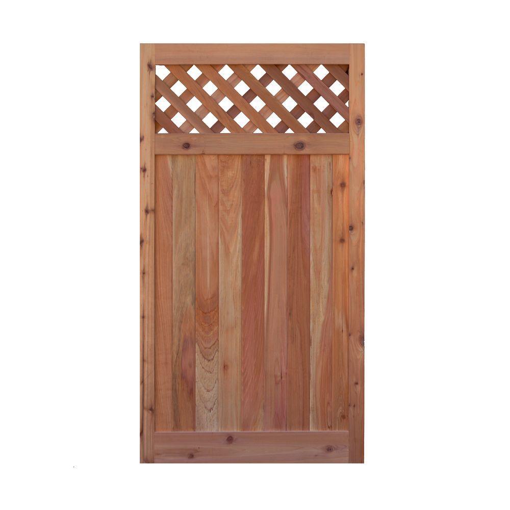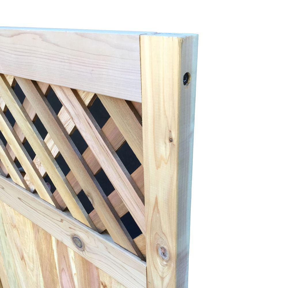 Experience the aroma and long lasting beauty of a Western red cedar fence gate. Cedar gives a feeling of warmth and compliments the natural surroundings, while adding charm to your outdoor living space. Well known for its natural oils, western red cedar resists decay and withstands harsh environments. Constructed with the highest quality, hand selected Western red cedar featuring a flat top diagonal lattice design. Its structure is stable, durable, and ready to withstand the elements for years of quality performance. This gate is manufactured using corrosion-resistant fasteners and features tongue-and-groove milled fence boards to help provide privacy. Easy to install and used for many applications residential or commercial. Hinges can be installed on the right or left side. Cedar fence gates are the perfect addition to your fence or arbor project.