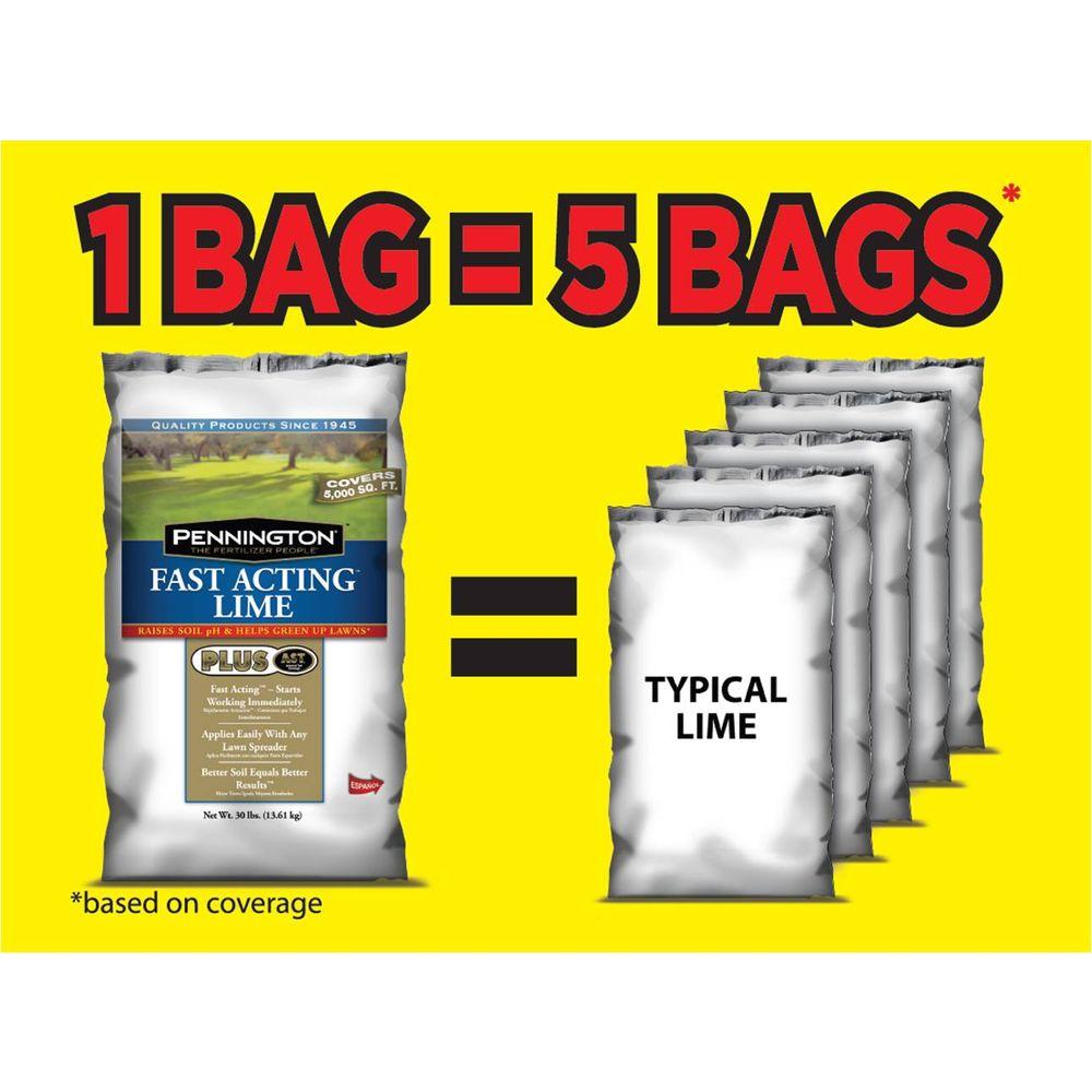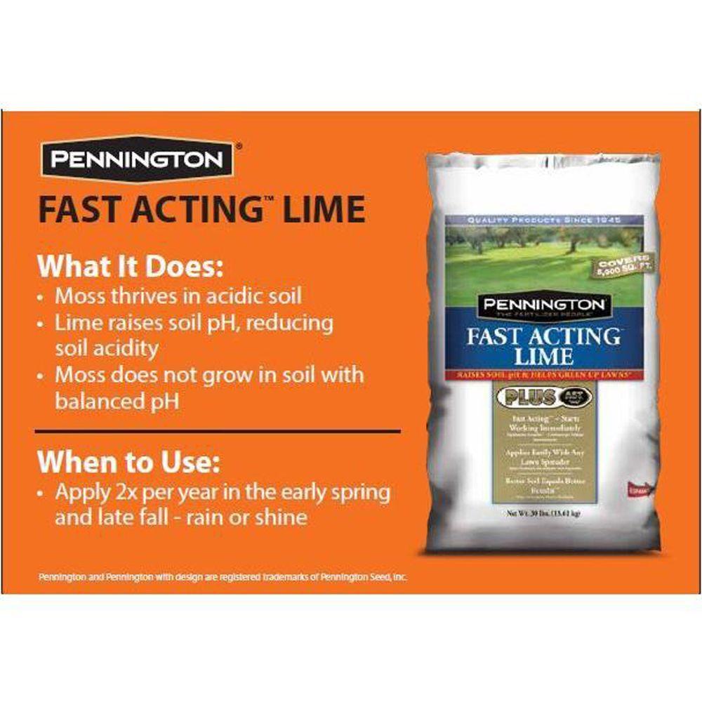 Pennington Fast Acting Lime Plus AST goes to work right away to raise your soil pH. Low pH can cause moss and bare spots in your lawn and can encourage weeds to grow. Limestone helps balance soil pH to create a better soil environment for your lawn, which significantly reduces these problems. Pennington 30 lb. Fast Acting Lime Plus AST is more concentrated than regular dolomitic limestone, so you have to use only 30 lbs. to cover 5000 sq. ft. This unique formula combines Advanced Soil Technology (AST) with high-quality lime to maximize the benefit to the soil.