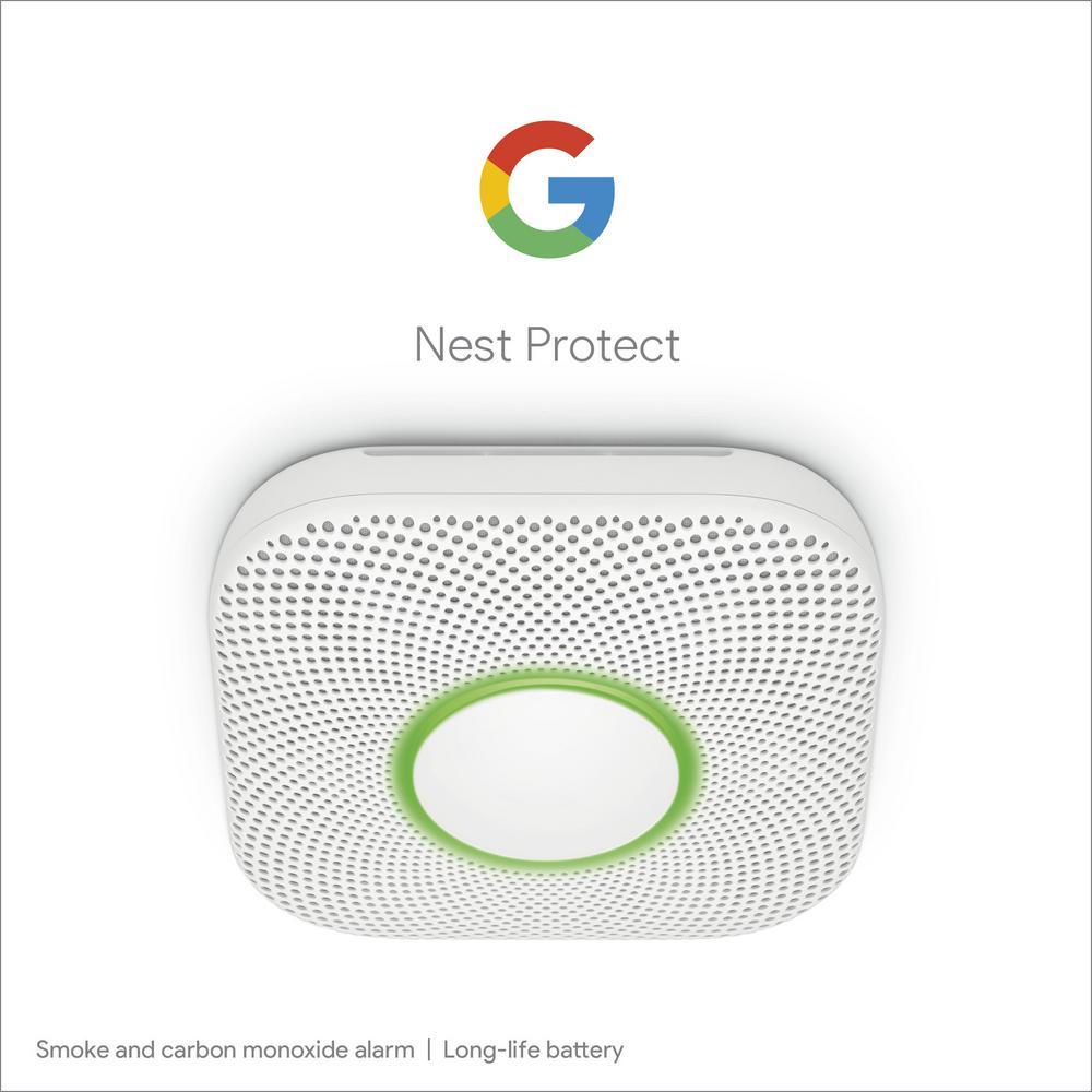 The battery powered Google Nest Protect Smoke and Carbon Monoxide Alarm reliably detects and alerts you to the presence of smoke or carbon monoxide in your home. The alarm speaks to you in a calm, clear, human voice, telling you the location of the danger. It has an industrial-grade smoke sensor that detects both fast and slow burning fires, can be hushed from your phone, tests itself automatically and lasts for up to 10-year. It also provides smartphone alerts and battery status updates to help protect your home.