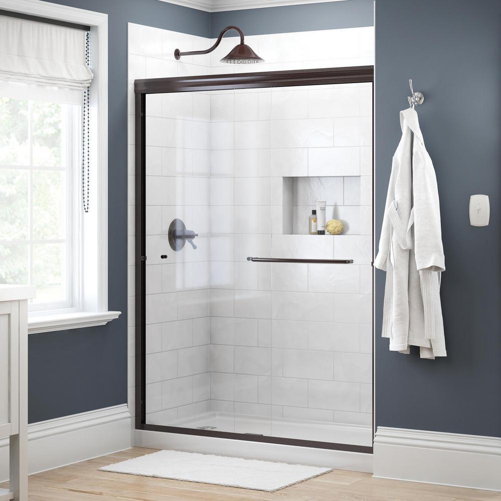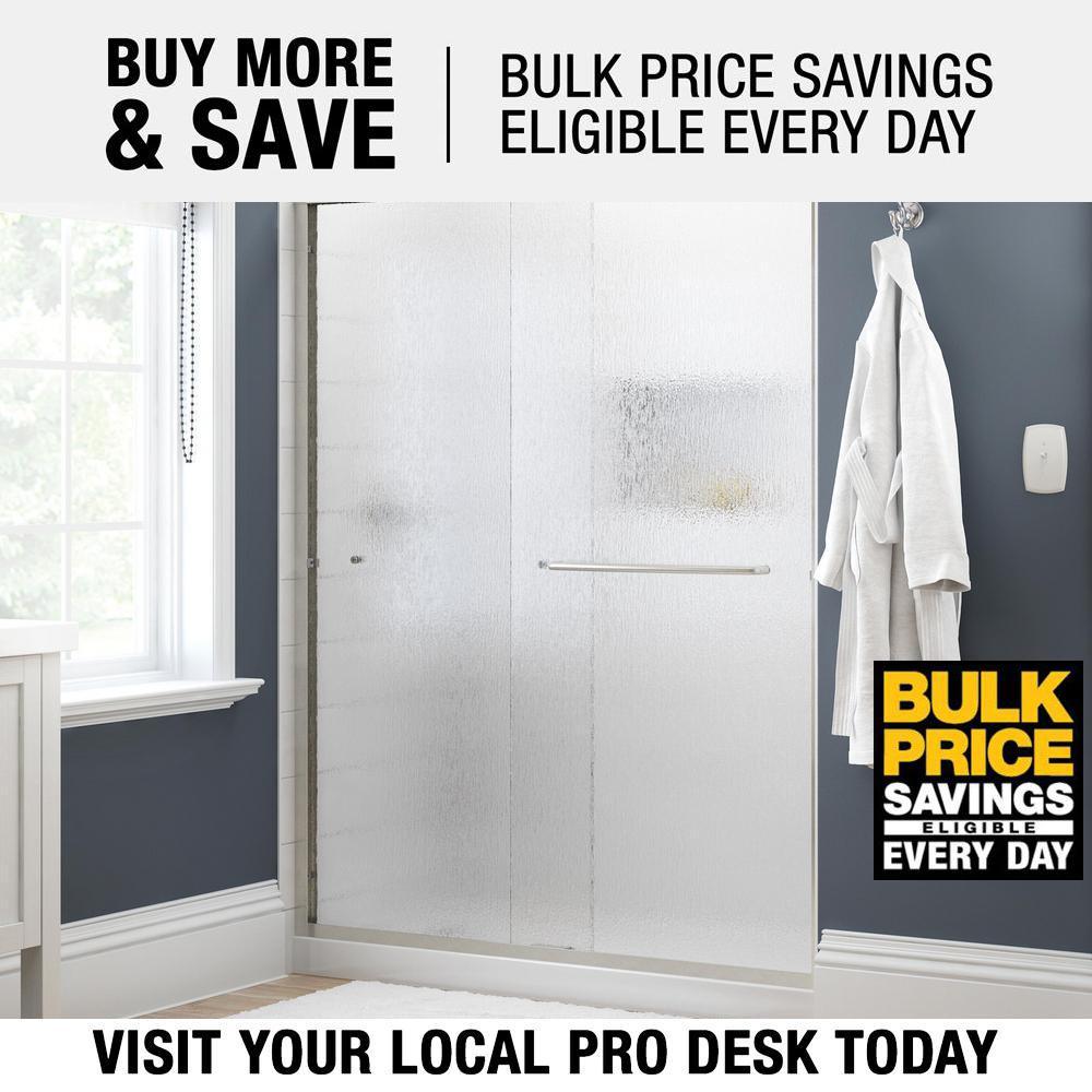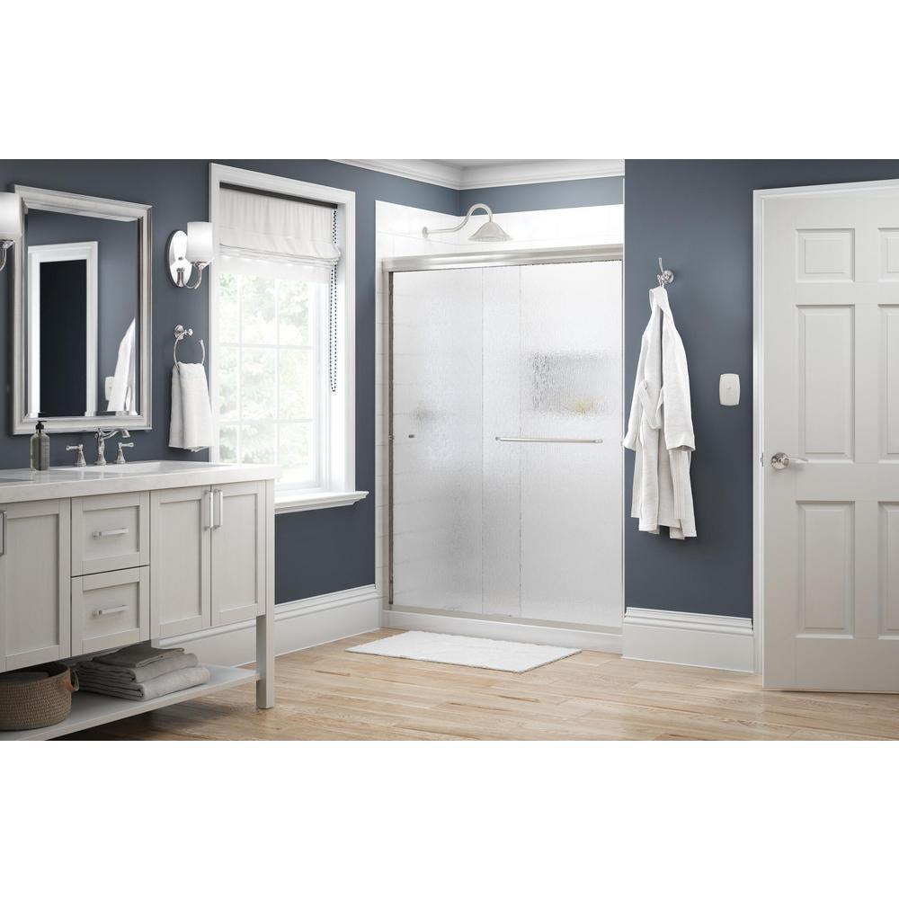 Whether you’re looking for a moderate DIY project or working on a bathroom remodel, upgrading your bathroom with a new sliding shower door is easy with the Delta 1-2-3 custom sliding shower door program. Delta’s custom glass shower door program offers 1000s of design combinations by choosing your glass shower panels, shower door track, and shower door handles to build a unique, personalized glass shower door. Simple and classic, the Traditional shower door track in nickel features a reversible top track with two unique profiles that offer uncompromised quality and value with a design that’s familiar and balanced. Make a statement with standard 1/4 in. ANSI certified tempered glass shower panels, featuring a textured surface that resembles water running down the panels for a spa-like feel and the most privacy. The Simplicity sliding shower door handle with knobs features a convenient towel bar for extra bathroom storage and two interior knobs for extra showering space in a simple design silhouette that beautifully combines form and function.