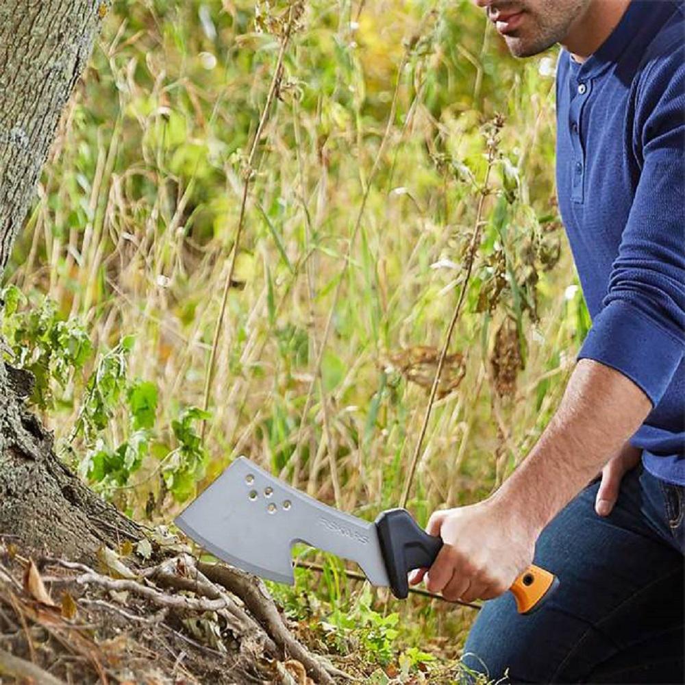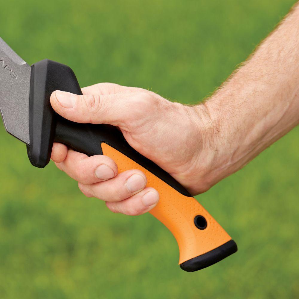 Designed for fast, powerful performance, Fiskars Hatchet offers a better way to tame the fast-growing vegetation in your yard and garden, especially when chopping through thick materials. The ultra-sharp, rust-resistant blade is thoughtfully shaped for a wide range of tasks, helping to speed your clearing while leaving one hand free to pile cuttings. The comfortable performance handle design features an intelligent texture pattern and lets you choke up for precision work, grip the middle for general use or grip the end to swing with maximum force. The design also includes a sharpened blade curve for quick pull-cuts.
