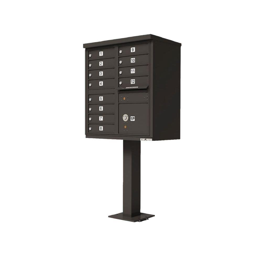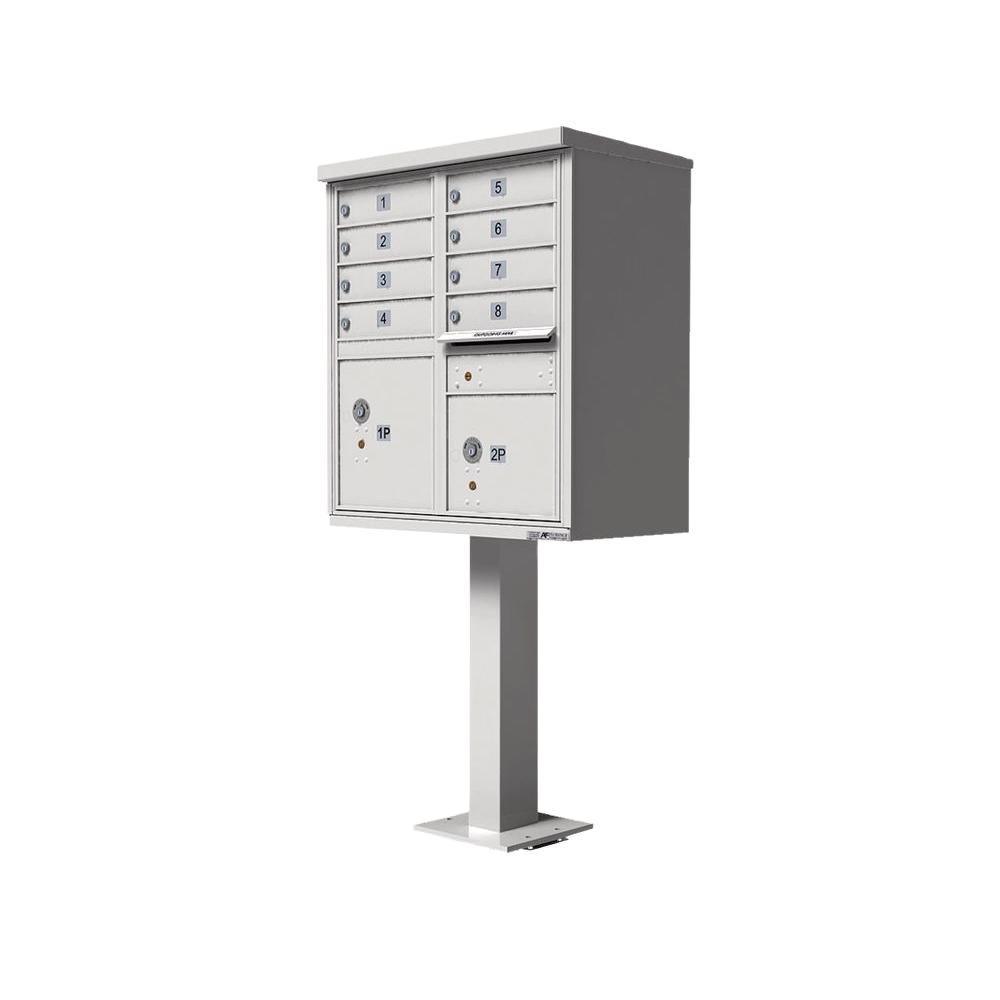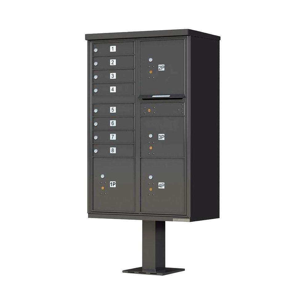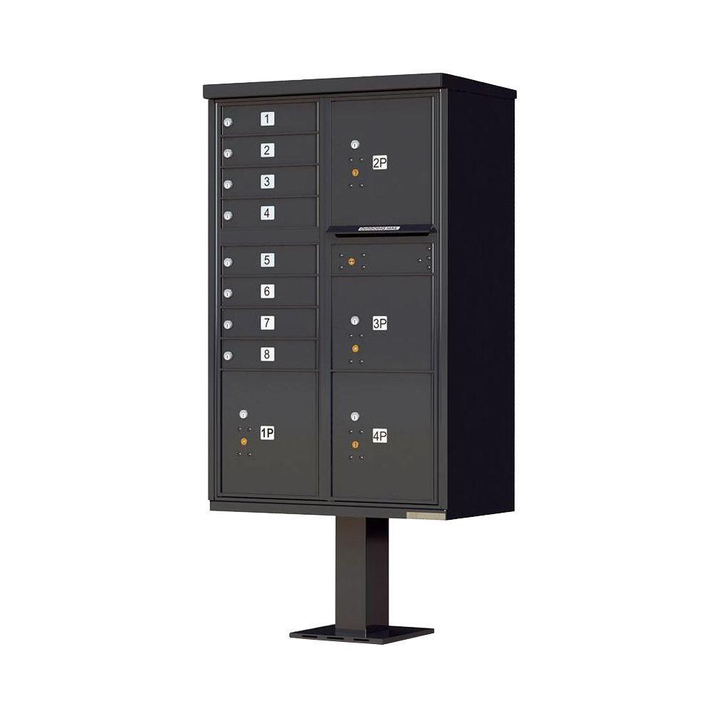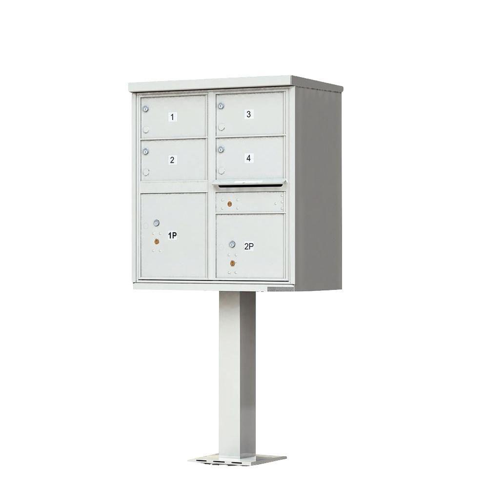 Featuring a heavy gauge, welded construction and a heavy-duty pedestal, the Florence 1570 Type III 16-Compartment Cluster Box Unit easily resists the elements to ensure parcels and mail remain safe. With the combined strength of aluminum and steel, this unit provides 16 compartments, 2 shared parcel lockers and an outgoing mail receptacle for convenience. Each master door is reinforced with 4 hook latches for added protection against theft or vandalism.