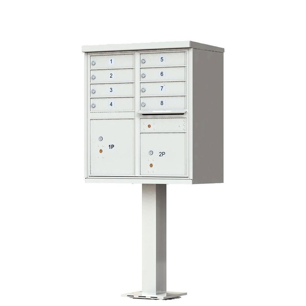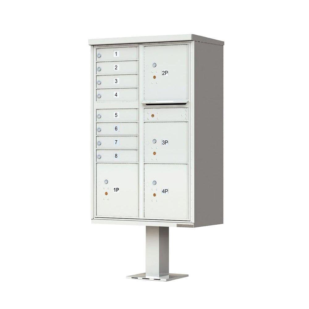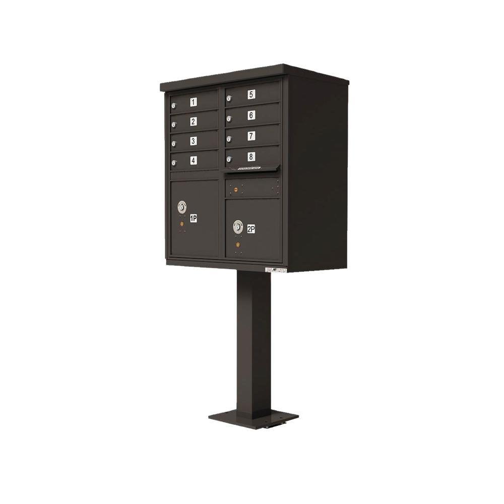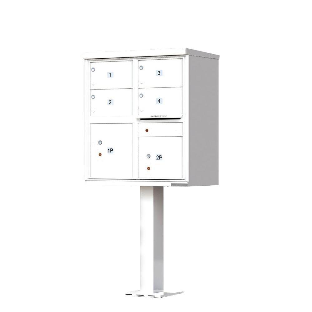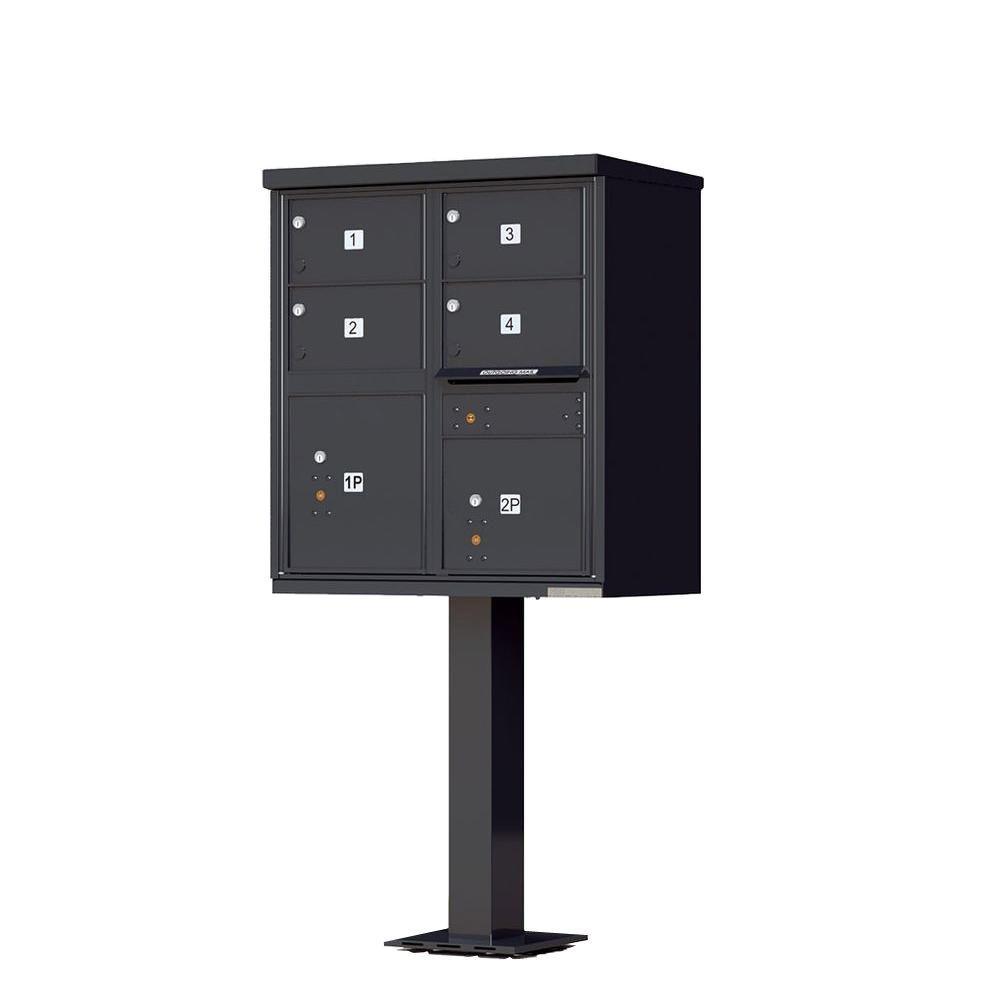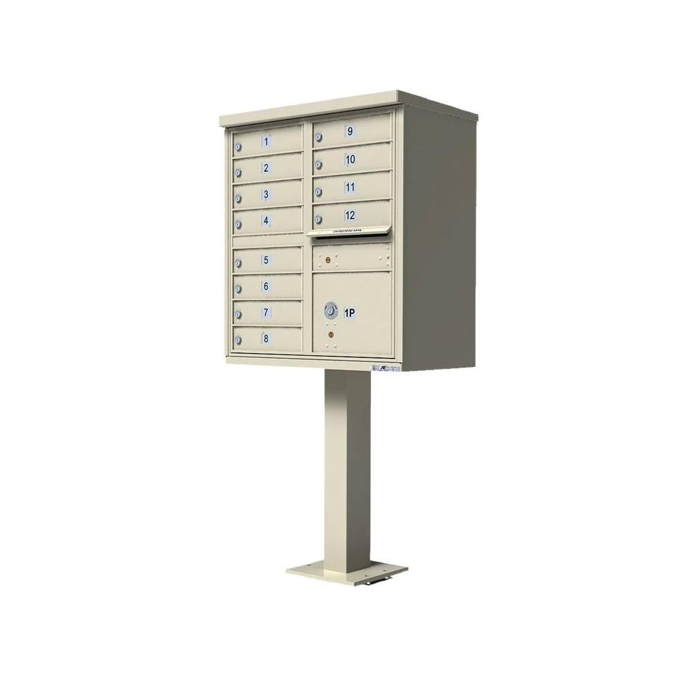 Featuring a heavy gauge, welded construction and a heavy-duty pedestal, the Florence 1570 Type III 16-Compartment Cluster Box Unit easily resists the elements to ensure parcels and mail remain safe. With the combined strength of aluminum and steel, this unit provides 16 compartments, 2 shared parcel lockers and an outgoing mail receptacle for convenience. Each master door is reinforced with 4 hook latches for added protection against theft or vandalism.