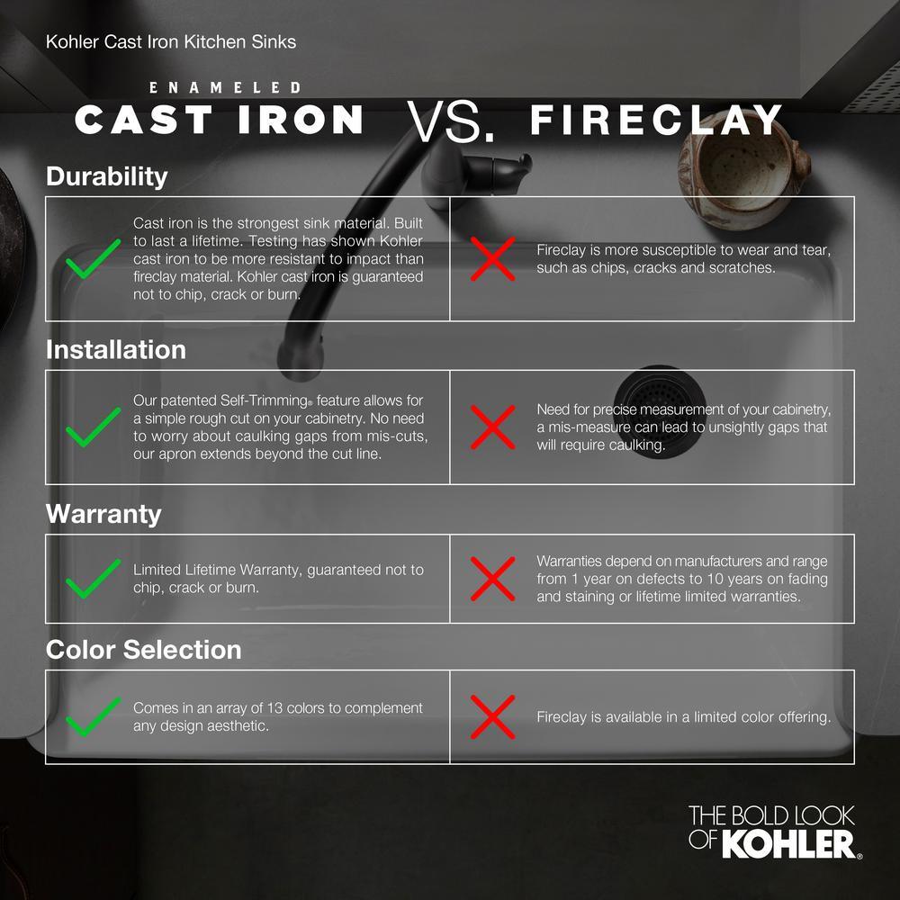 The Glen Falls utility sink offers traditional styling with a deep basin that can accommodate heavy-duty tasks in the garage, utility room, or laundry area. Crafted from enameled cast iron, this sink resists scratching, burning, and staining for years of beauty and reliable performance. Available in an array of colors to match any bathroom decor. This dual-mount sink offers you the choice of top-mount or under-mount installation.