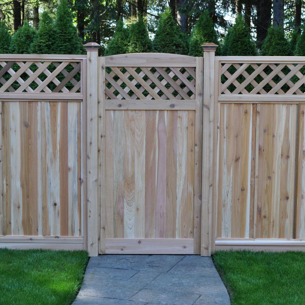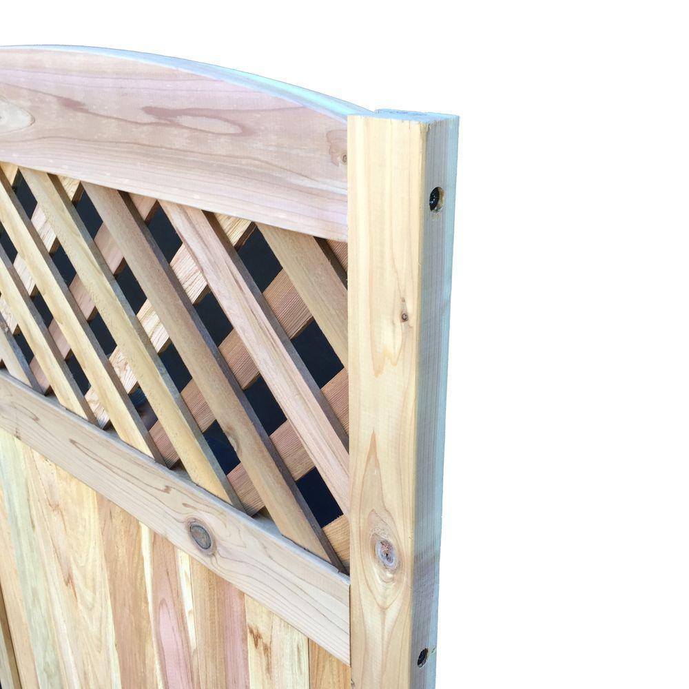 Experience the aroma and long lasting beauty of a Western red cedar fence gate. Cedar gives a feeling of warmth and compliments the natural surroundings, while adding charm to your outdoor living space. Well known for its natural oils, western red cedar resists decay and withstands harsh environments. Constructed with the highest quality, hand selected Western red cedar featuring an arch top diagonal lattice design. Its structure is stable, durable and ready to withstand the elements for years of quality performance. This gate is manufactured using corrosion-resistant fasteners and features tongue-and-groove milled fence boards to help provide privacy. Easy to install and used for many applications residential or commercial. Hinges can be installed on the right or left side. Cedar fence gates are the perfect addition to your fence or arbor project.