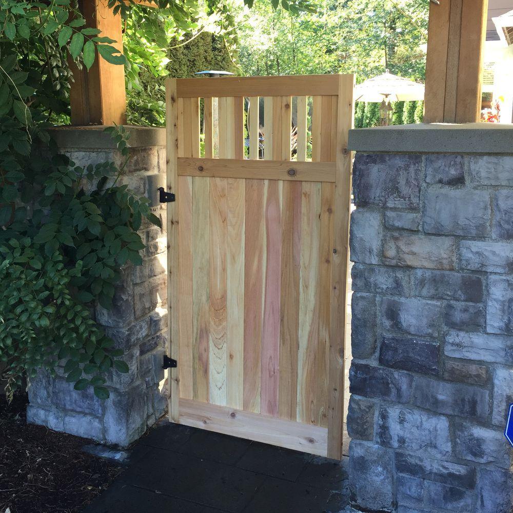 Experience the aroma and long lasting beauty of a Western red cedar fence gate. Cedar gives a feeling of warmth and compliments the natural surroundings, while adding charm to your outdoor living space. Well known for its natural oils, western red cedar resists decay and withstands harsh environments. Constructed with the highest quality, hand selected Western red cedar featuring a flat top vertical lattice design. Its structure is stable, durable and ready to withstand the elements for years of quality performance. This gate is manufactured using corrosion-resistant fasteners and features tongue-and-groove milled fence boards to help provide privacy. Easy to install and used for many applications residential or commercial. Hinges can be installed on the right or left side. Cedar fence gates are the perfect addition to your fence or arbor project.