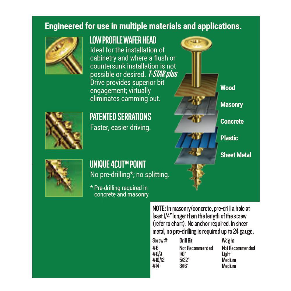 Wafer Head Construction screws provide excellent draw down and holding performance in multiple materials where a flush or countersunk installation is not possible or desired.