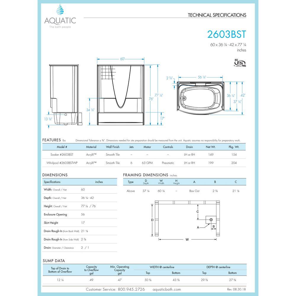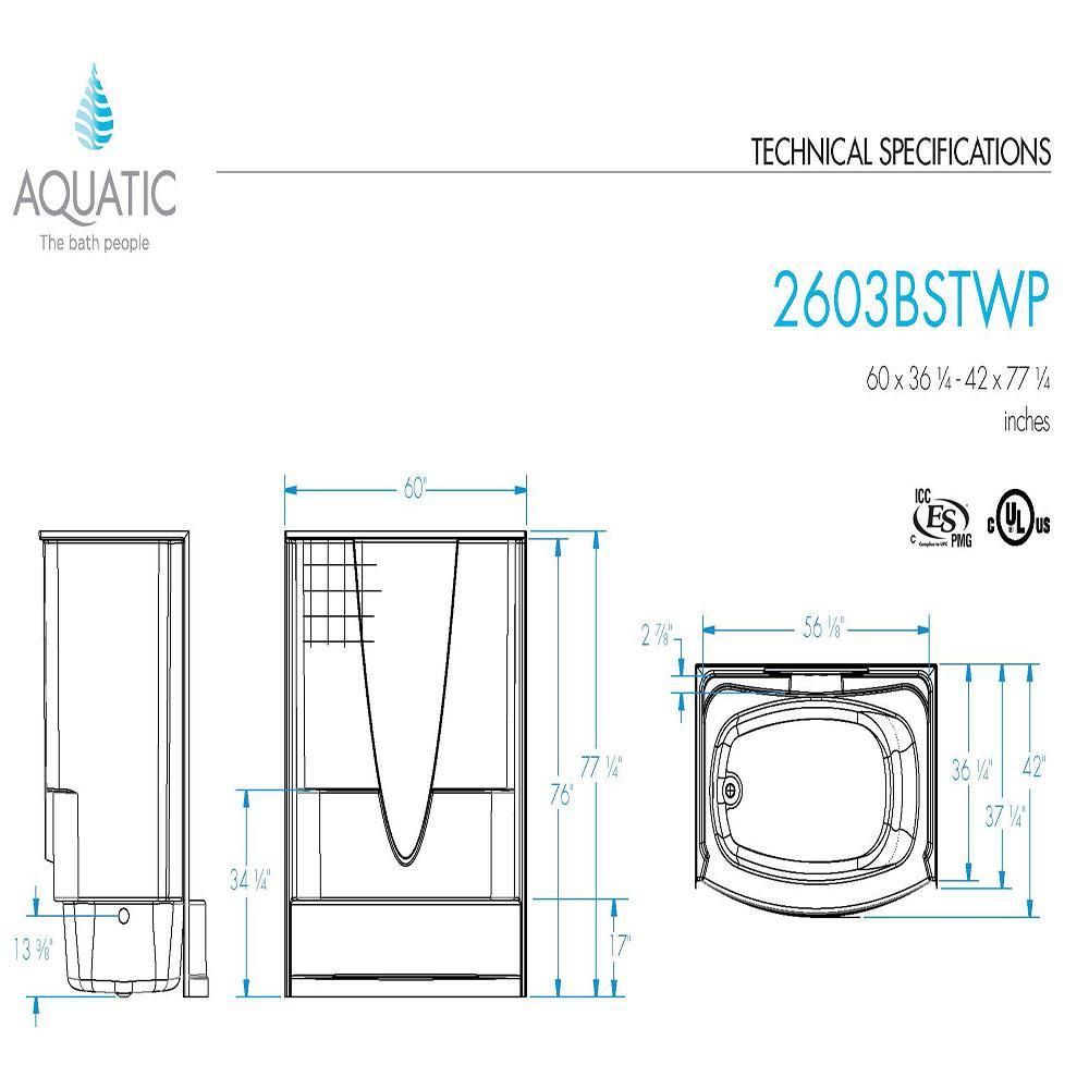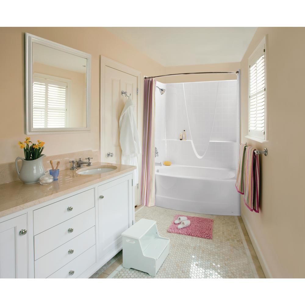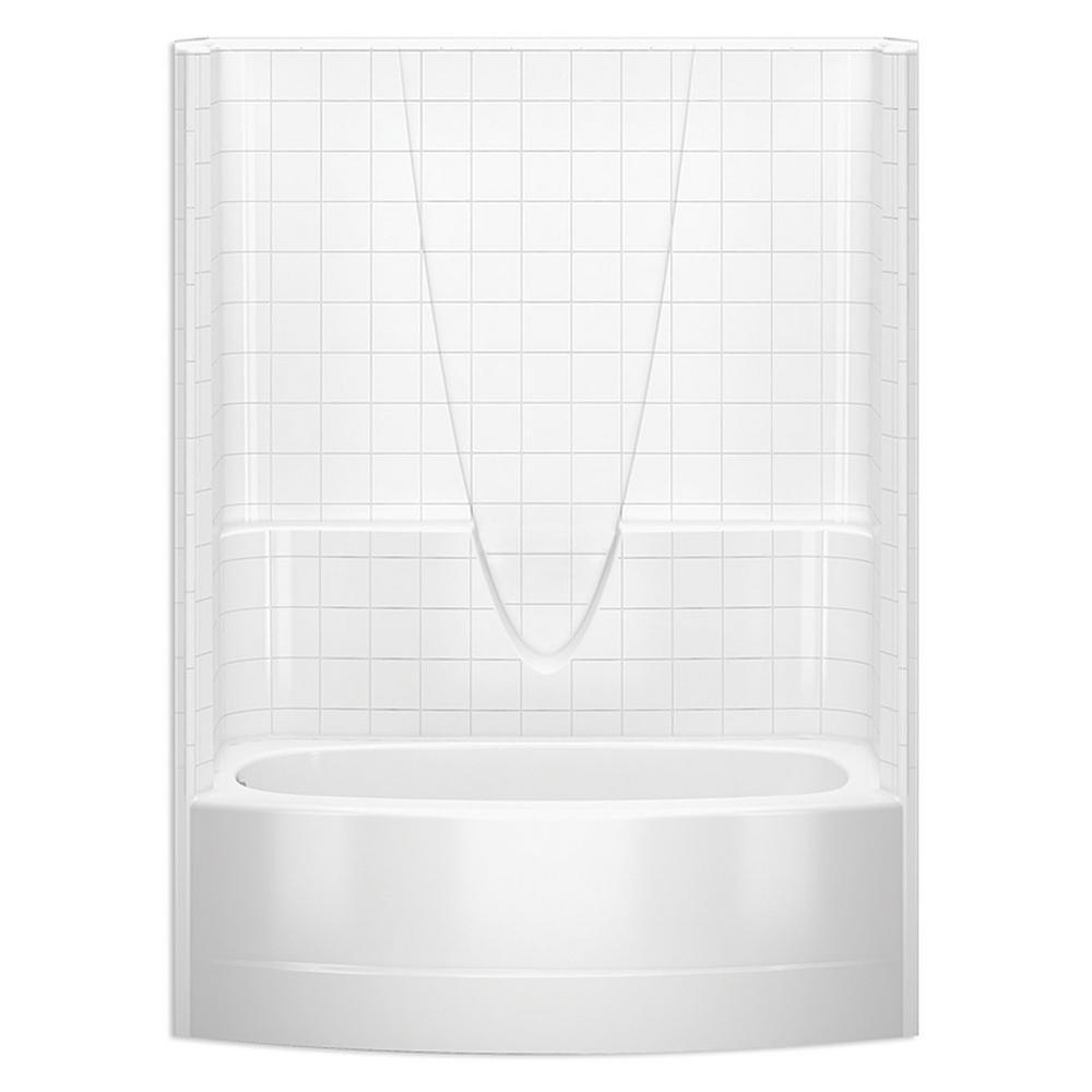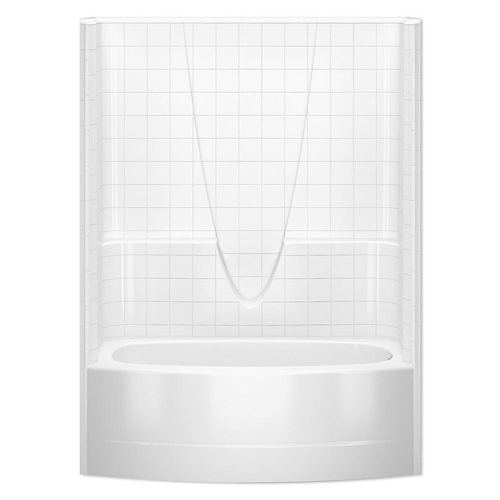 Tub-shower units combine the advantages of beauty, durability and easy maintenance in your choice of versatile designs. Enjoy the combined strengths of both tub and shower. A tub-shower allows you to save space without compromising style. This unit is crafted from an Acrylx applied -Acrylic finish reinforced with Armorcore. Our Everyday line of product now comes standard with Aquatic's exclusive ArmorCore bottom reinforcement; our newest manufacturing breakthrough. This unit features three integral toiletry shelves and a left hand drain. This unit features a smooth tile finish and an integral bowed skirt for a wider bathing area.