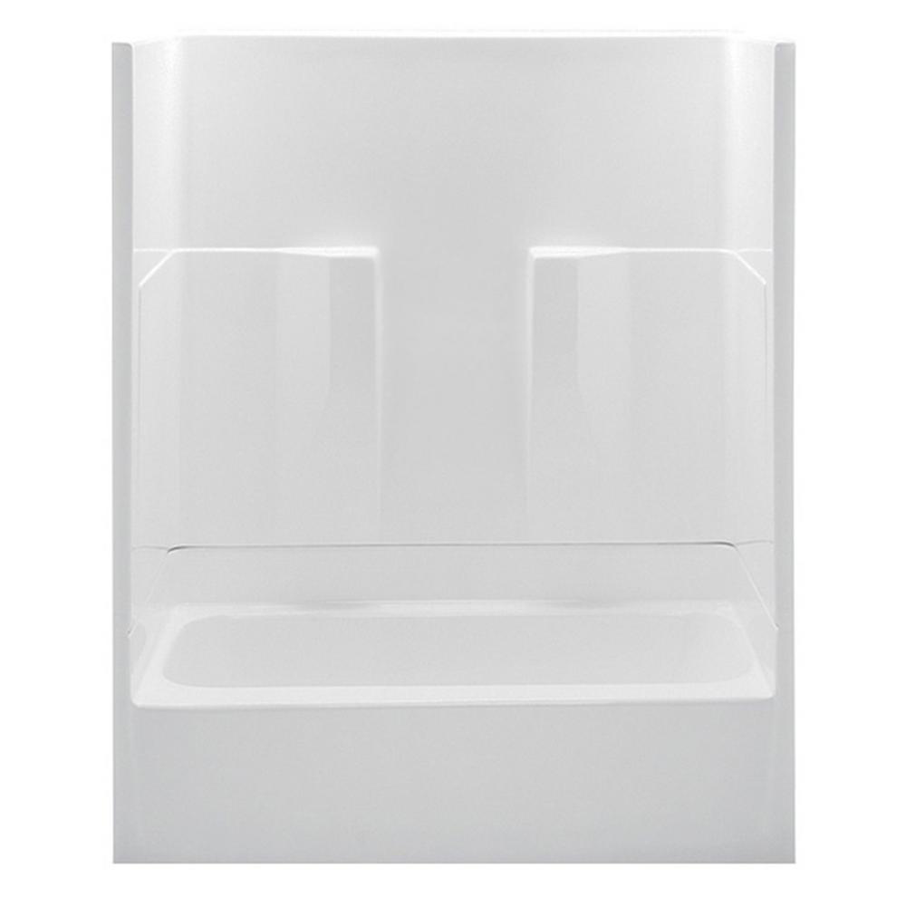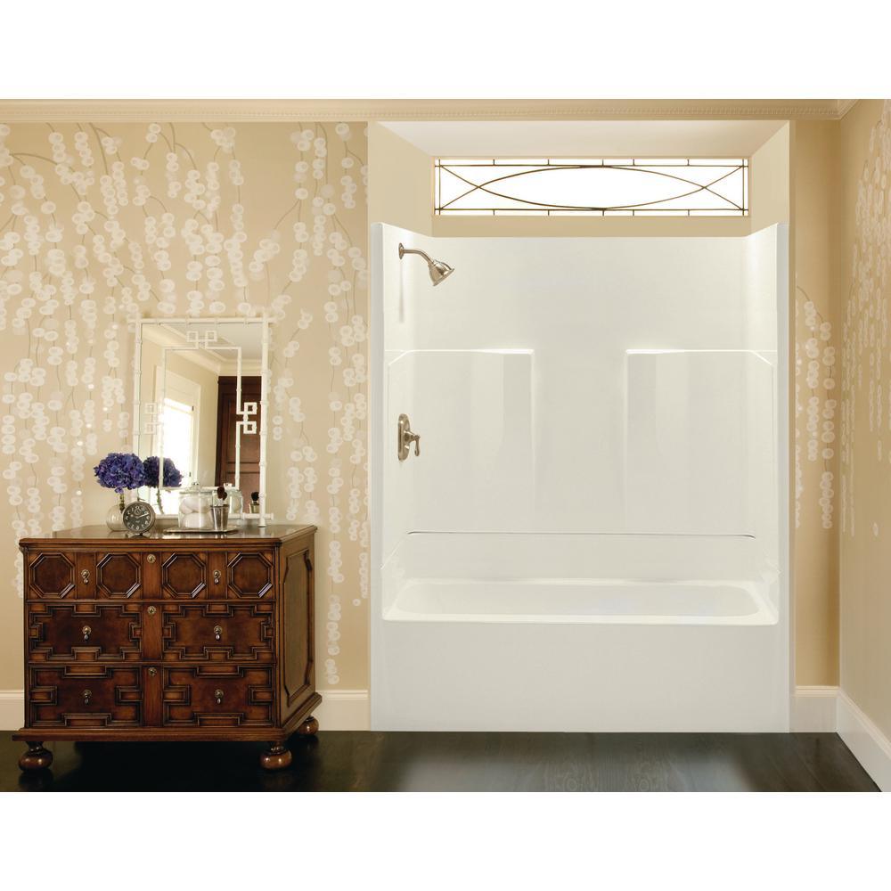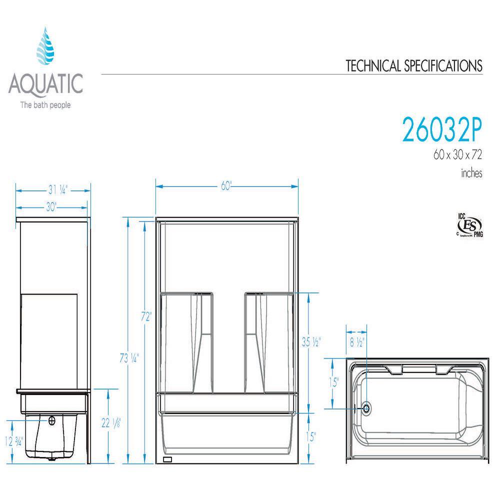Convenience and elegance blend seamlessly in every Varia product. Ideal for remodeling projects, or applications where space is limited, Aquatic sectional products offer an easy to install and attractive bath solution. Our Varia products offer a front fastening system for ease of installation. This unit is crafted from an Acrylx applied -Acrylic finish reinforced with Armorcore. Our Varia products now come standard with Aquatic's exclusive ArmorCore bottom reinforcement; our newest manufacturing breakthrough. This unit is a 2-piece tub-shower with 2 molded toiletry shelves and a left hand drain.