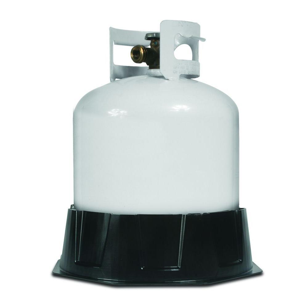 Camco's Cylinder Stabilizing Base for propane tanks helps prevent accidental tipping of your propane cylinder, especially during transport. It is for use with 20 lbs. or 30 lbs. propane tanks. The impact resistant base attaches easily to the tank to keep the cylinder in place during storage or travel. Push tank firmly into the Stabilizing Base for a tight secure snug fit.