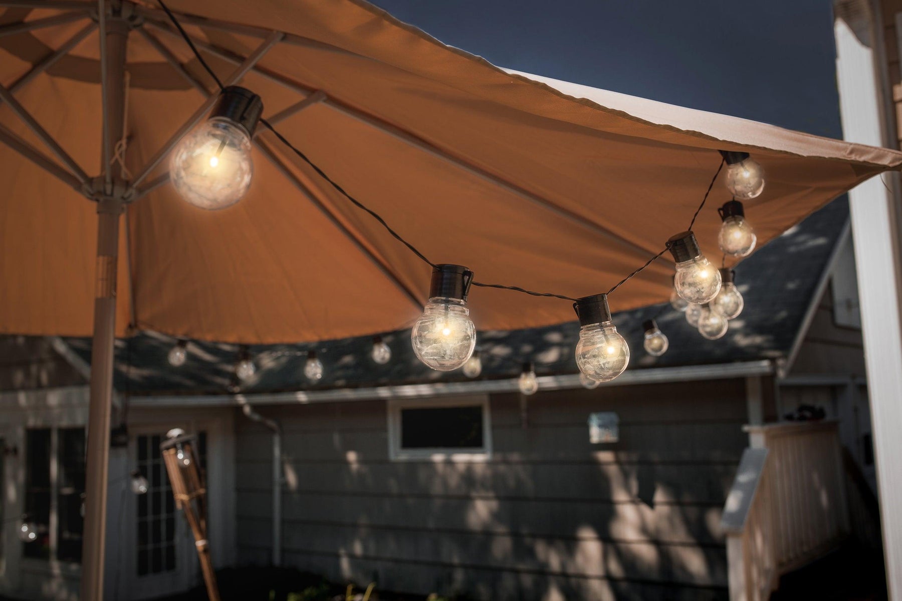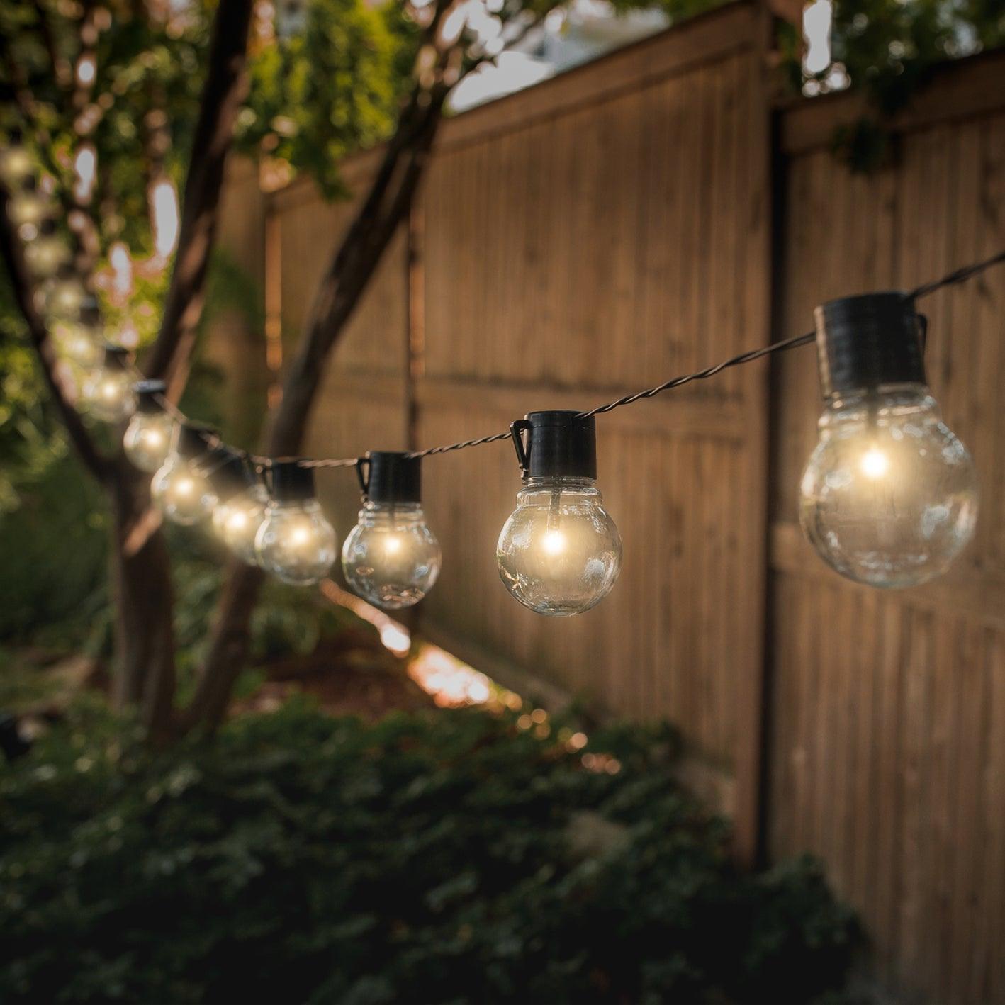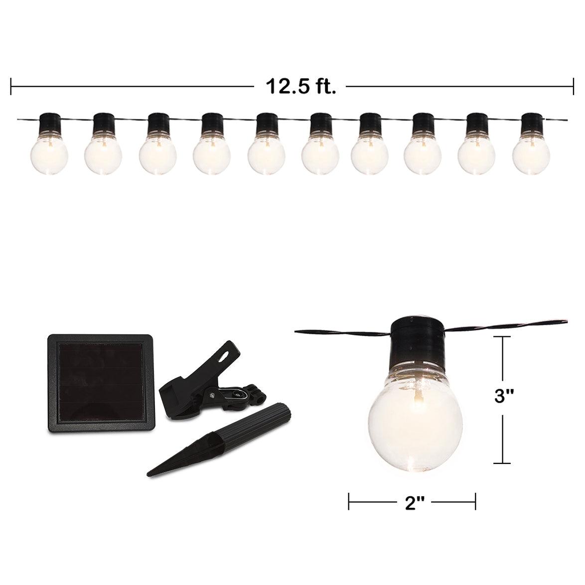 20 Foot Solar Powered Patio Bulb String Lights With 10 Globe Style LED Bulbs