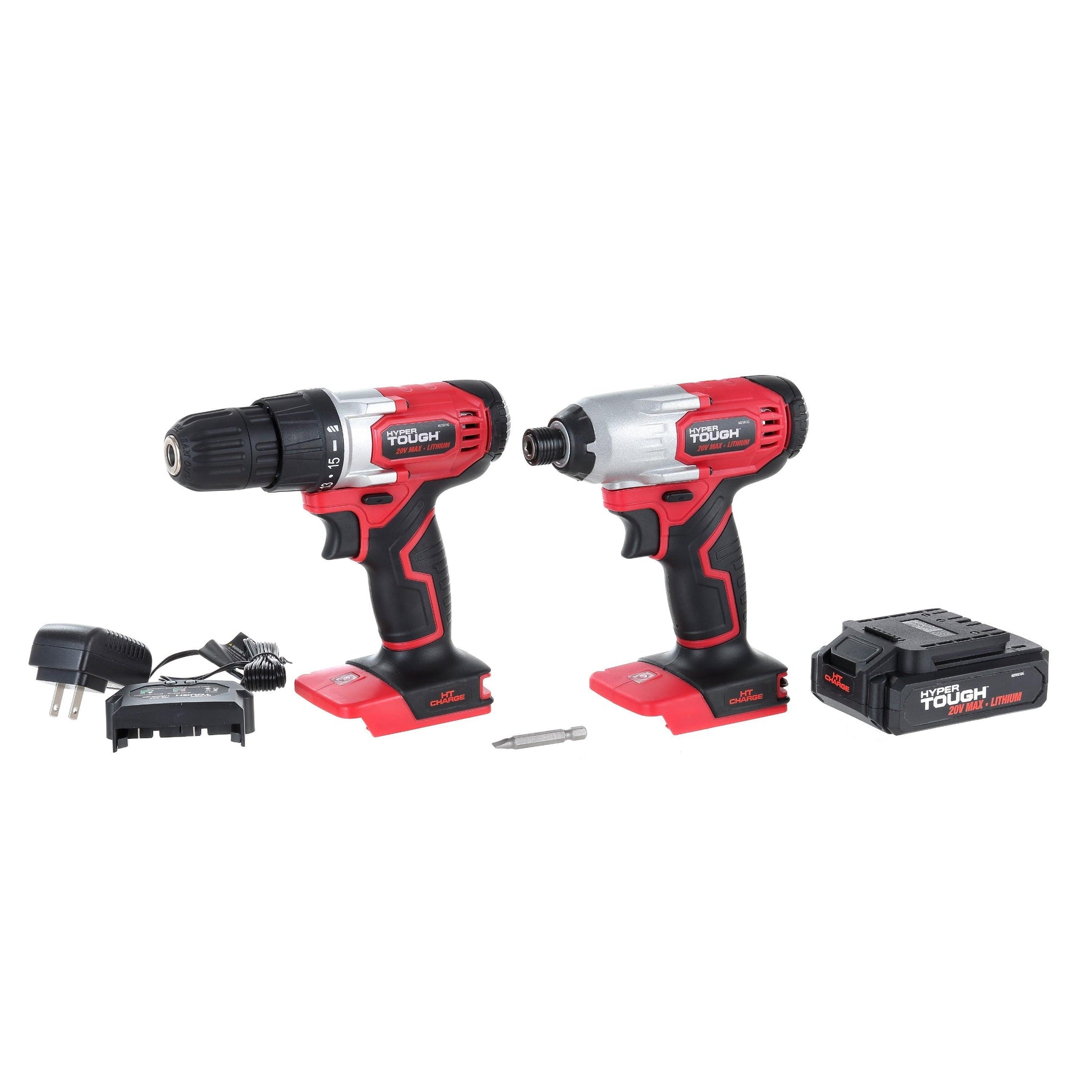 Hyper Tough 20V MAX Lithium-ion 3/8 inch Cordless Drill & 1/4 inch Impact Driver Combo Kit (2-Tool Set) with 1.5Ah Lithium-ion Battery, Charger, Bit Holders & LED Lights