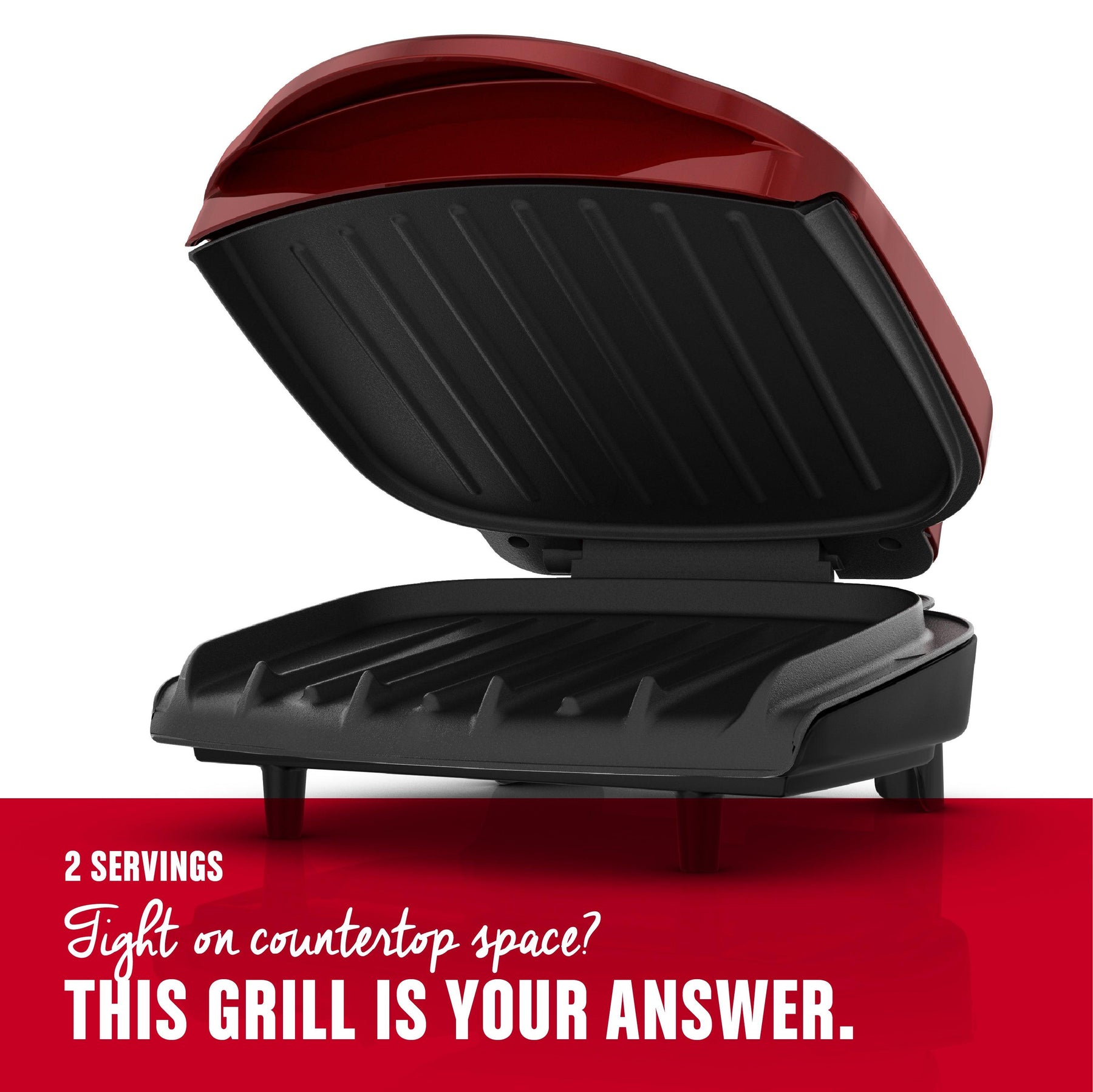 George Foreman 2-Serving Classic Plate Electric Indoor Grill and Panini Press, Red, GR10RM