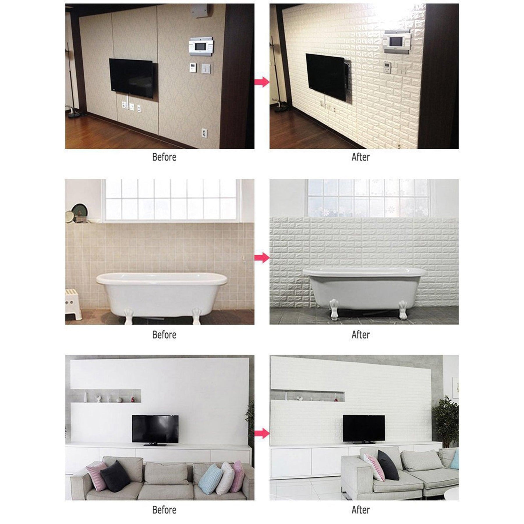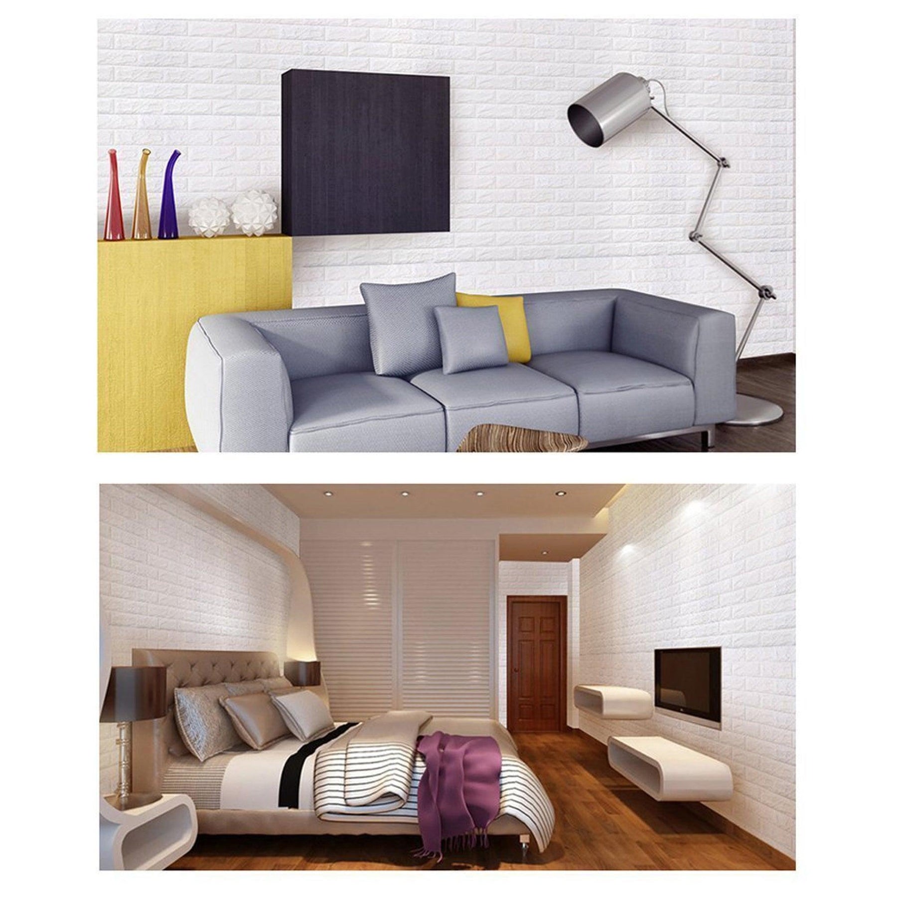 NK HOME 3D Wall Stickers Panels White Brick Wallpaper Peel and Stick Paper Bedroom Living Room Modern Wall Decor Decal Accent Sofa Background TV Walls 1Pc