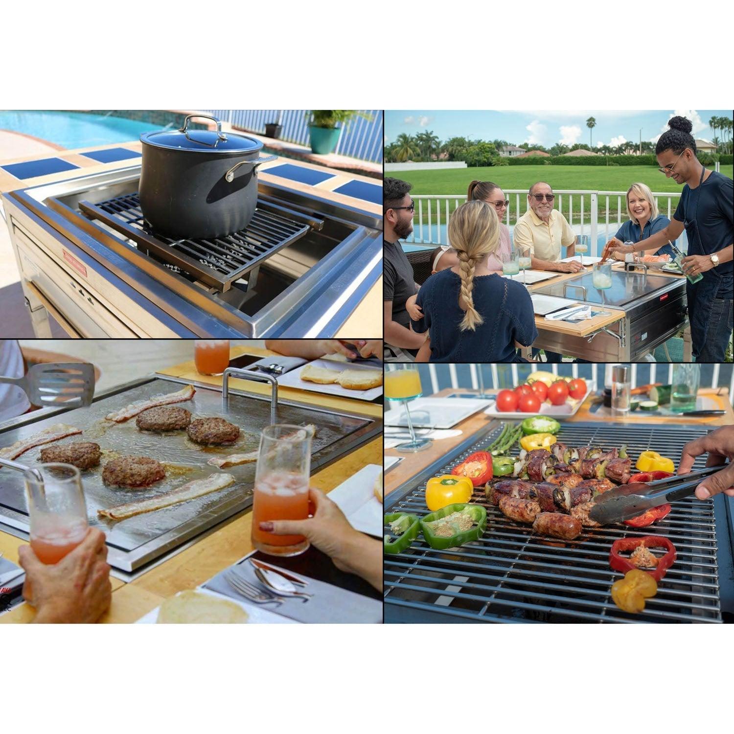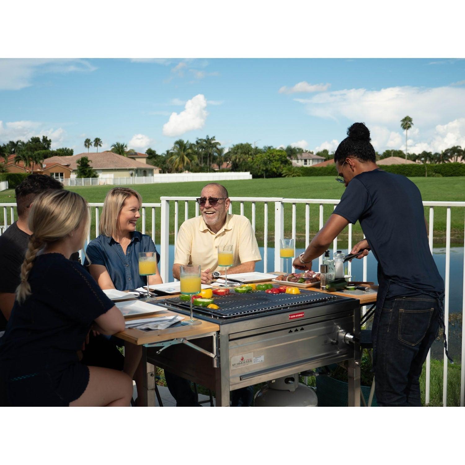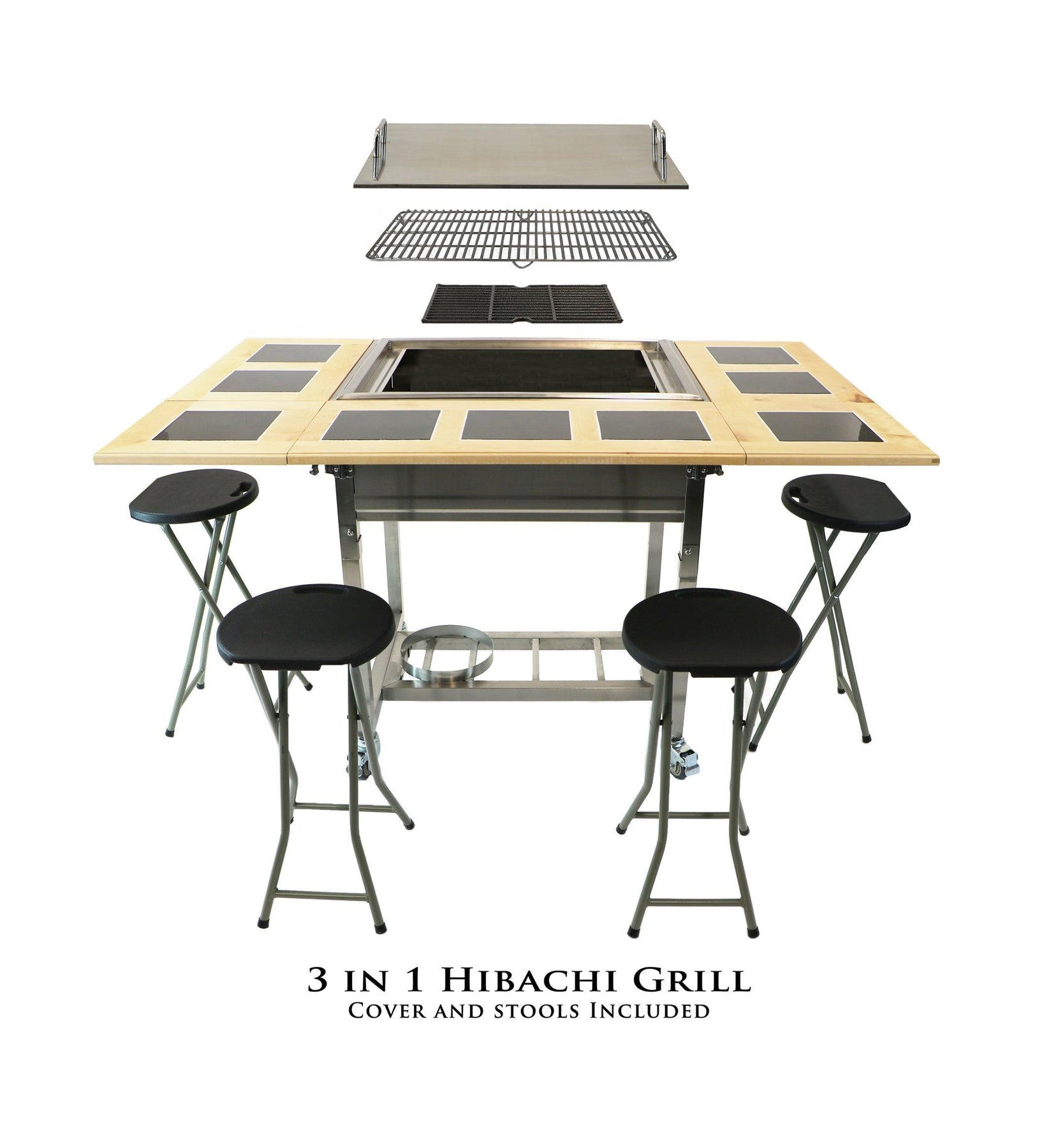 My Hibachi BBQ - Outdoor 3-in-1 Sit Around Grill w/ Flat Top Griddle, BBQ Rack and Cast Iron Burner - Portable for Tailgating