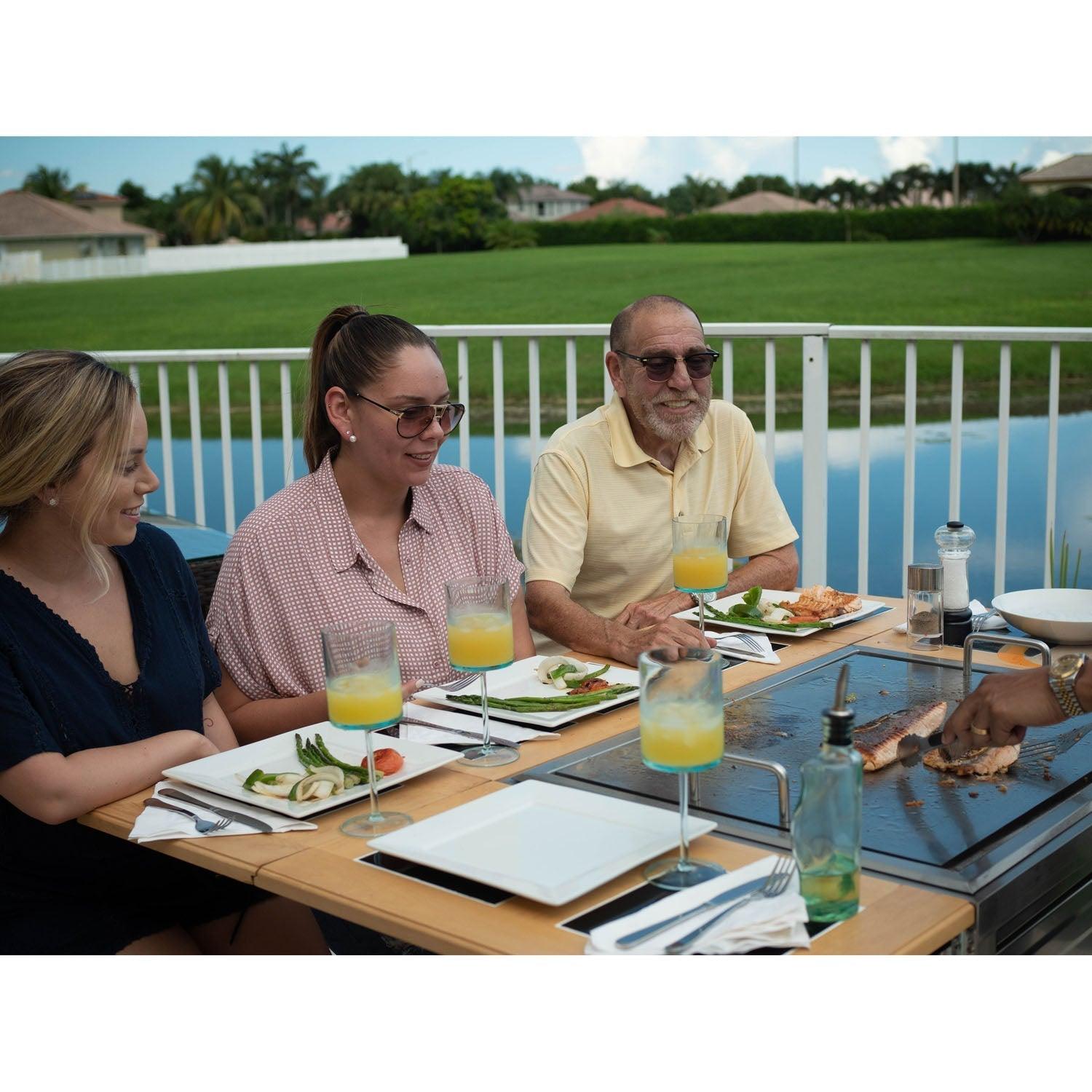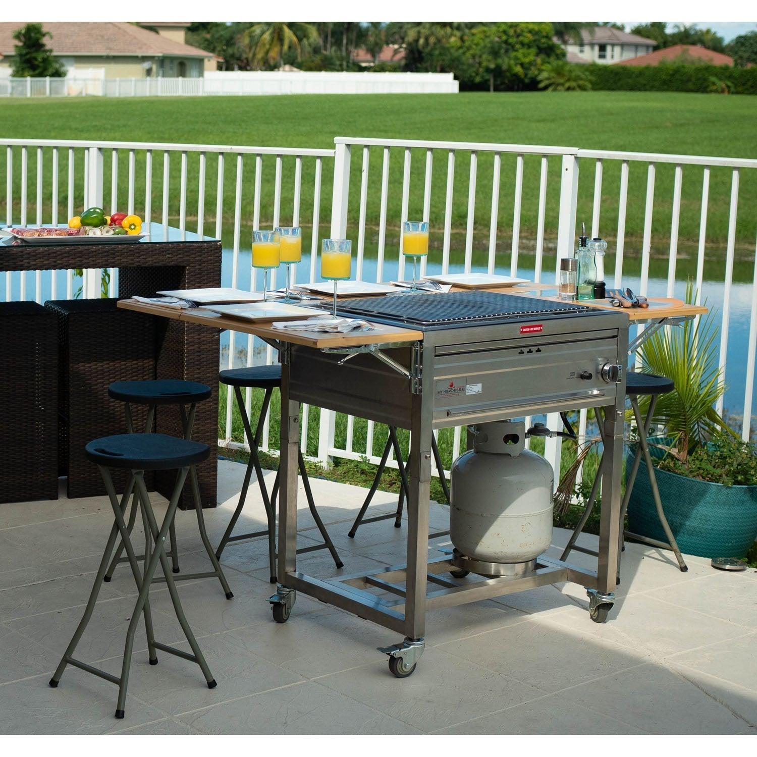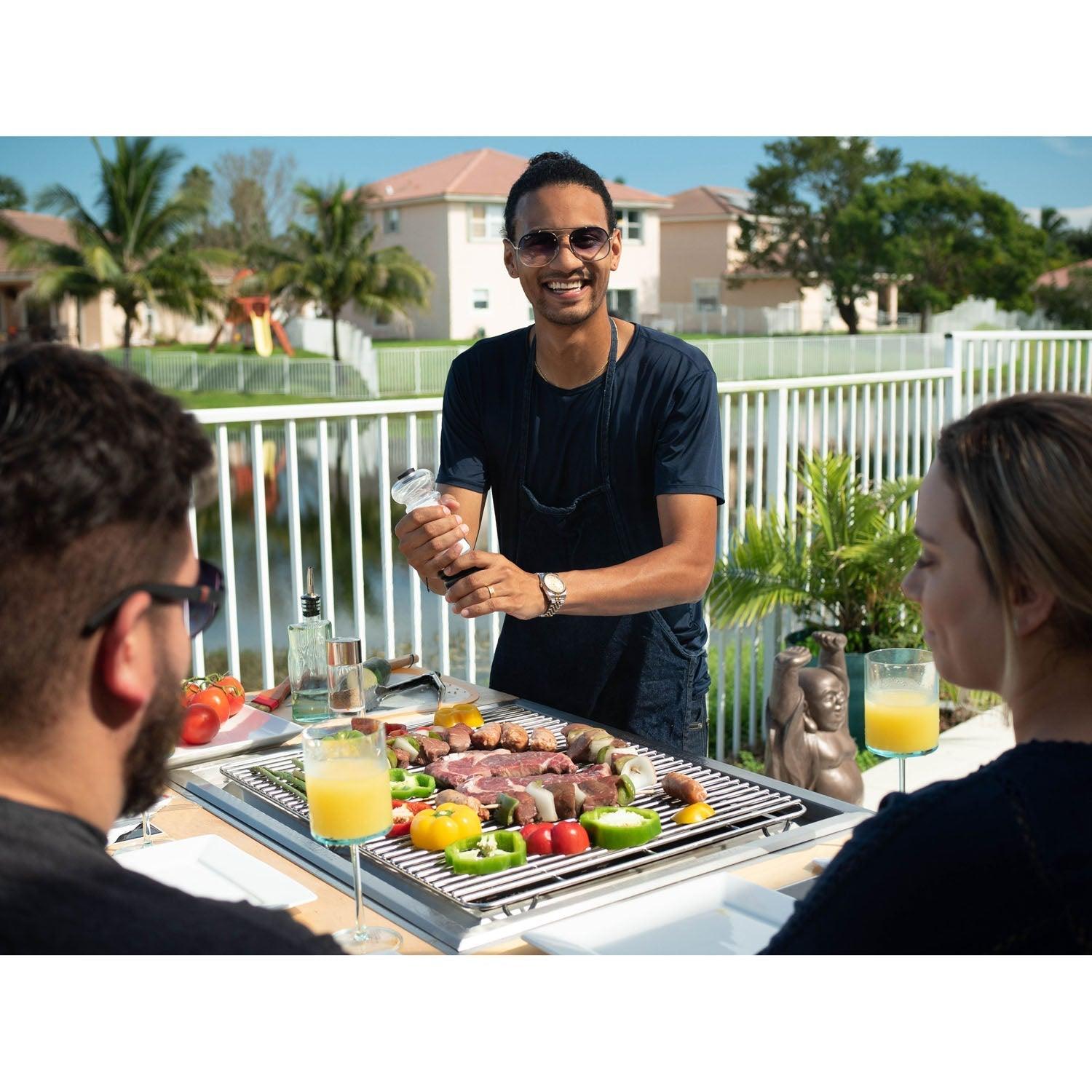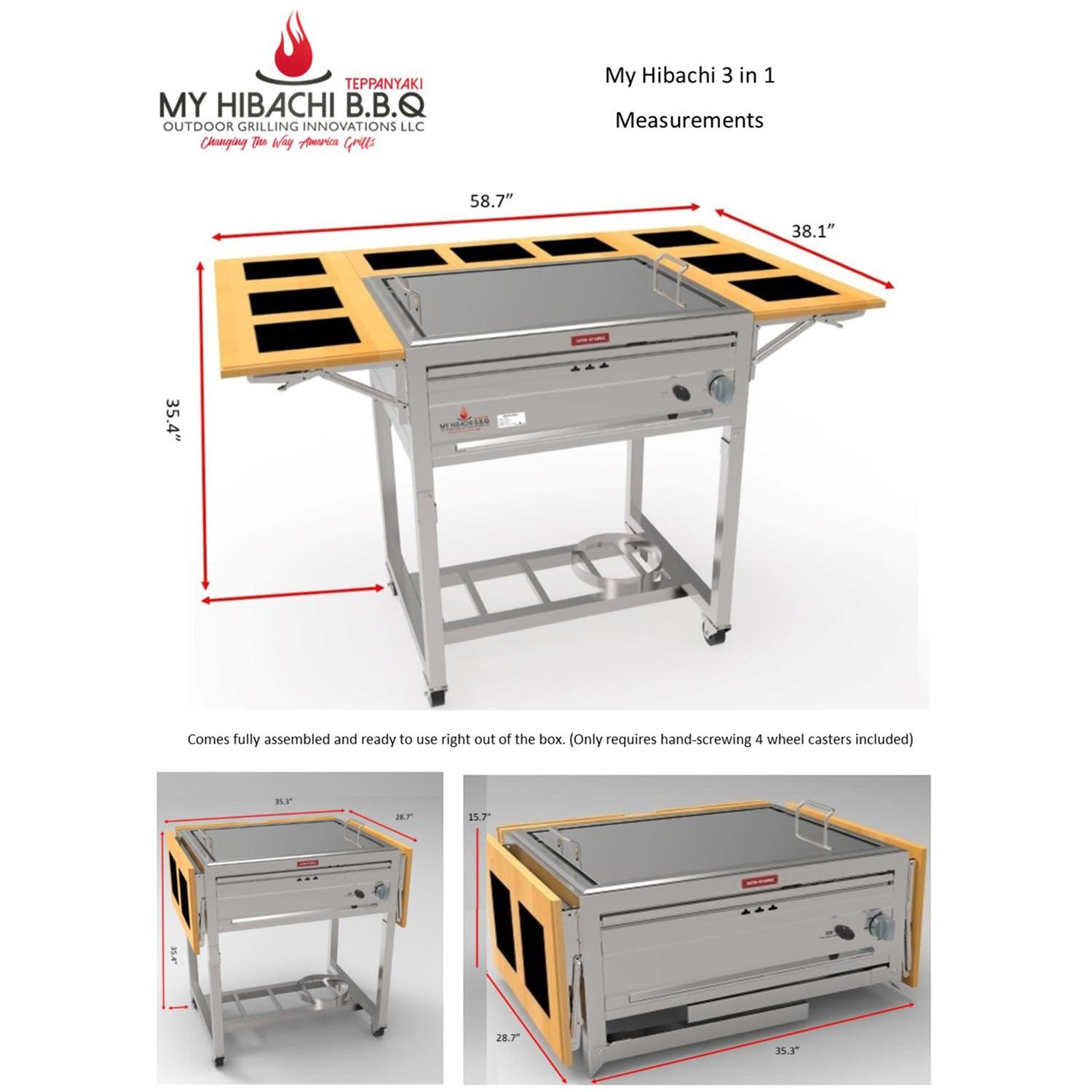 My Hibachi BBQ - Outdoor 3-in-1 Sit Around Grill w/ Flat Top Griddle, BBQ Rack and Cast Iron Burner - Portable for Tailgating