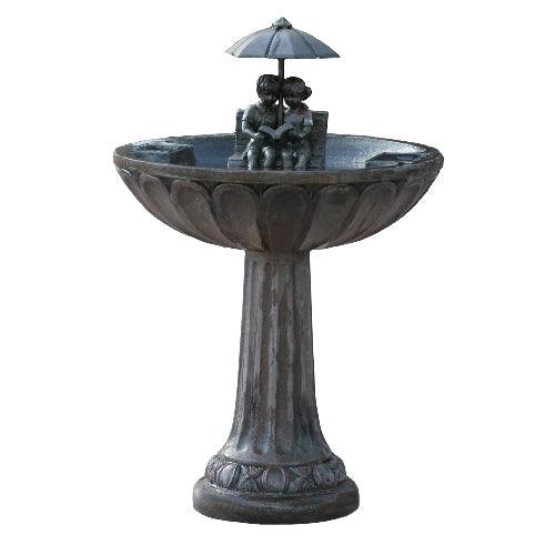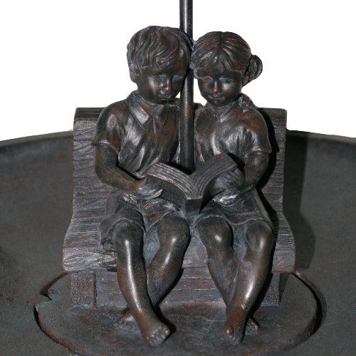 Smart Solar 20326R01 Umbrella Solar Fountain Boy and Girl Reading on a Bench