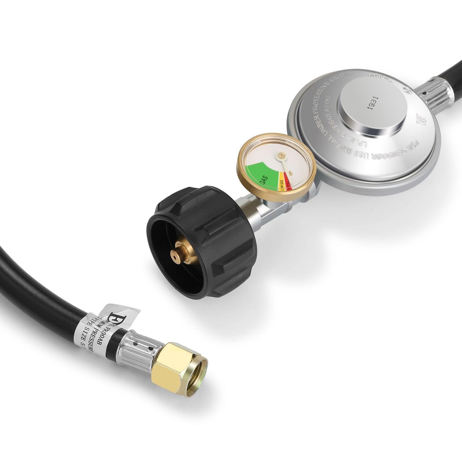 WADEO 2FT Propane Regulator Hose with Propane Tank Gauge, LP Gas Regulator for Most QCC1 Hose and Regulator for Most LP Grill, Heater and Fire Pit Table, 3/8'' Female Flare Fitting