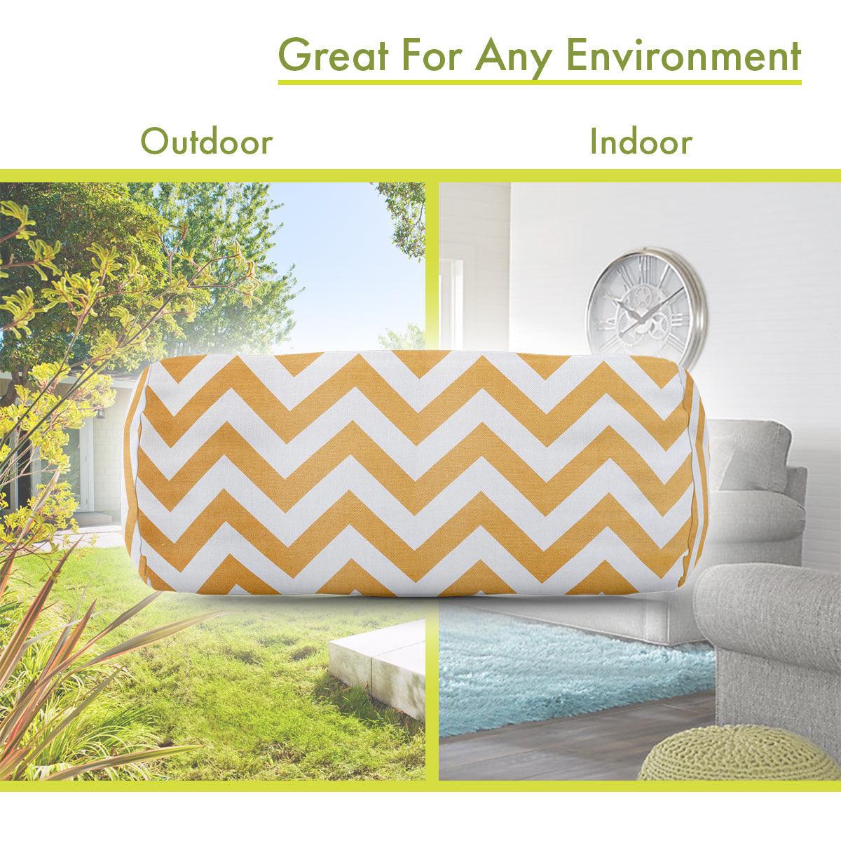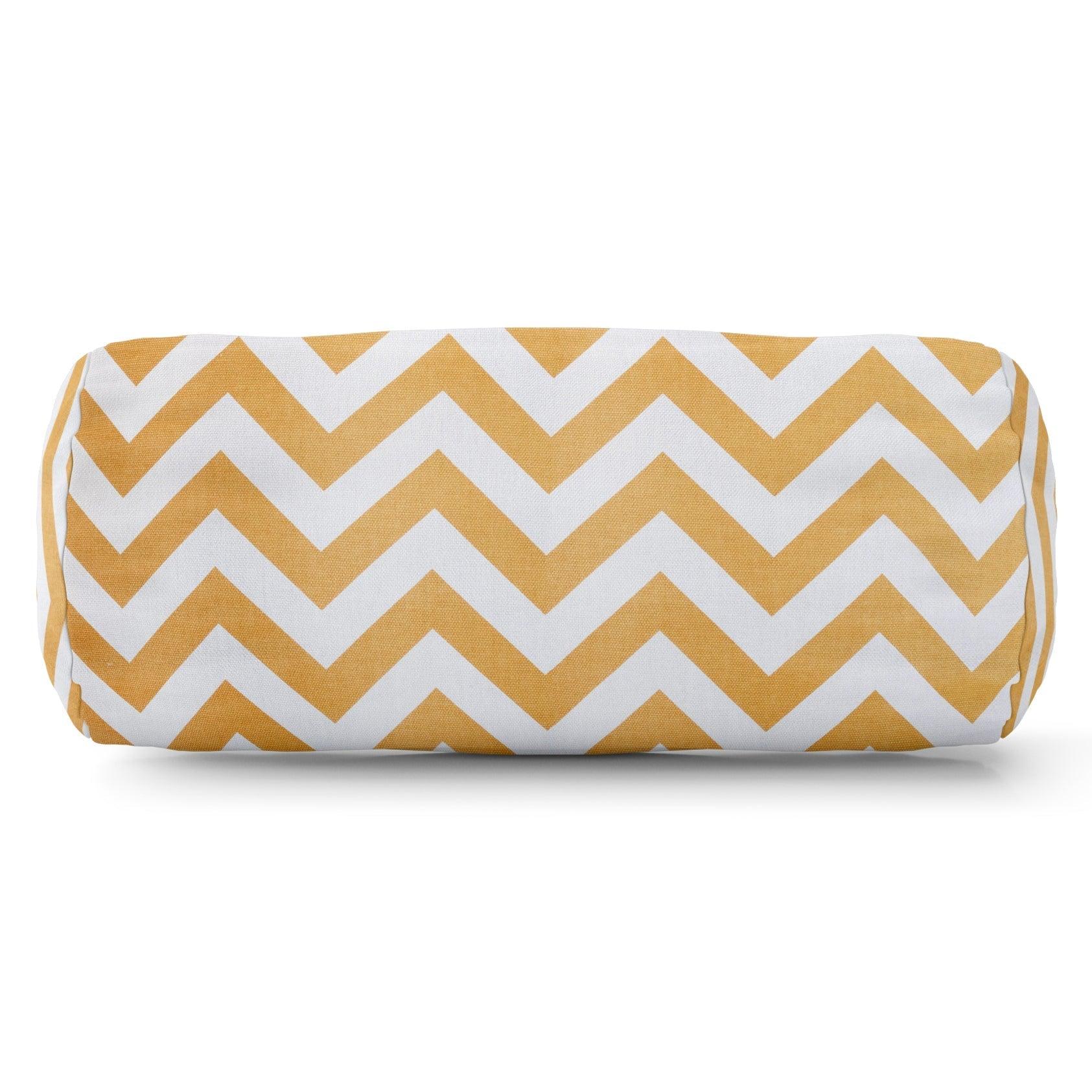 Majestic Home Goods Indoor Outdoor Yellow Chevron Round Bolster Decorative Throw Pillow 18.5 in L x 8 in W x 8 in H