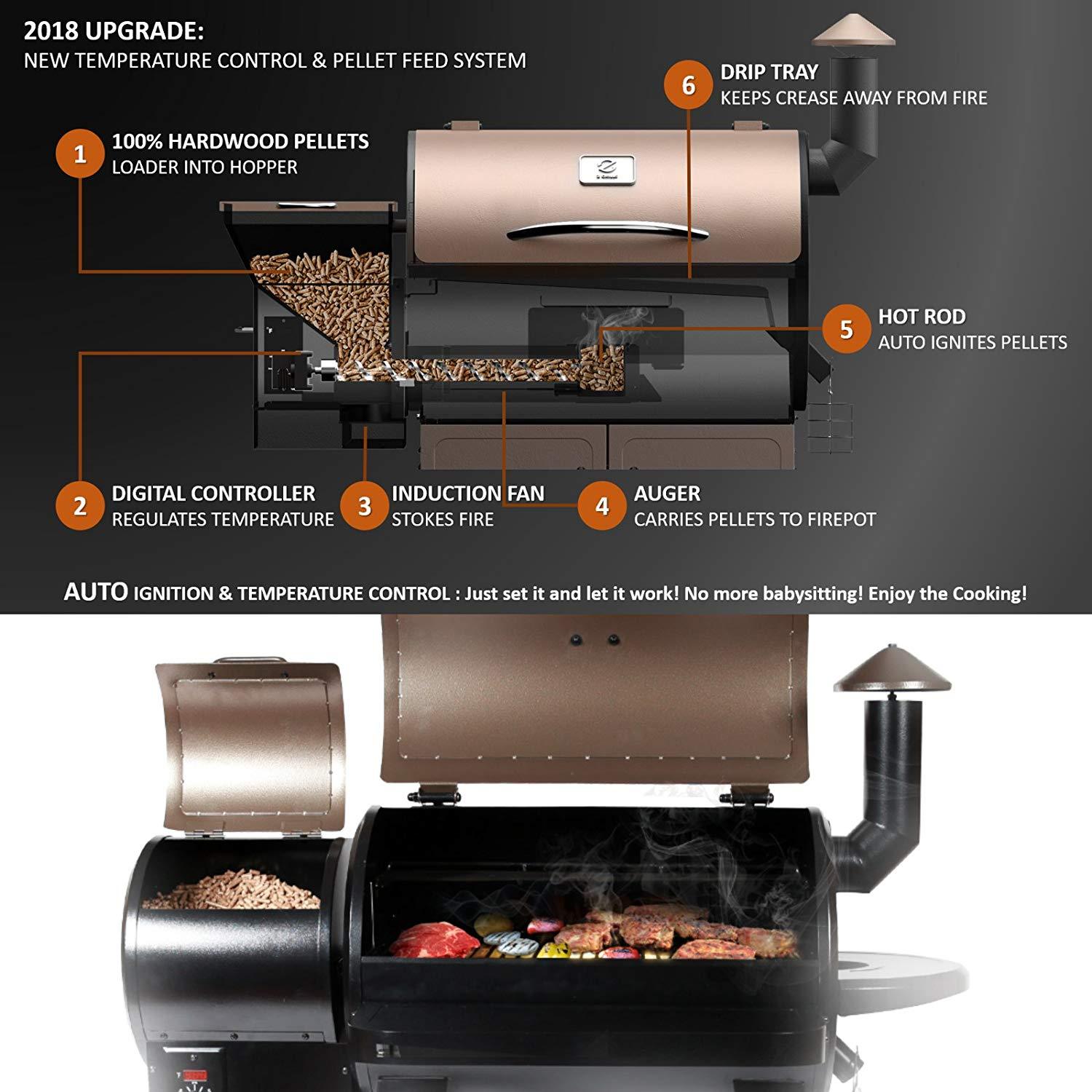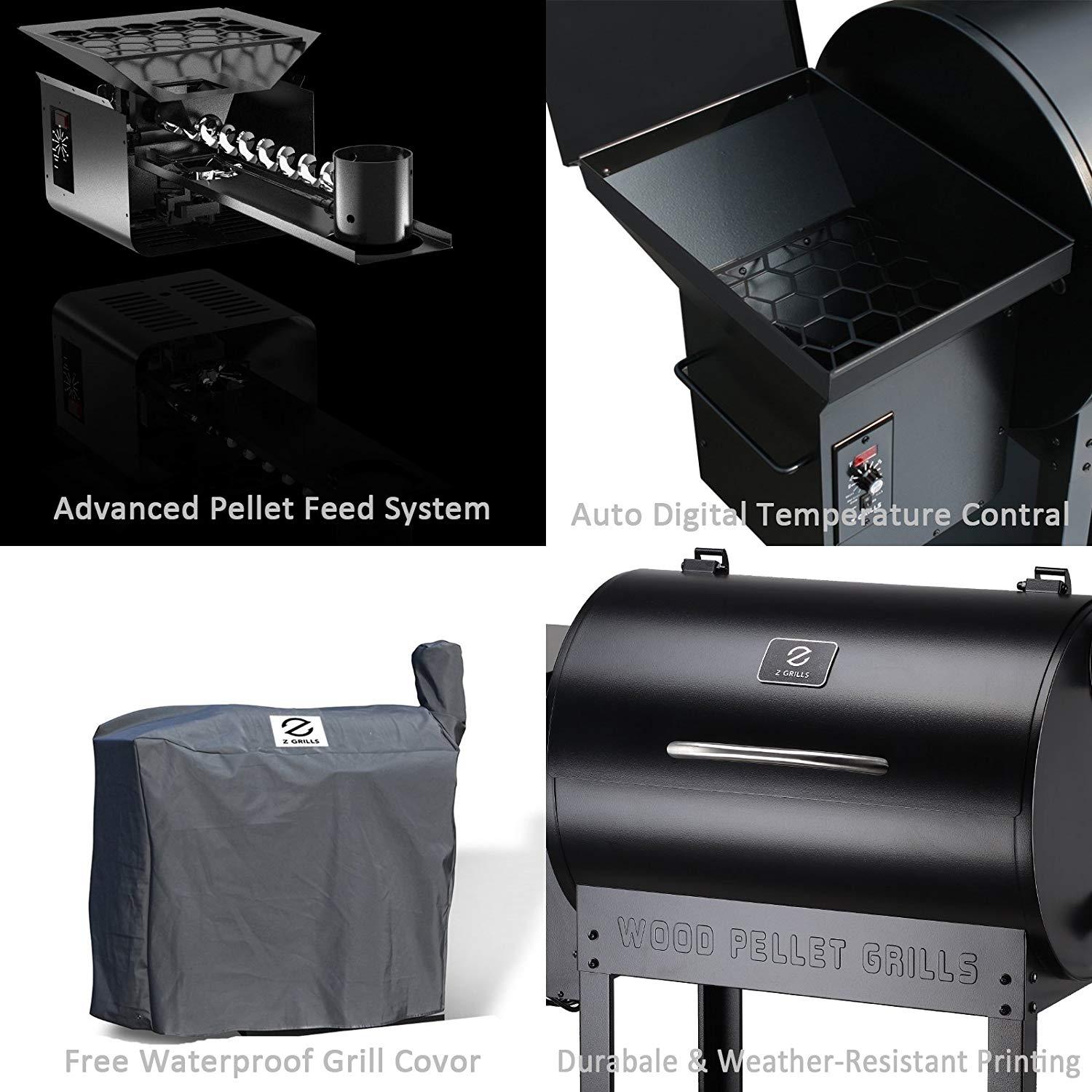 Z Grills ZPG-7002 Wood Pellet Grill & Smoker, 8 in 1 BBQ Grill Auto Temperature Control, 700 sq inch Cooking Area, Black