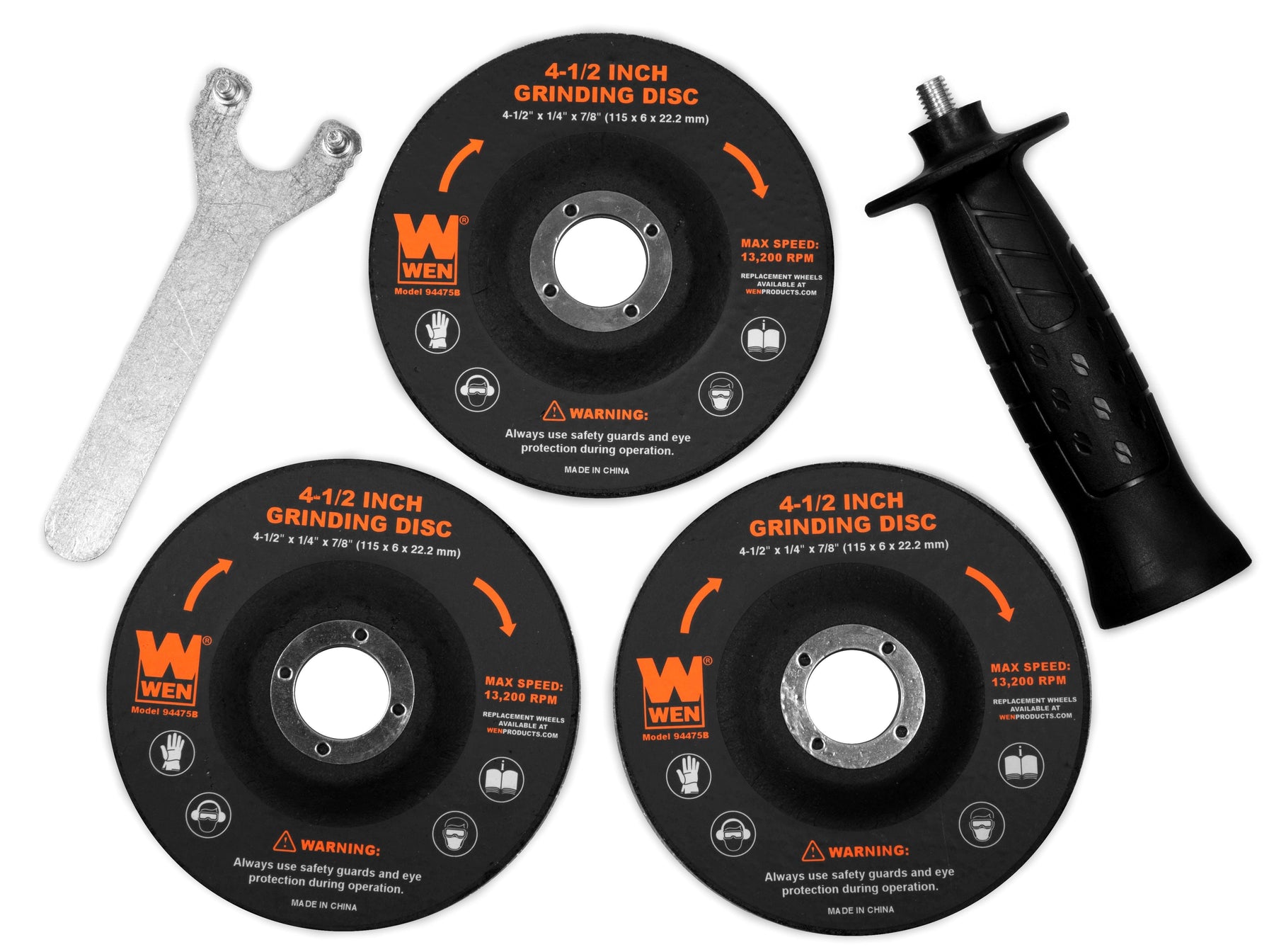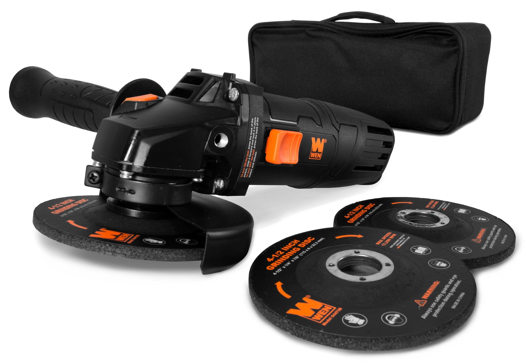WEN 7.5-Amp 4-1/2-Inch Corded Angle Grinder with 3 Discs and Case, 94475