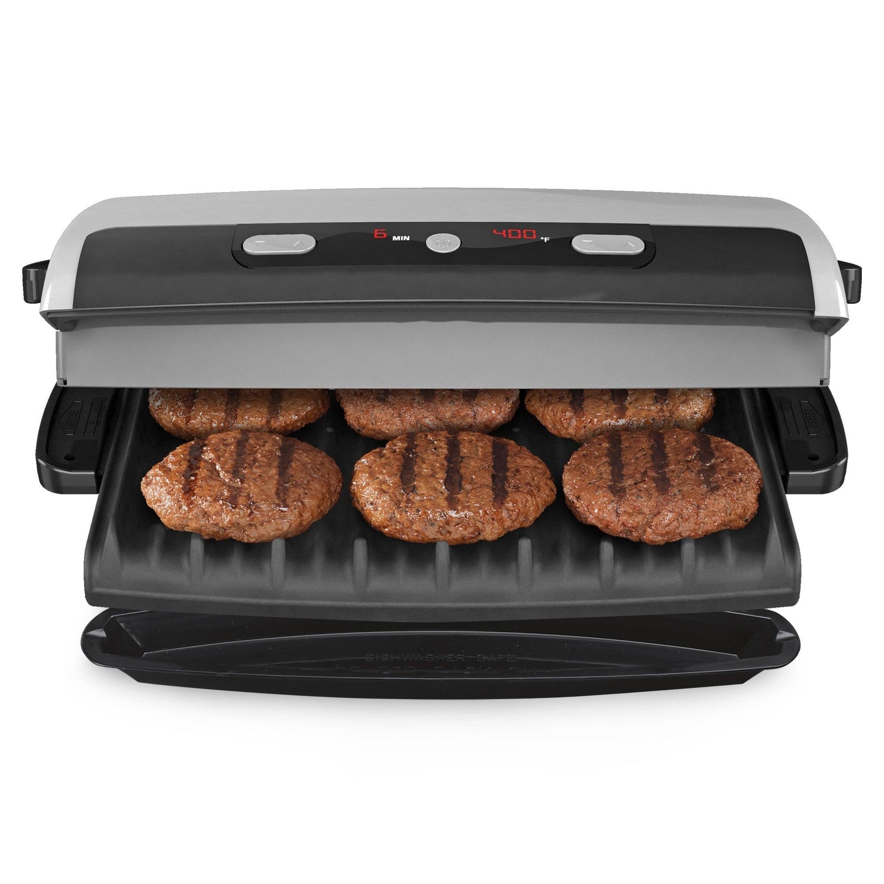 George Foreman 6-Serving Removable Plate Electric Indoor Grill and Panini Press, Silver, GRP99