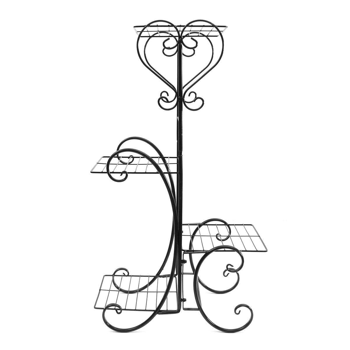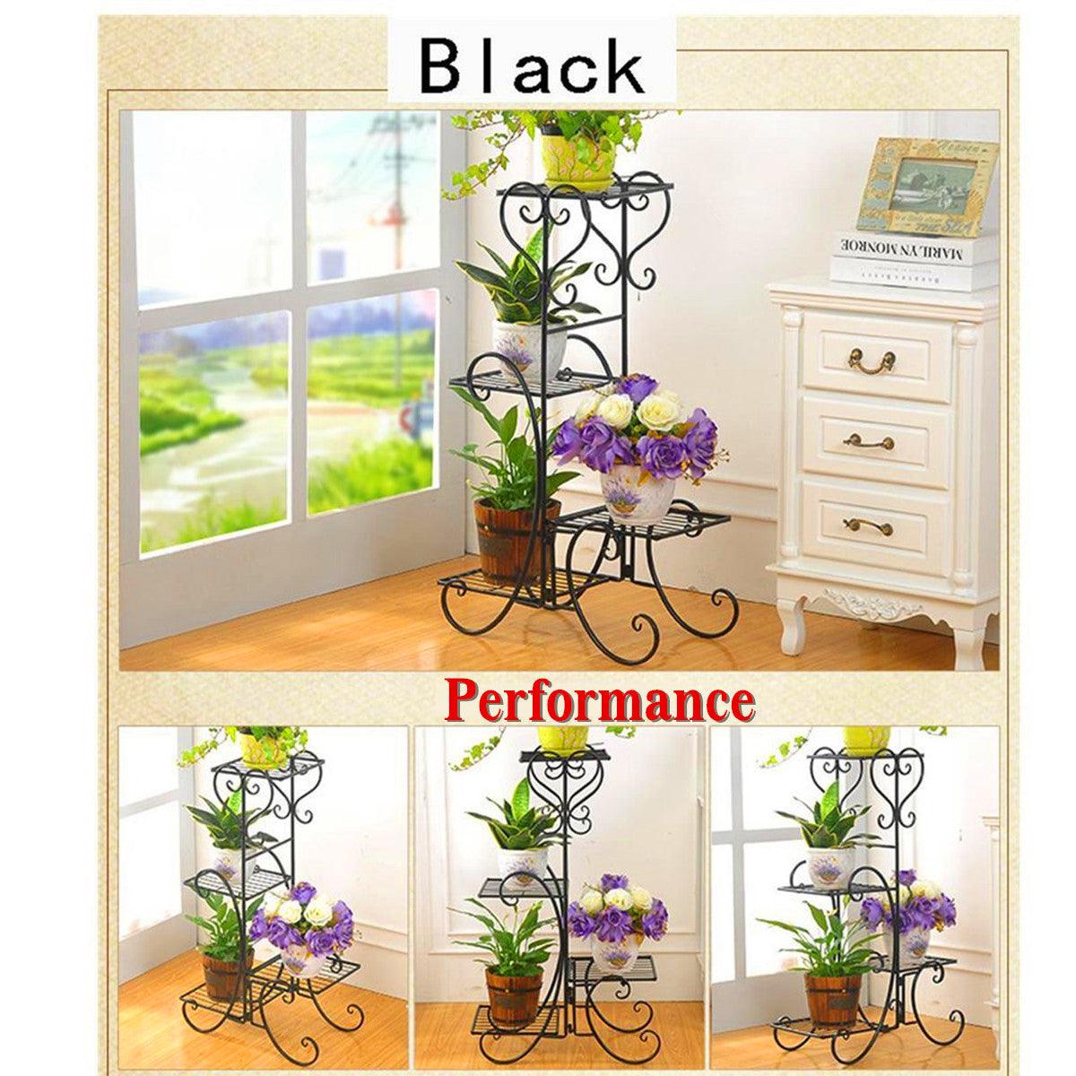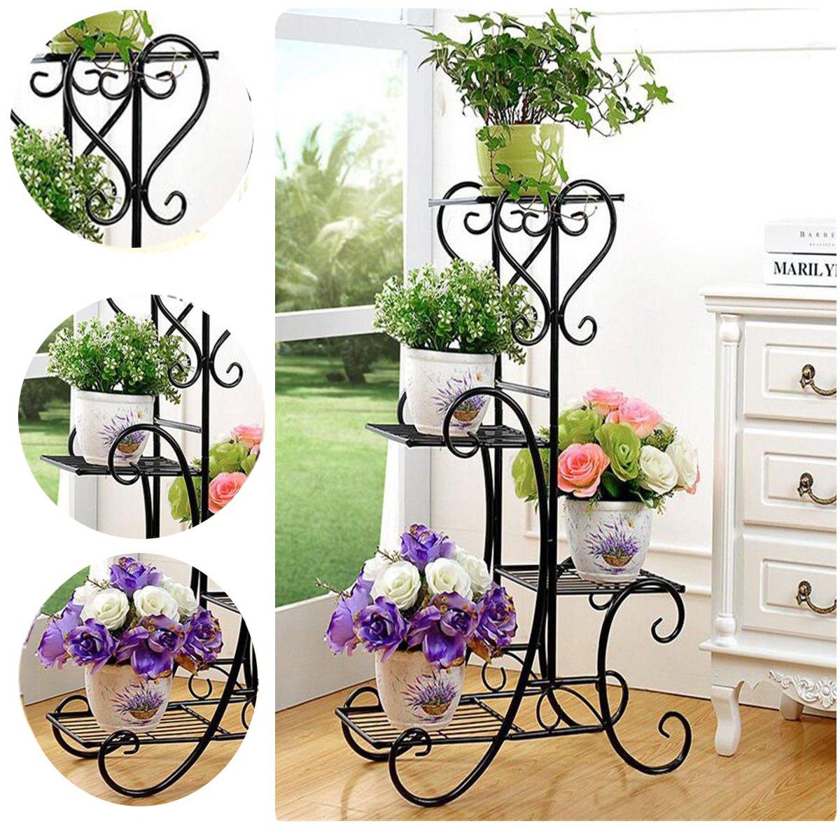 4 Tier/6 Tier Black Wrought Iron Flower Stand & Plant Stand Shelf Flower Pot Flower Display Stand For Balcony Terrace Indoor Outdoor