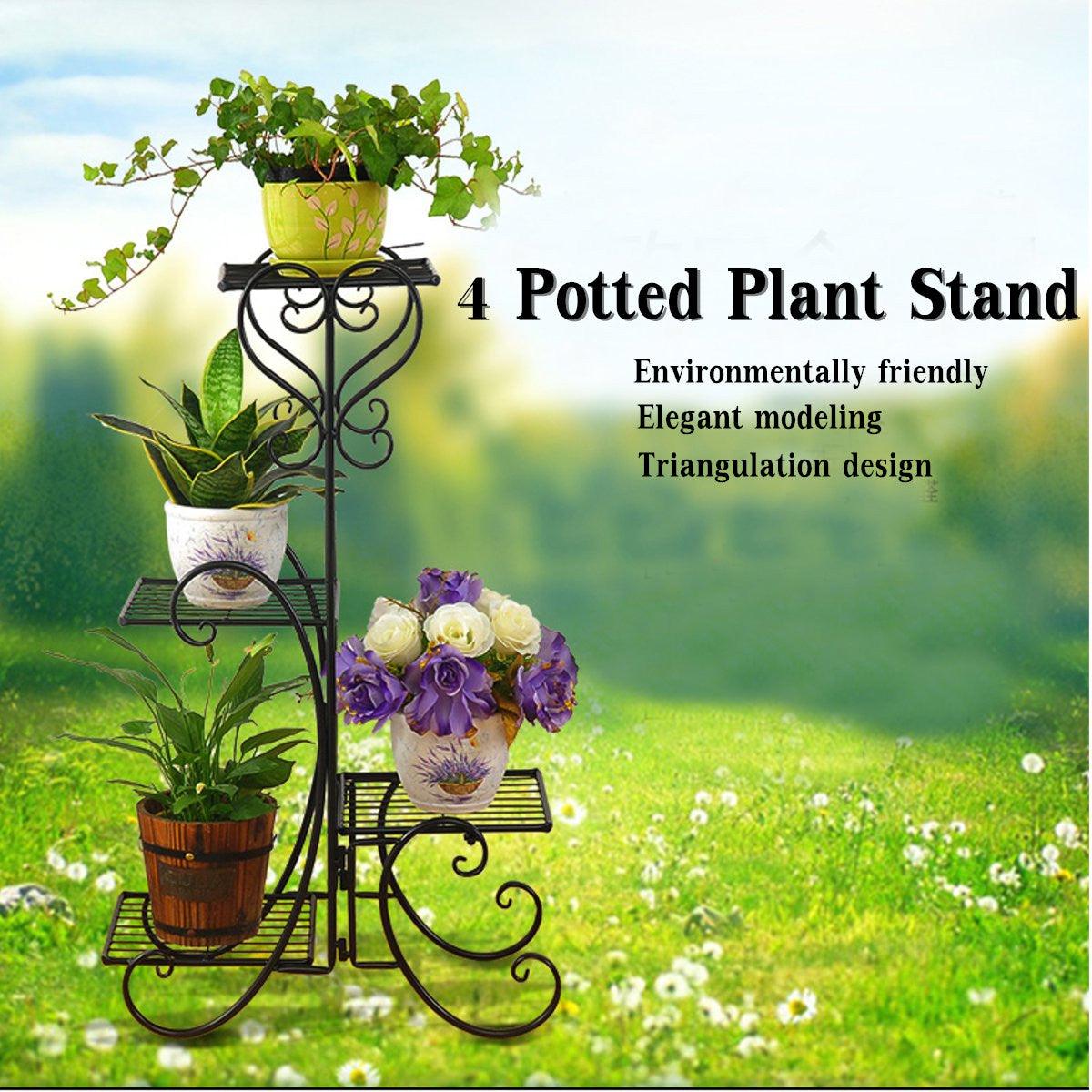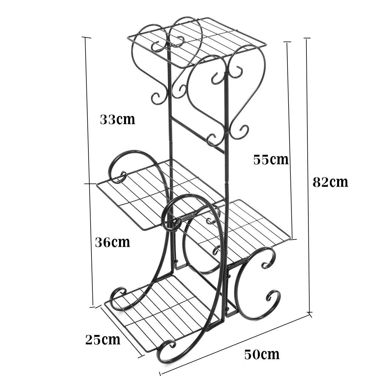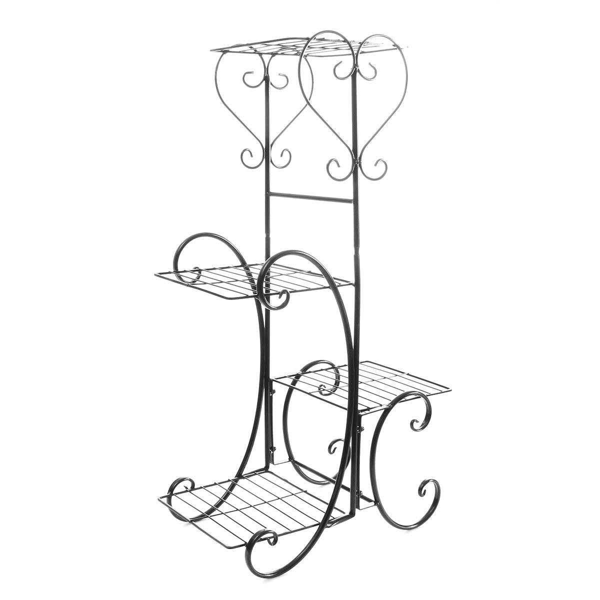4 Tier/6 Tier Black Wrought Iron Flower Stand & Plant Stand Shelf Flower Pot Flower Display Stand For Balcony Terrace Indoor Outdoor