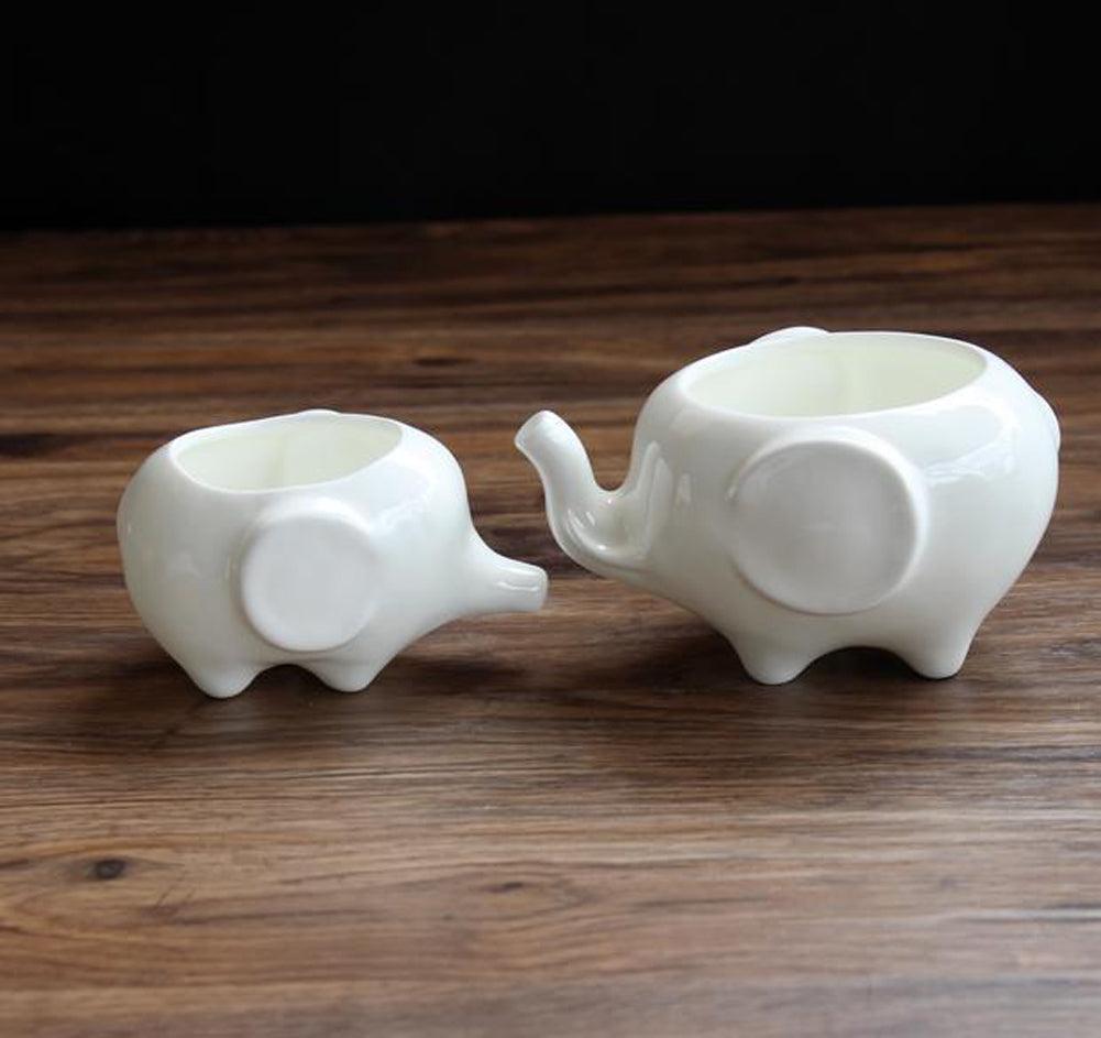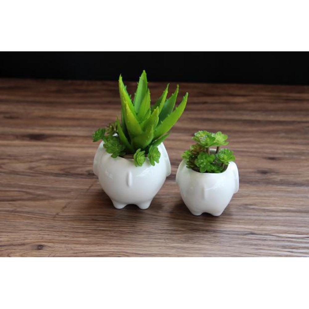 Kawaii Animals Ceramic Flower pot Elephant Succulent Planter Cactus Succulent Plants Flower Cute White Pot (1PCS Elephants)