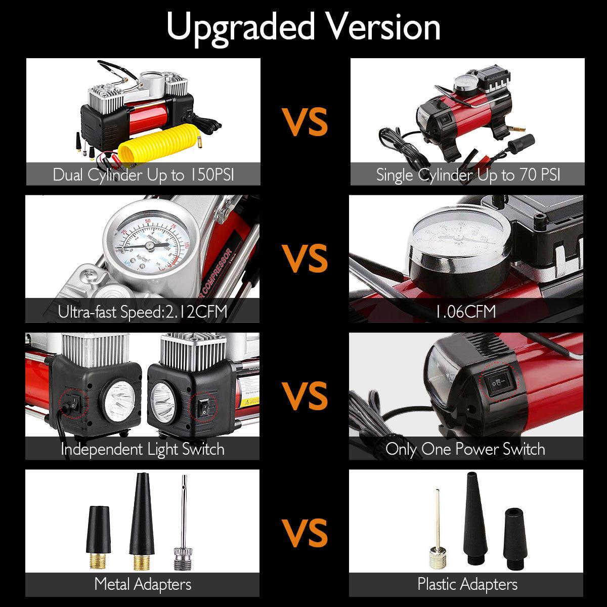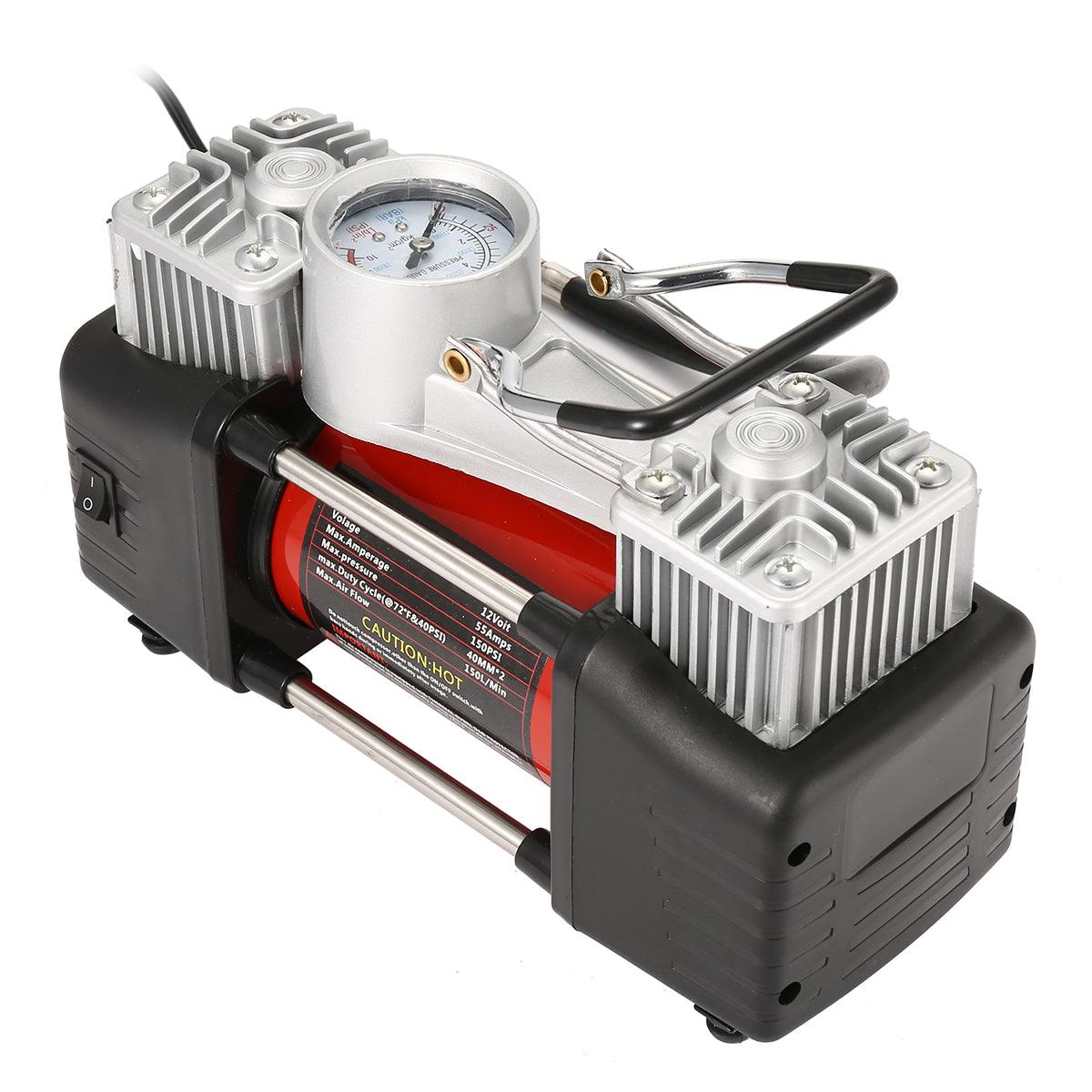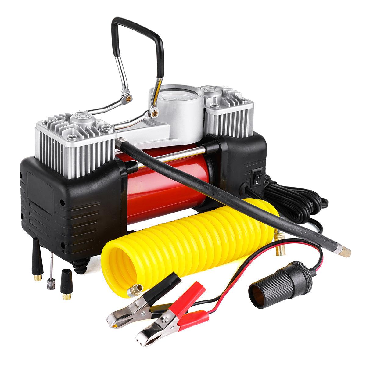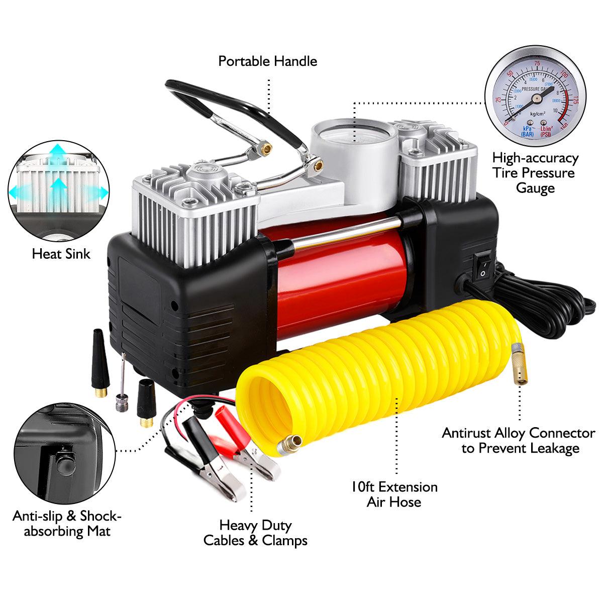 Dual Cylinder Air Compressor Pump, Heavy Duty Portable Air Pump, Auto 12V Tire Inflator for Car, Truck, RV, Bicycle and Other Inflatables
