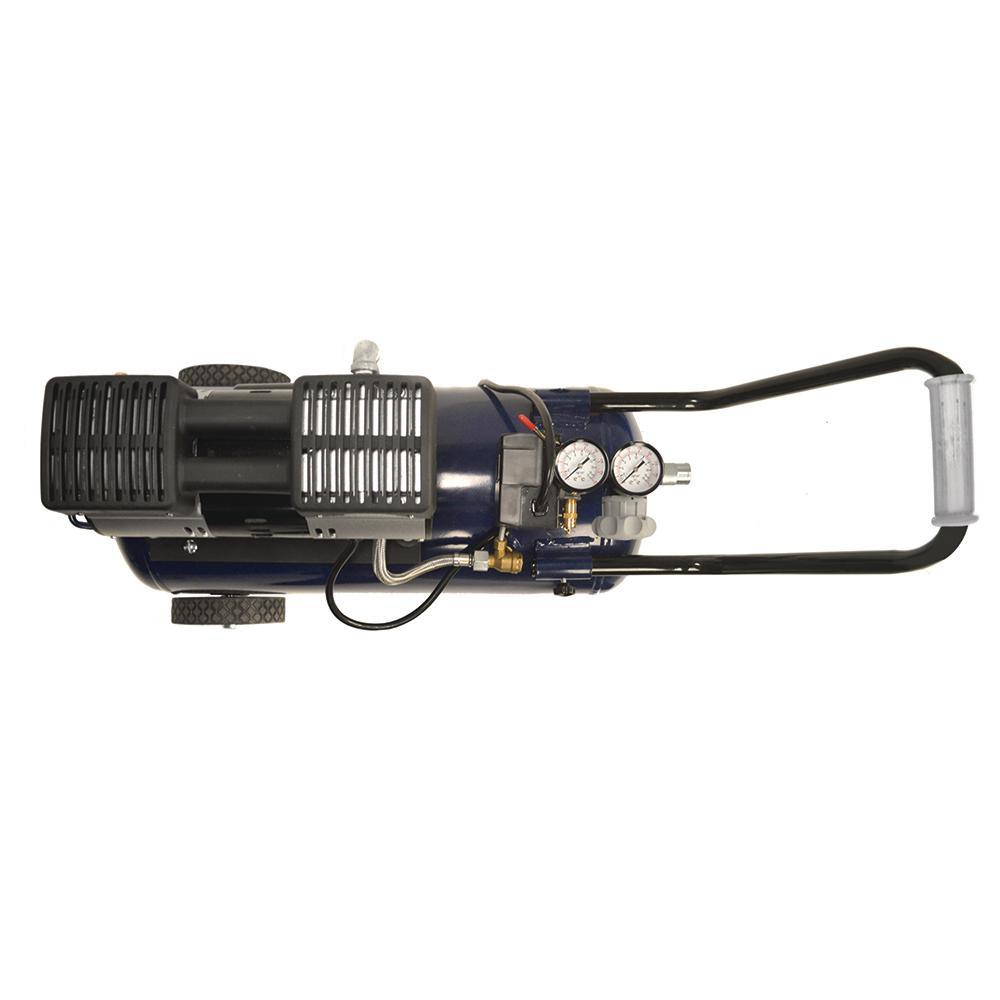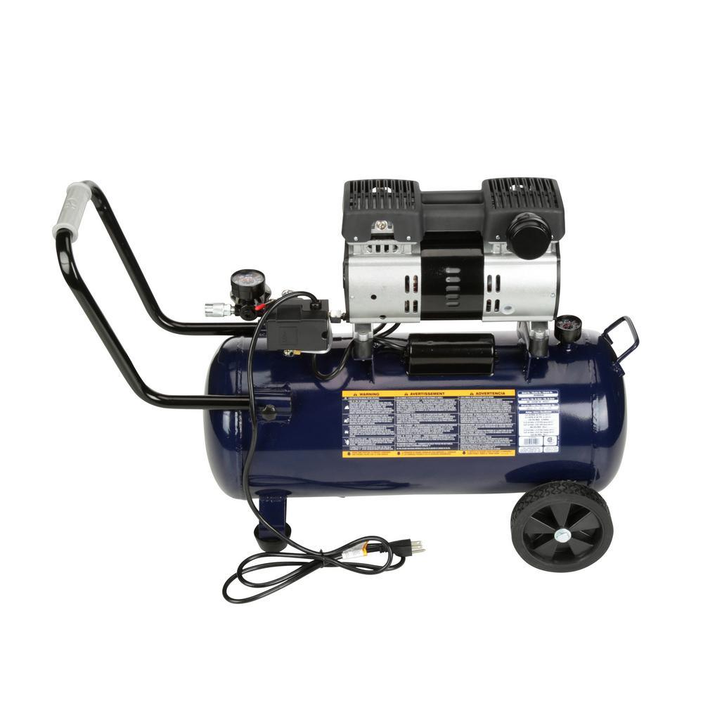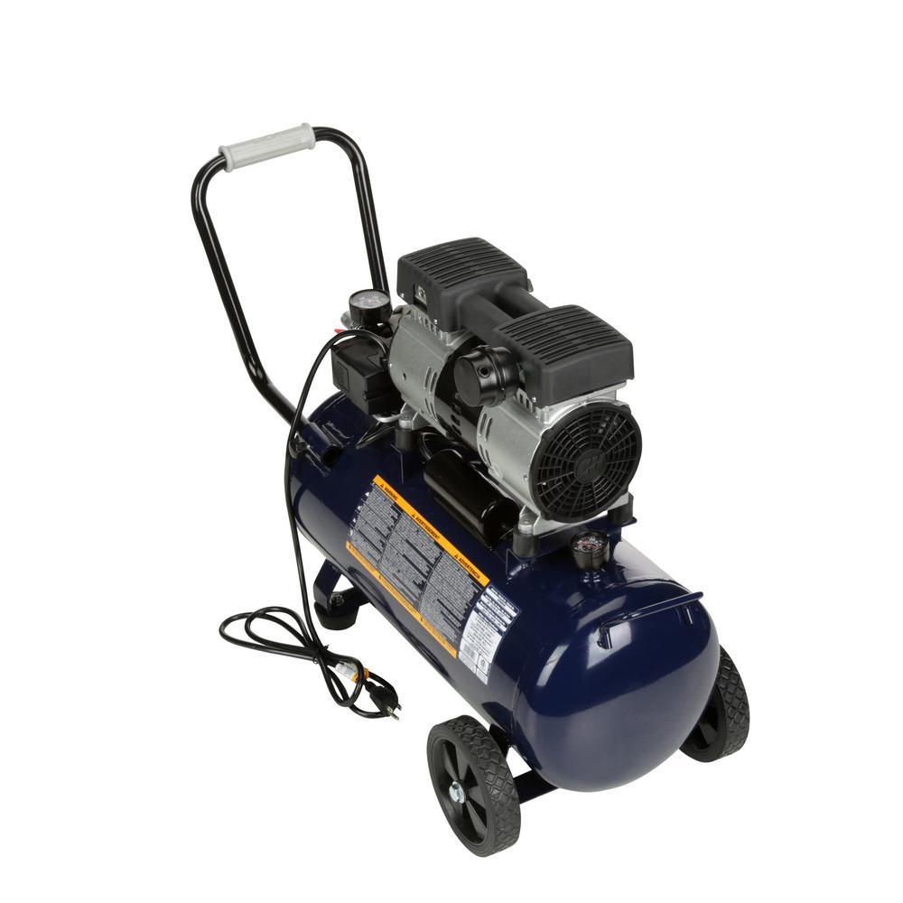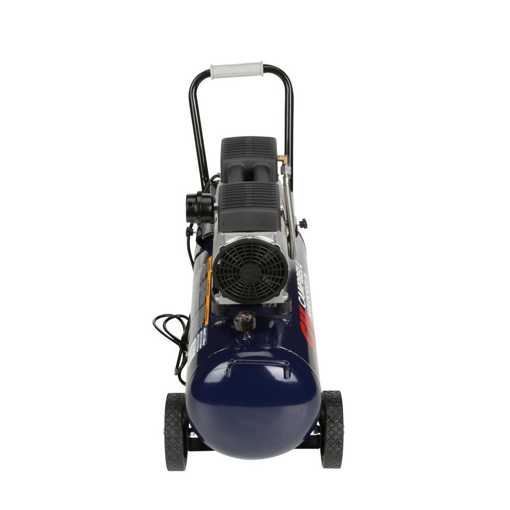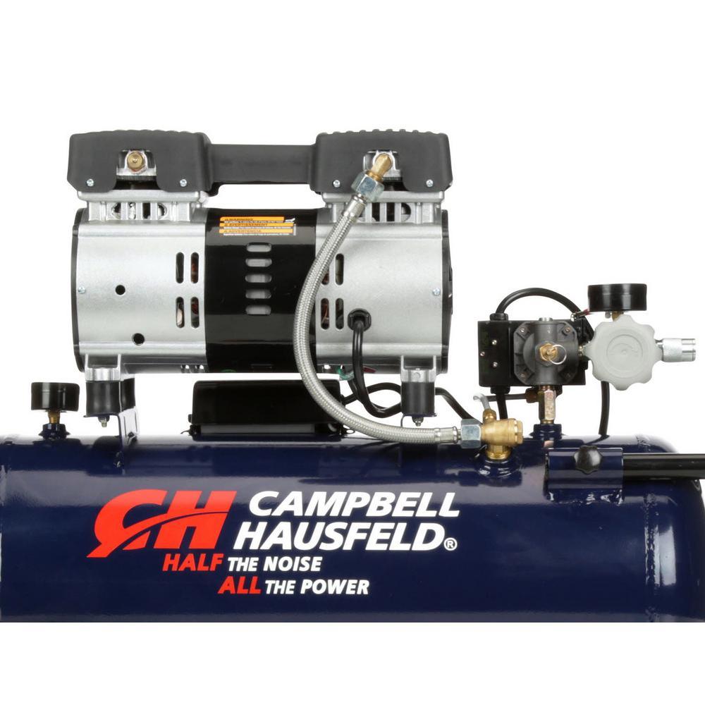 This 8-gallon Campbell Hausfeld air compression is designed for quiet operation. It features a maintenance- and oil-free pump that provides exceptional motor performance. The unit comes with large wheels and a rubber-grip steel handle for portability.