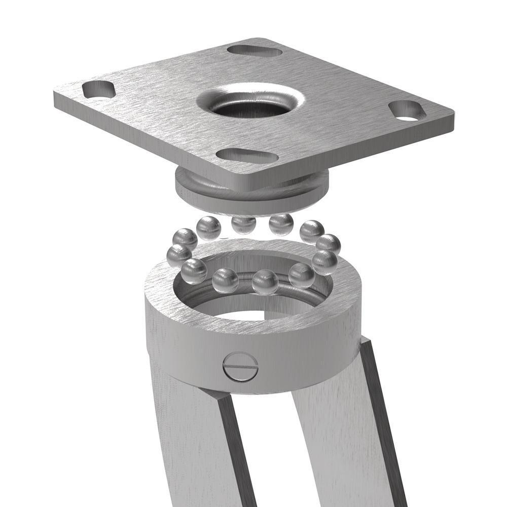 8 in. polyurethane casters and polypropylene core, four swivel casters, one directional lock and one caster brake