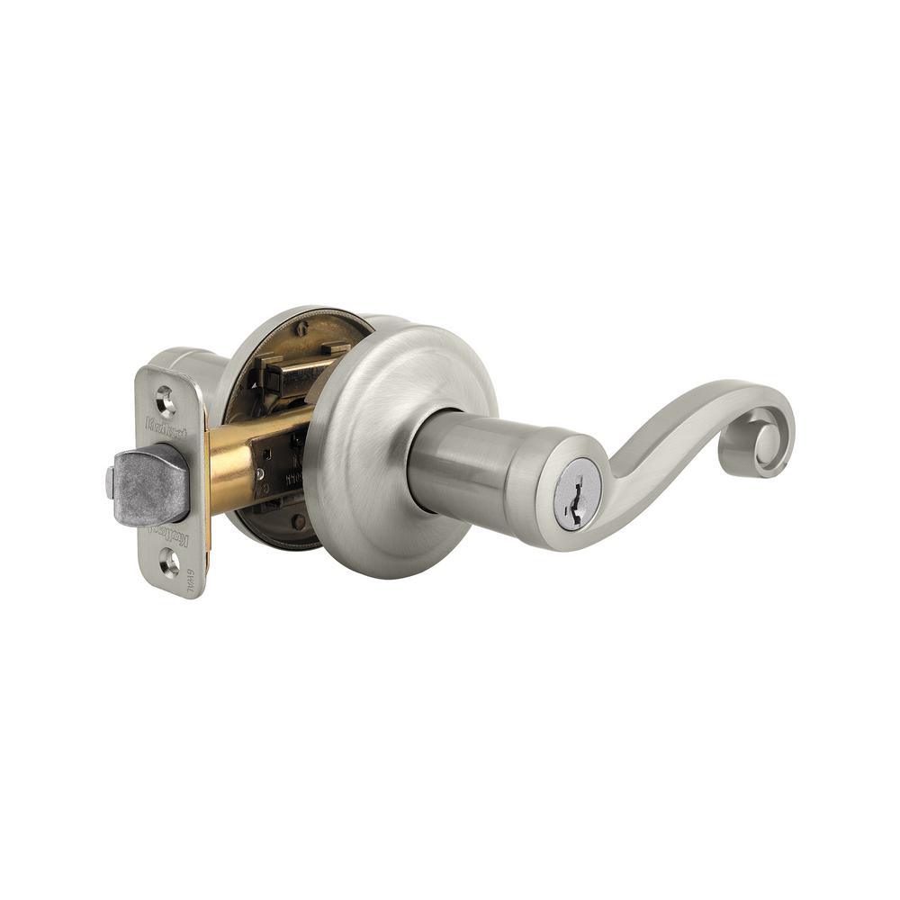 Step up to designer styles and superior security with Kwikset Signature Series products. The elegant scroll of the Lido complements a variety of homes and makes a stylish design statement. Both knobs/levers can be locked or unlocked by a key on the outside, or turn piece on the inside. The crisp, clean appearance of the Satin Nickel finish adds to the overall look of the product and brings a modern feel.