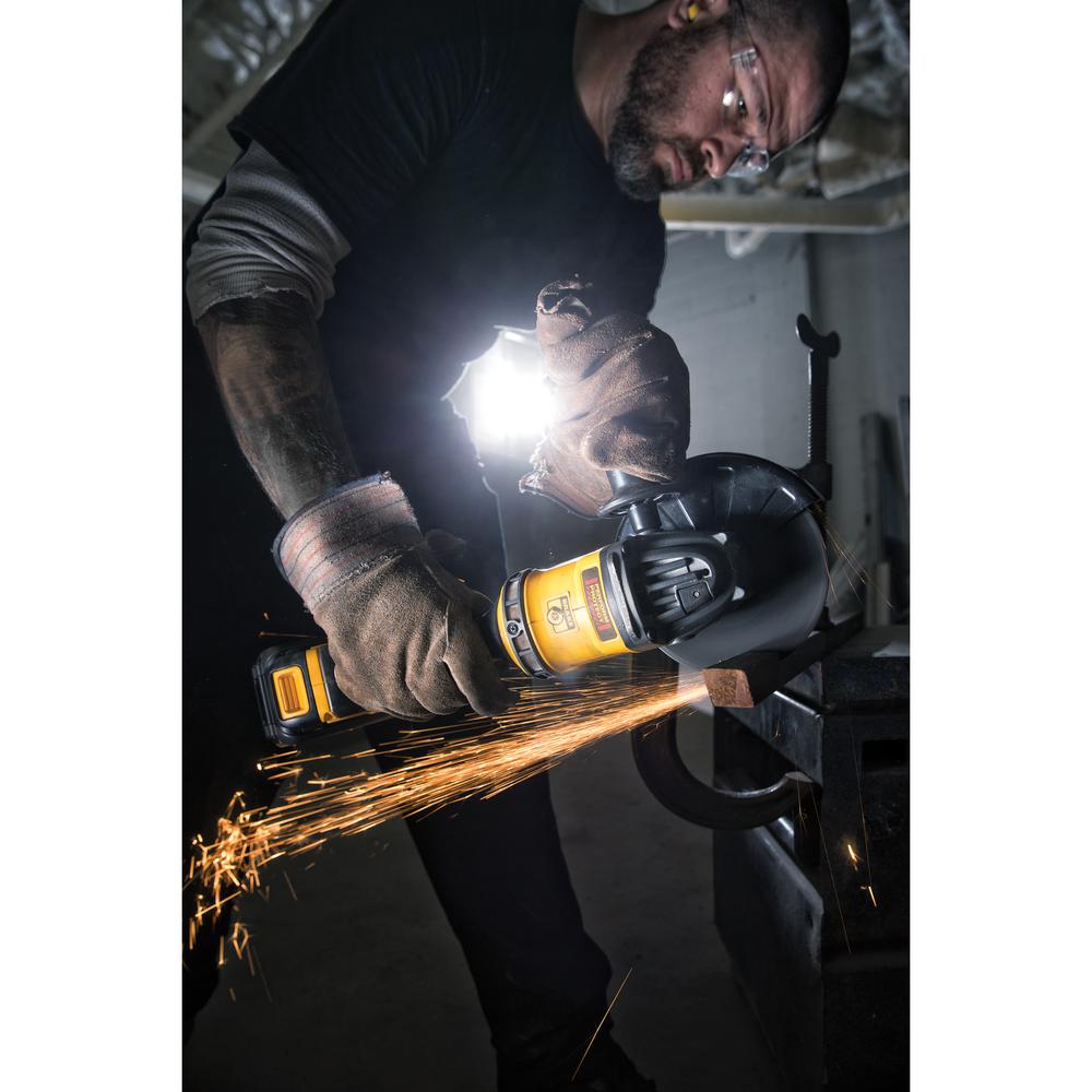 The DCG414T2 4-1/2 in. - 6 in. (115 mm - 150 mm) Grinder with Kickback Brake is maximized for power and durability. It delivers 13 Amp power as compared to the D28144N with the portability and convenience of cordless through DEWALT's revolutionary FlexVolt technology. The DCG414T2 comes with 2 FlexVolt Batteries, Fast Charger and Kit Bag. For a limited time get a bonus DCD996B Bare 20-Volt Max Drill / Driver with purchase.