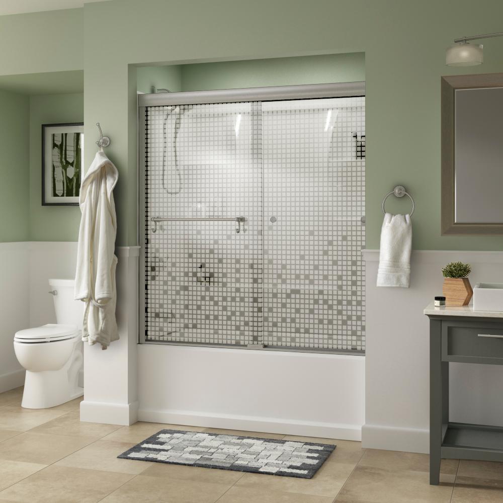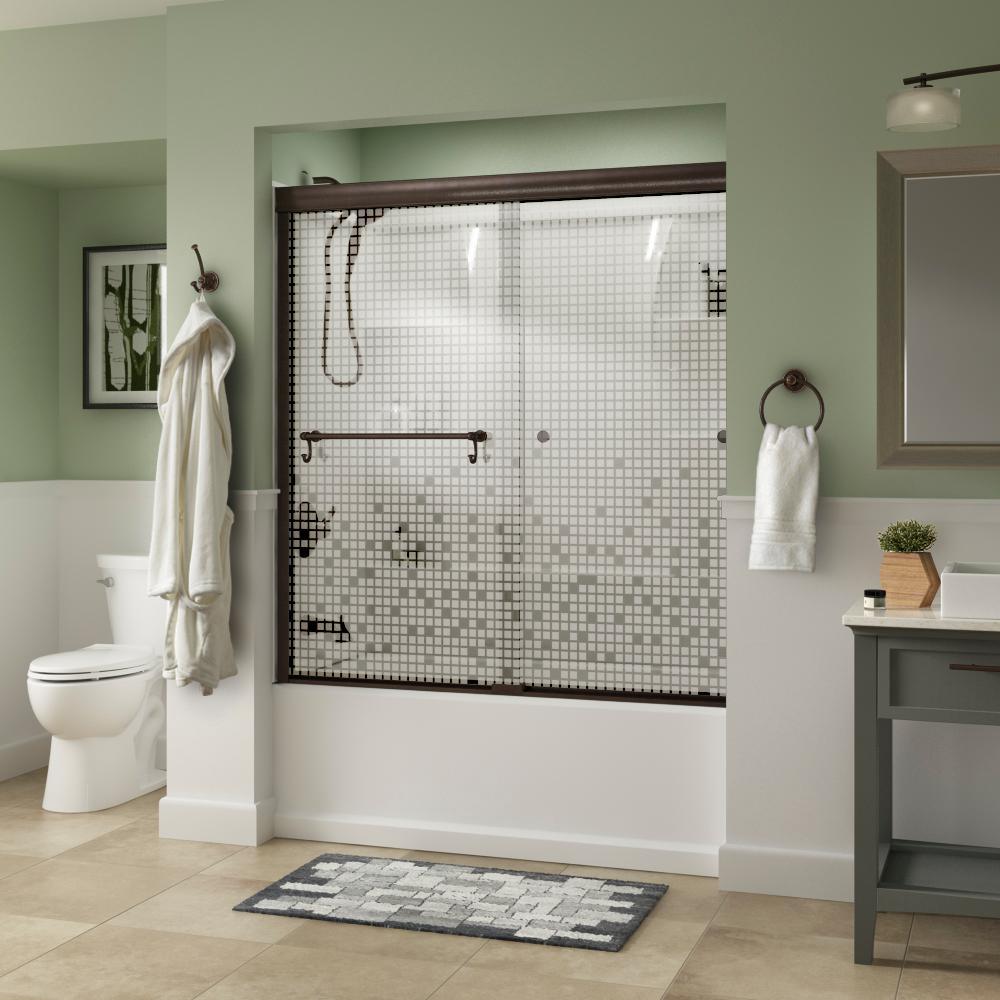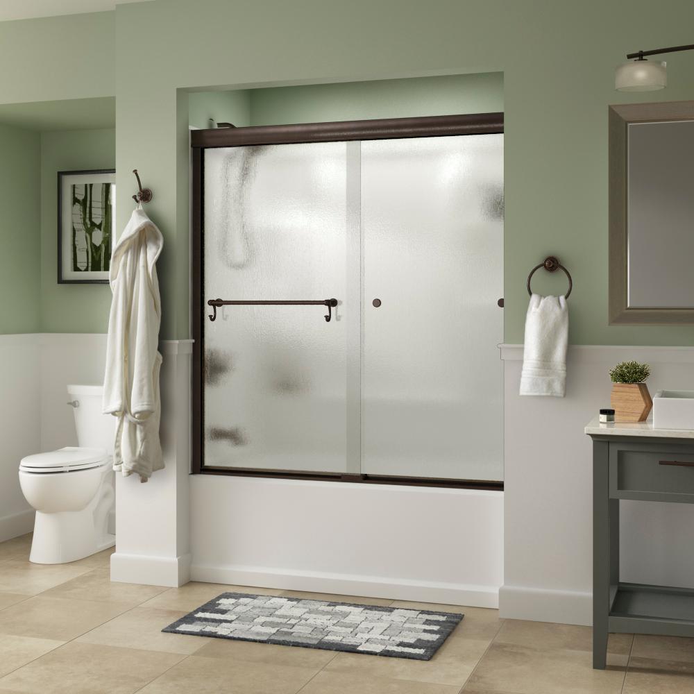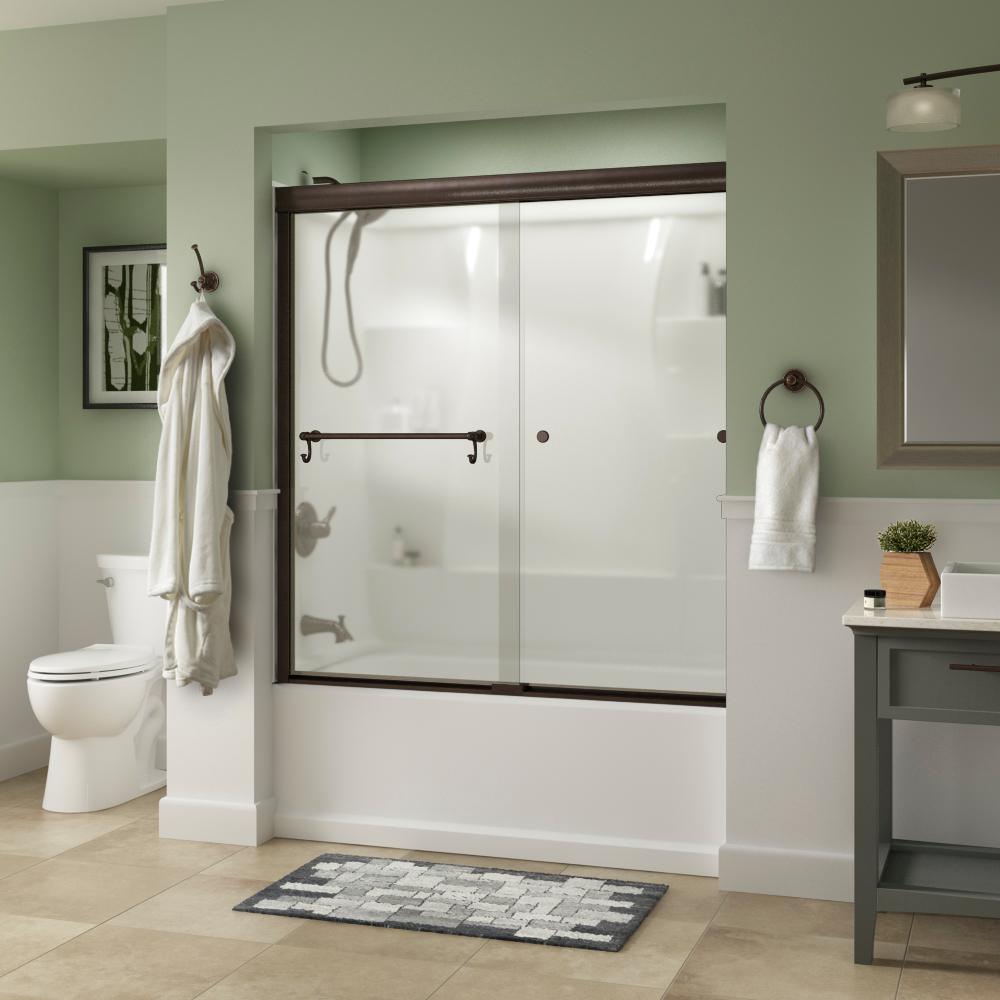 Whether you’re looking for a moderate DIY project or working on a bathroom remodel, upgrading your bathroom with a new sliding shower door is easy with the Delta 1-2-3 custom sliding shower door program. Delta’s custom glass shower door program offers 1000s of design combinations by choosing your glass shower panels, shower door track, and shower door handles to build a unique, personalized glass shower door. Simple and classic, the Traditional bathtub door track in bronze features a reversible top track with two unique profiles that offer uncompromised quality and value with a design that’s familiar and balanced. Make a statement with standard 1/4 in. ANSI certified tempered glass shower panels, featuring a modern blend of clear and frosted stripes creating a beautiful pattern that let’s in light but also offers some privacy. The Portman sliding shower door handle with knobs features a convenient towel bar with hooks for extra bathroom storage and two interior knobs for extra showering space in a traditional design silhouette that beautifully displays timeless elegance.